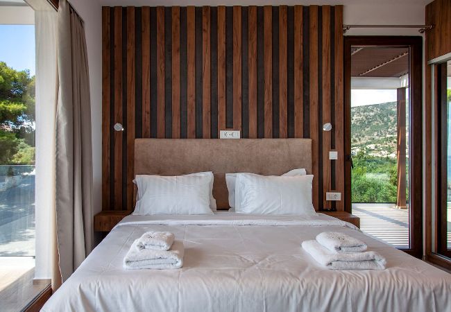 Zavia Penthouse in Sivota Thesprotias, is perched on the mountain side overlooking the bay of Zavia and the islands of Paxoi and Corfu.