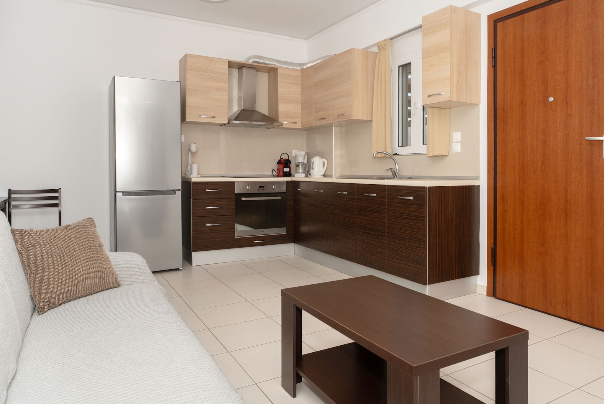 Drakatos apartmens are located in Vasiliki an idyllic village of Lefkada island. They are ideal for up to 4 people. When you enter the apartment you will find the open living room with the fully equipped kitchen.