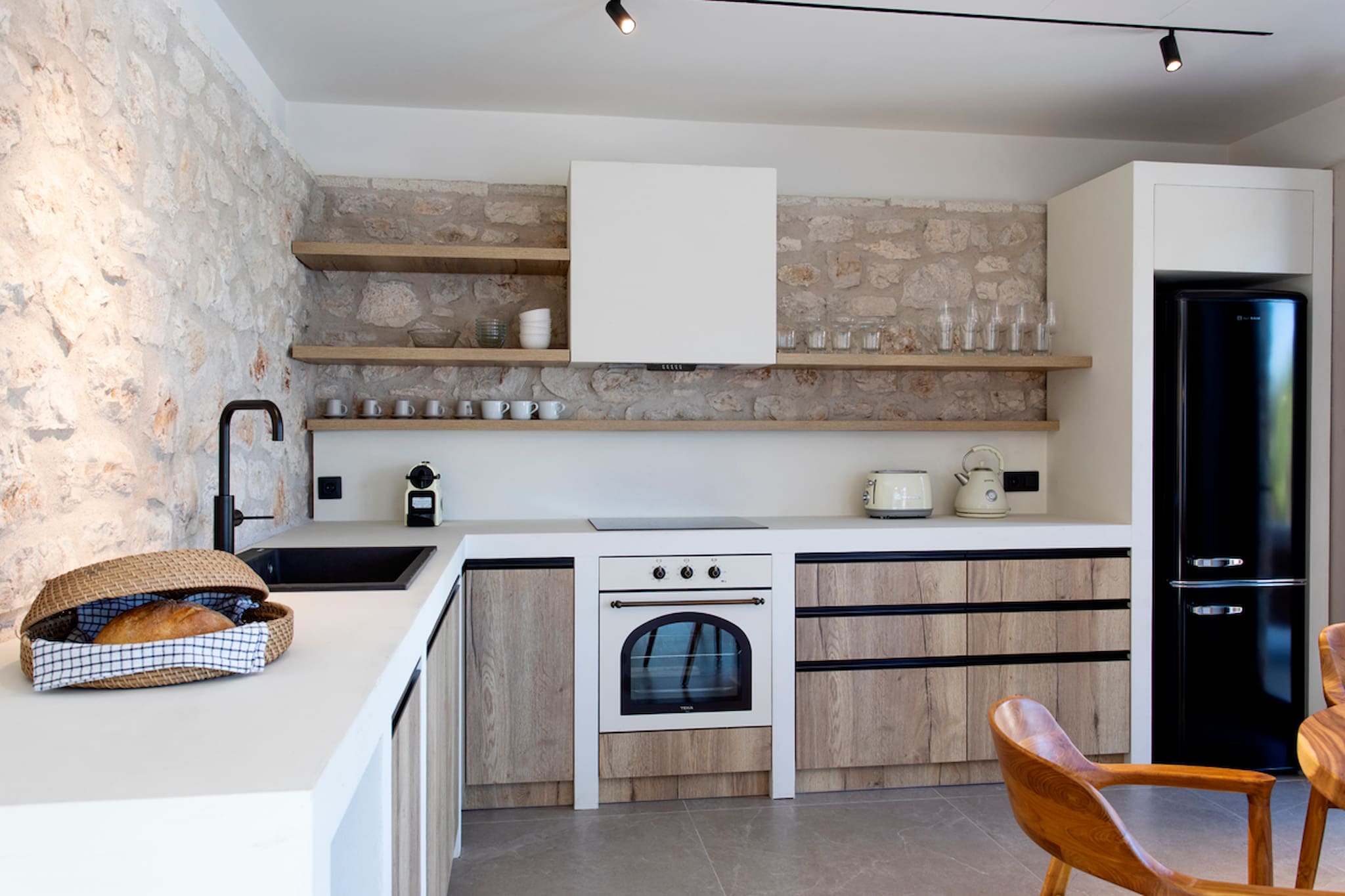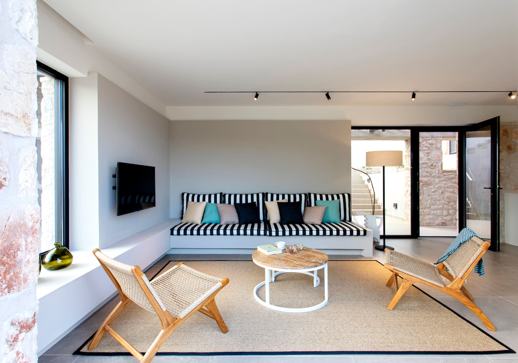 Perfectly suited to a family or a couple wishing to spend time together in peaceful, sophisticated surroundings, Villa Basil offers effortlessly stylish, glorious, multi-functional sea-view terraces, a superb private pool, a host of amenities, such as sun loungers and cushions, to delight all ages. The stone and wooden elements smoothly integrate with all the outdoor grounds and the easy access on foot to the seafront stone built deck for sunbathing and a refreshing dip in crystal blue clear waters. What more could one desire?