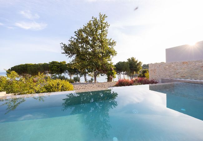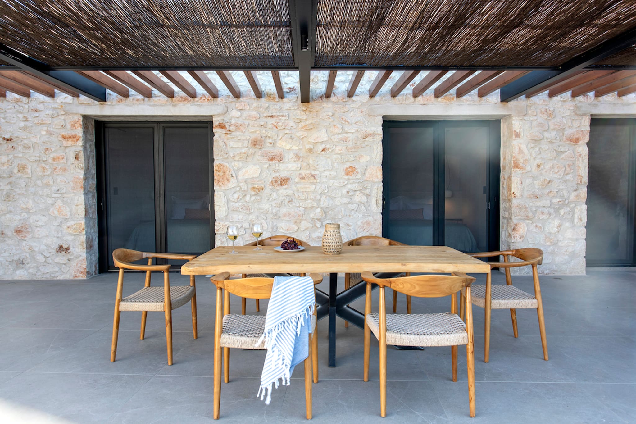 Perfectly suited to large groups of family and friends wishing to spend time together in peaceful, sophisticated surroundings, Villa Aloe offers effortlessly stylish, glorious, multi-functional sea-view terraces, a superb private pool, a host of amenities, such as sun loungers and cushions, to delight all ages. The stone and wooden elements smoothly integrate with all the outdoor grounds and the easy access on foot to the seafront stone built deck for sunbathing and a refreshing dip in crystal blue clear waters. What more could one desire?