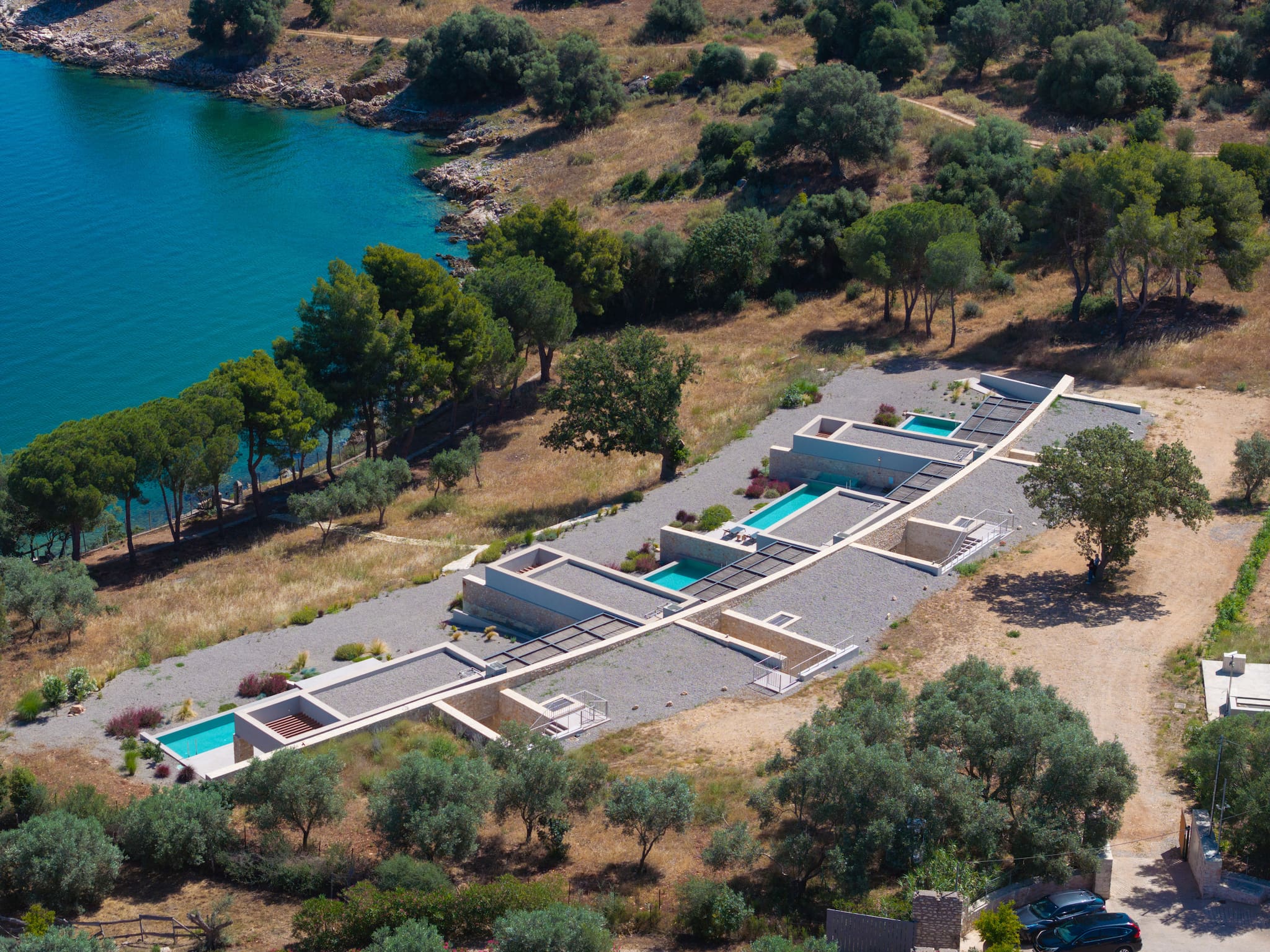 Welcome to our Exclusive Theros Estate and Villa Aloe located on the west coast of Ambracian Bay in the town of Sparto. Upon entering the Theros Estate, the entire complex is camouflaged by the natural landscape. It’s from here via an external staircase you are welcomed to the unique and stunning outdoor communal space of Villa Aloe.