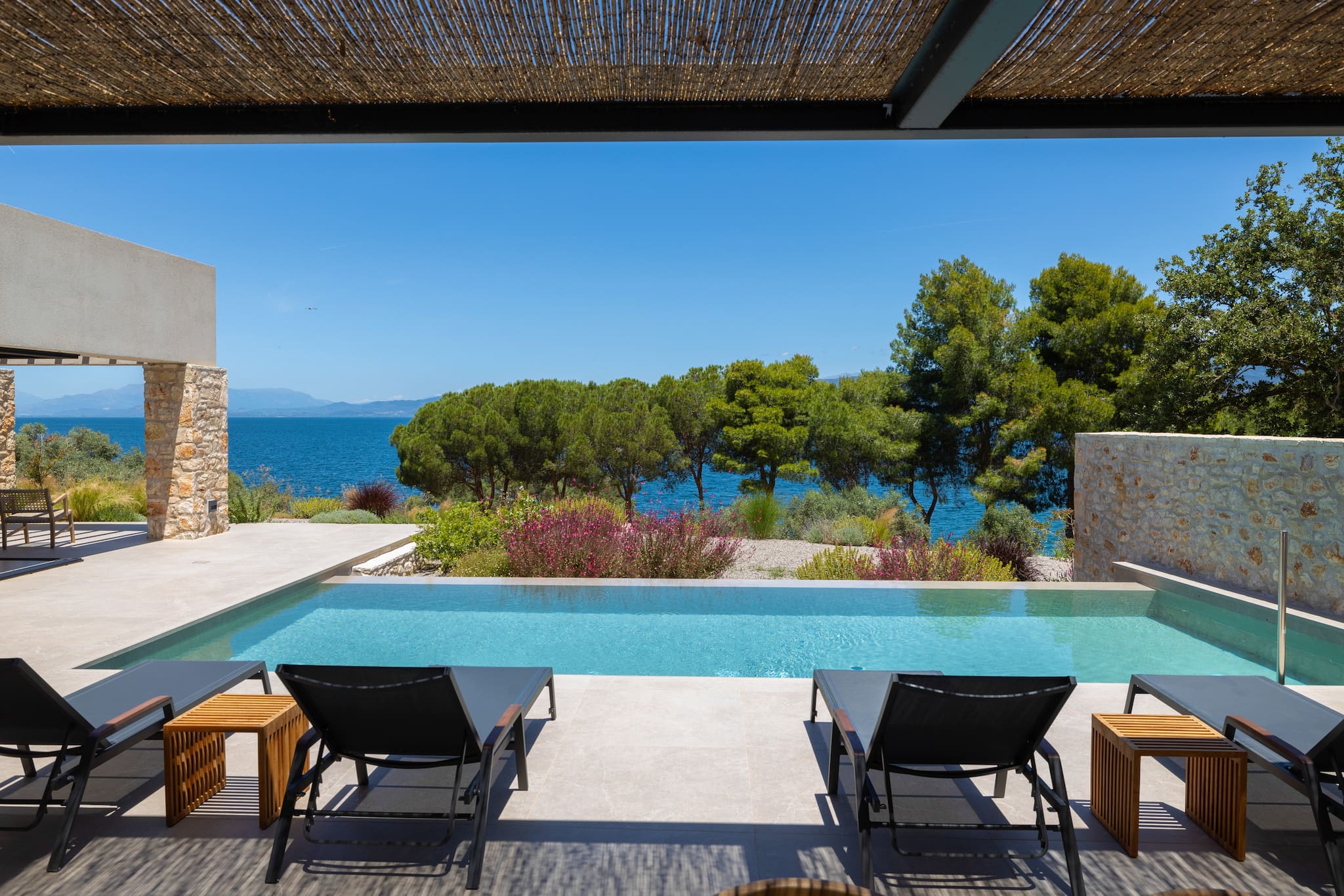 Perfectly suited to large groups of family and friends wishing to spend time together in peaceful, sophisticated surroundings, Villa Aloe offers effortlessly stylish, glorious, multi-functional sea-view terraces, a superb private pool, a host of amenities, such as sun loungers and cushions, to delight all ages. The stone and wooden elements smoothly integrate with all the outdoor grounds and the easy access on foot to the seafront stone built deck for sunbathing and a refreshing dip in crystal blue clear waters. What more could one desire?