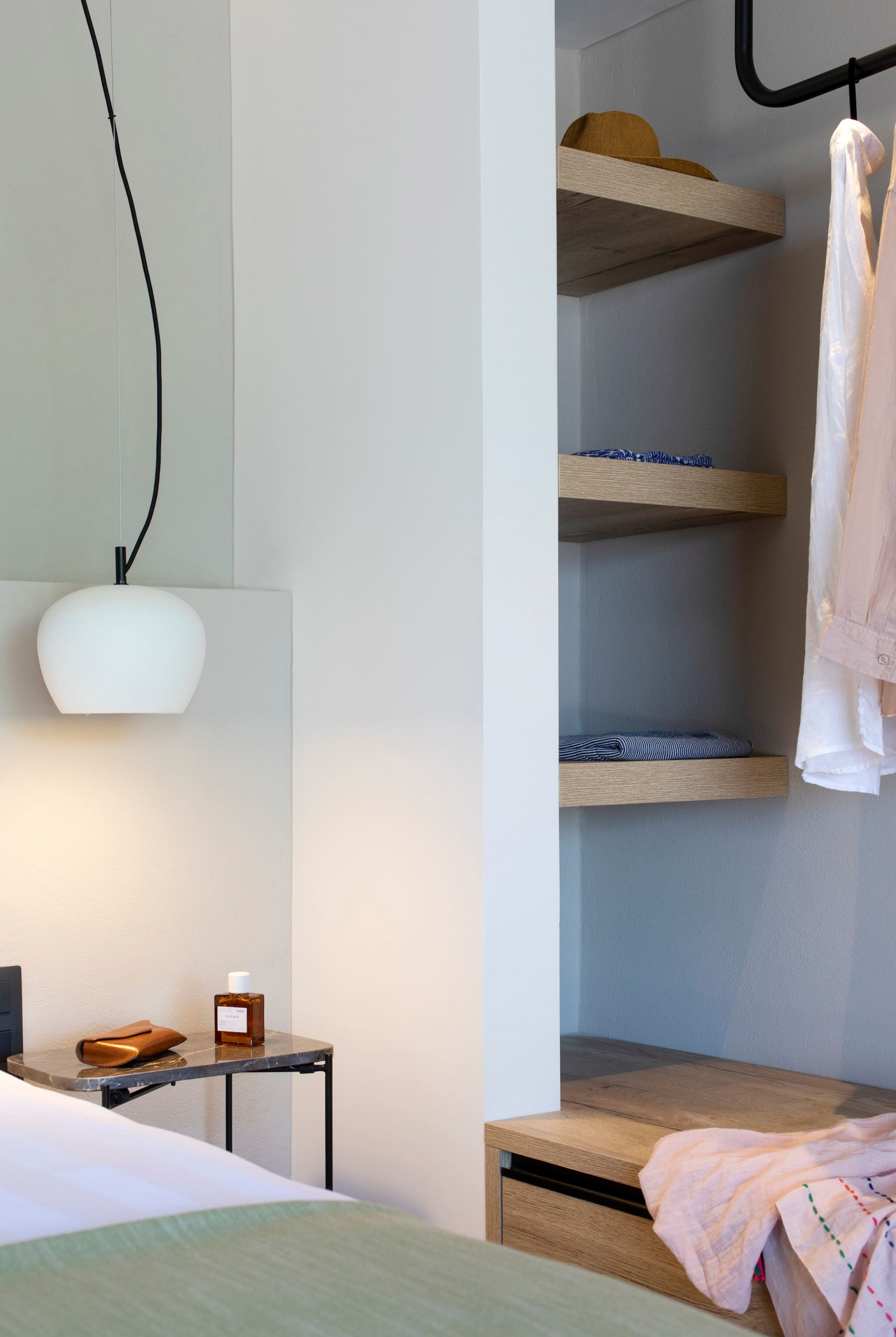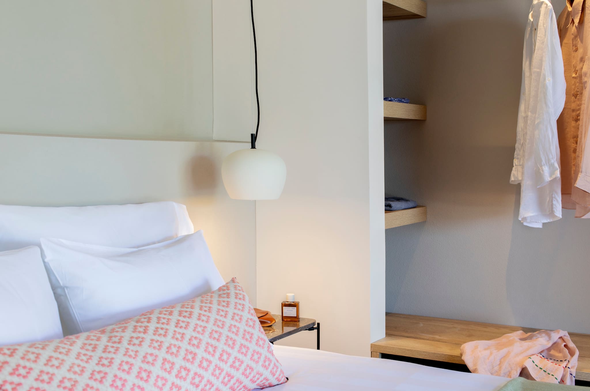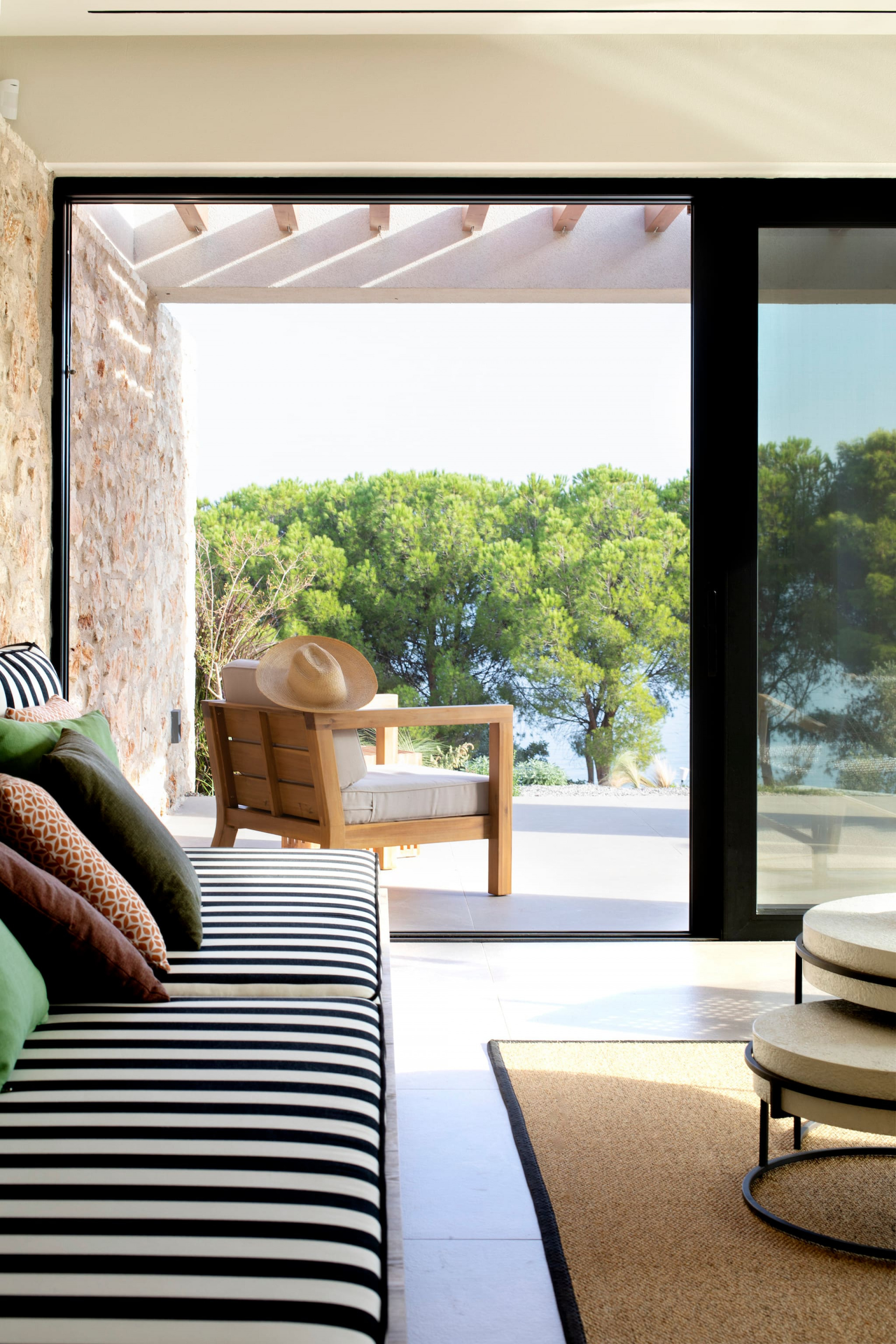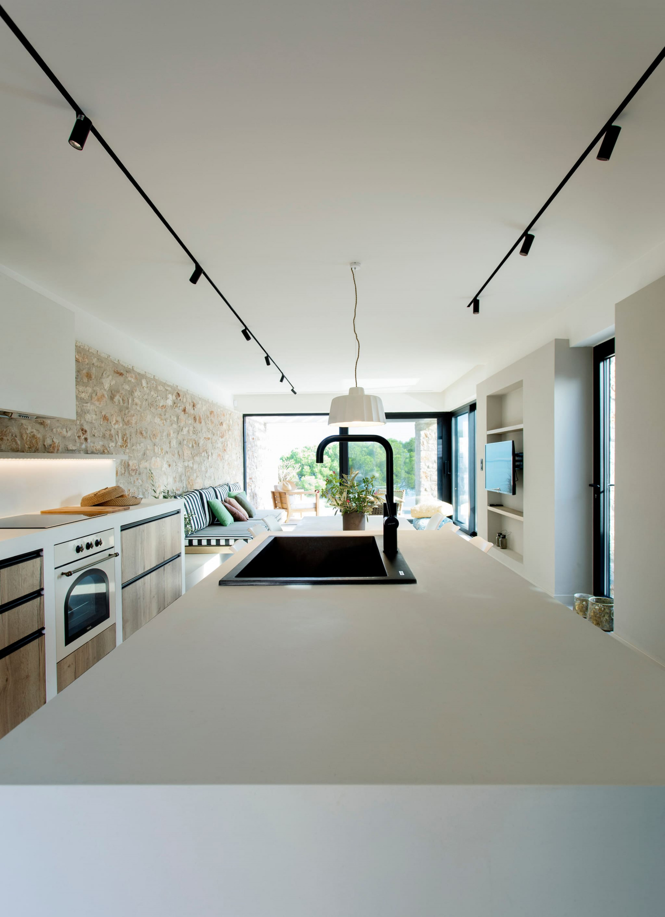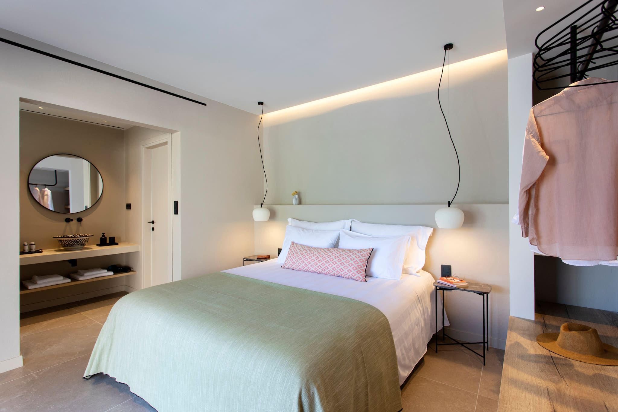 The multi-dimensional architecture of two independent building blocks, wrap around the terraces of each building with wooden beamed pergolas, creating a soothing indoor-outdoor synergy that you would expect from your summer holiday accommodation in Greece.