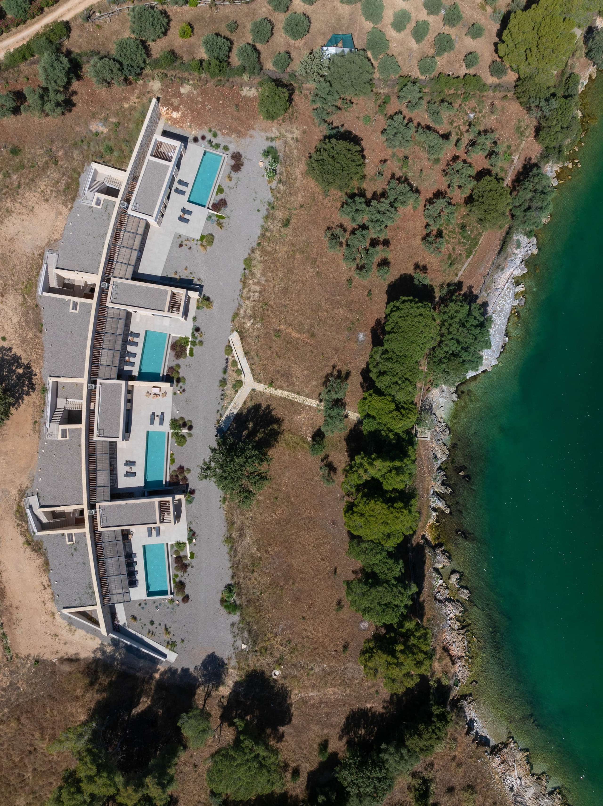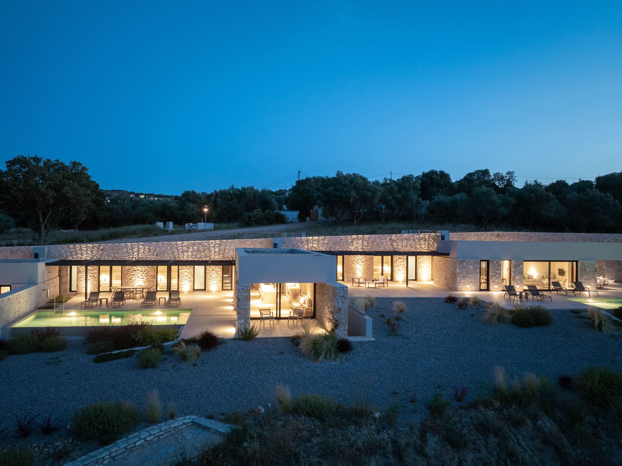 Welcome to our Exclusive Theros Estate and Villa Aloe located on the west coast of Ambracian Bay in the town of Sparto. Upon entering the Theros Estate, the entire complex is camouflaged by the natural landscape. It’s from here via an external staircase you are welcomed to the unique and stunning outdoor communal space of Villa Aloe.