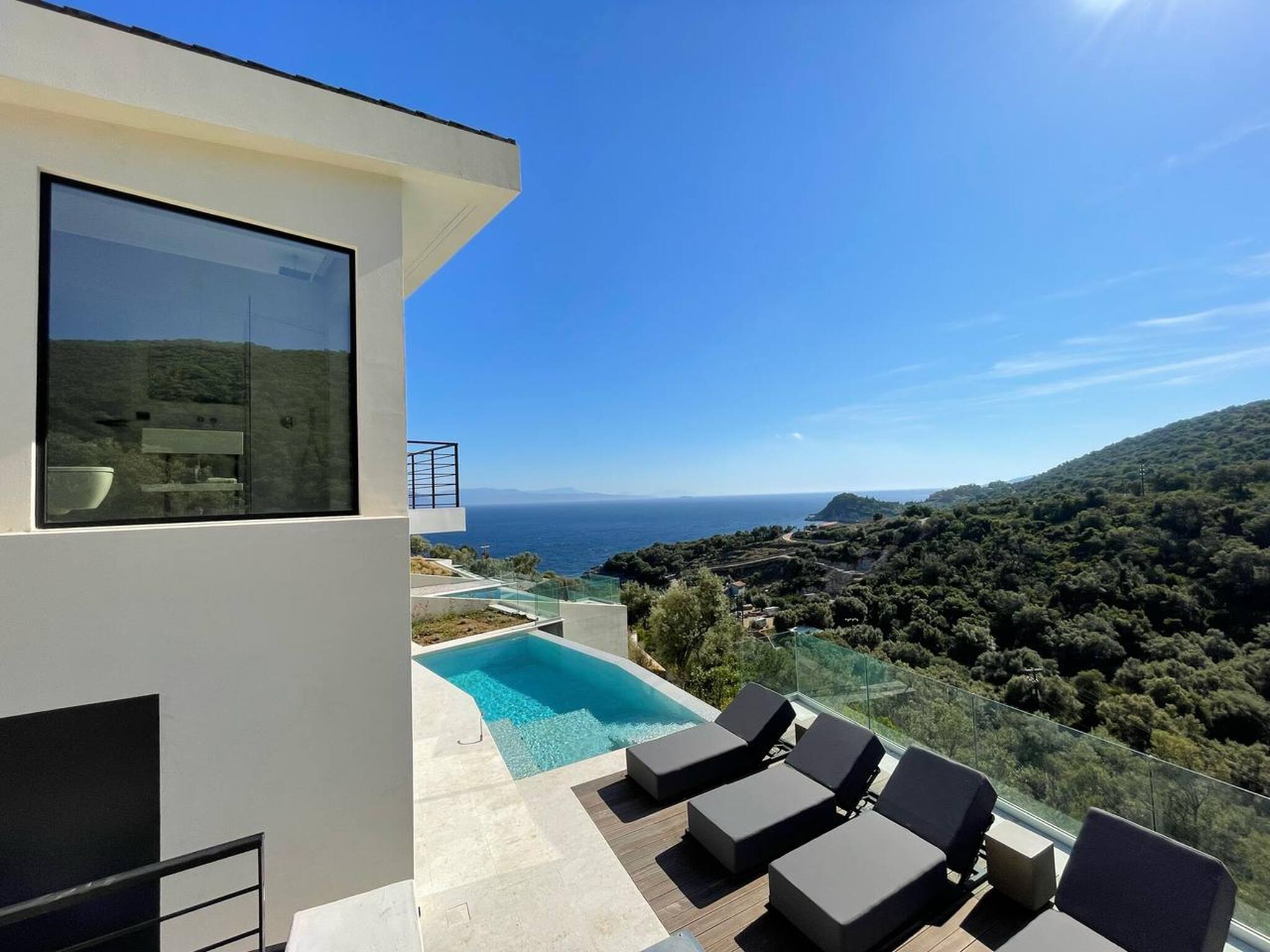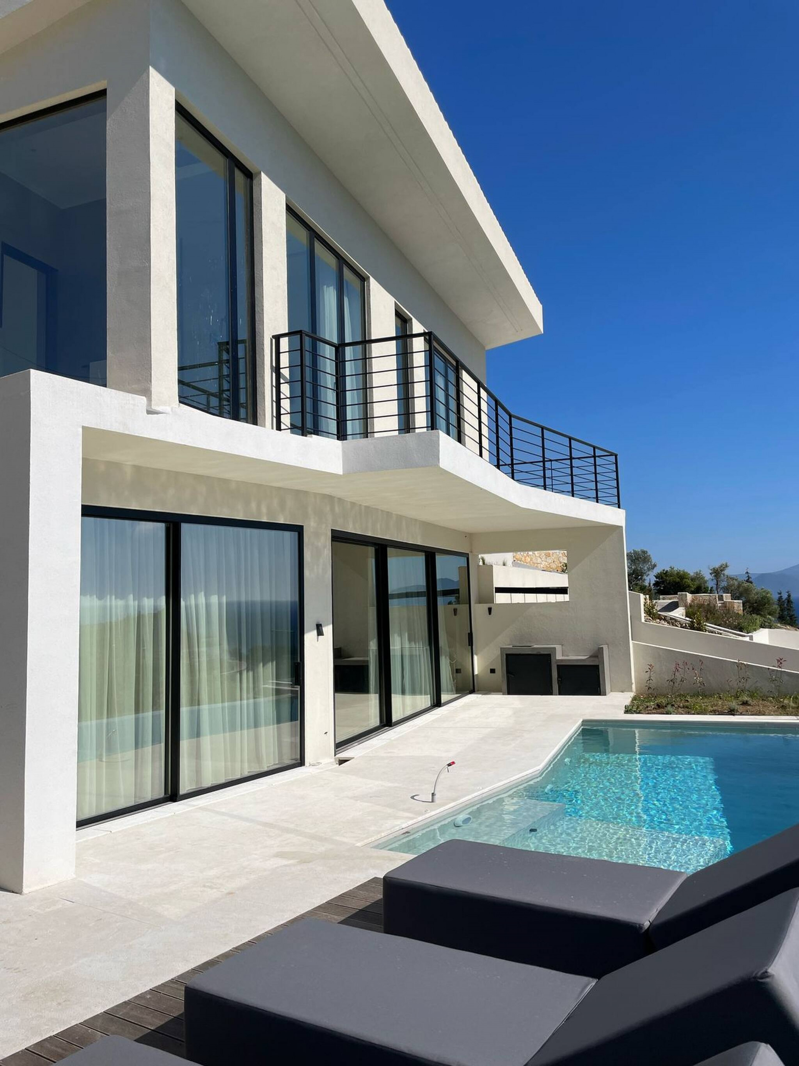 Private pool, sun loungers, sun cushions, outdoor lounge, outdoor dining, BBQ, seafront access, private parking