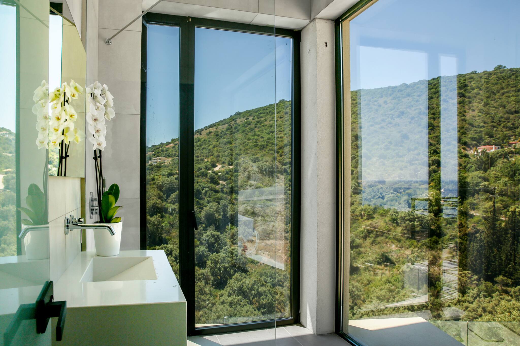 Villa Penelope offers two large bedrooms, each with a comfortable double bed. Both bedrooms have their own ensuite bathrooms, and each provides direct access to the stunning outdoor spaces surrounding the villa.