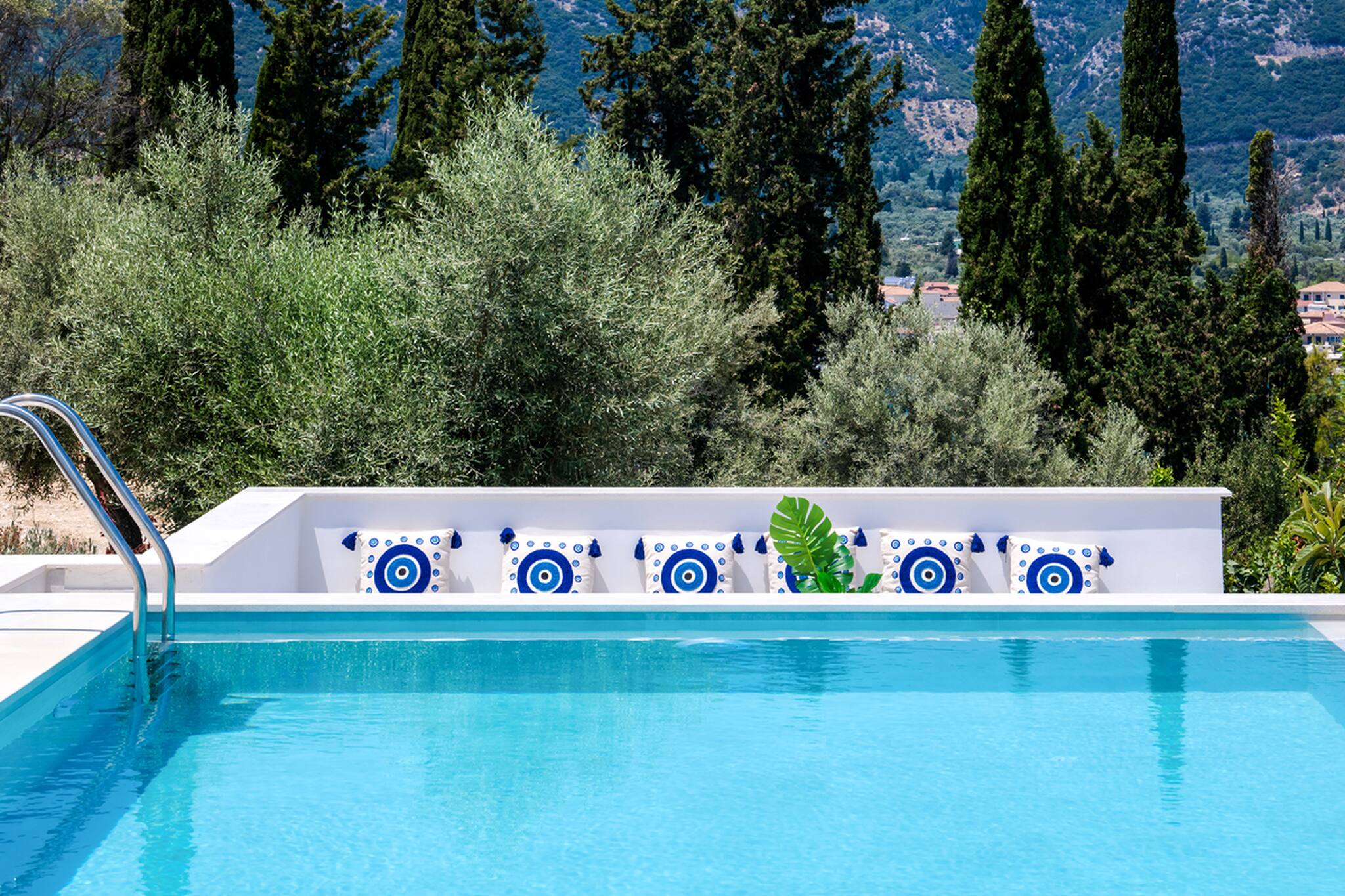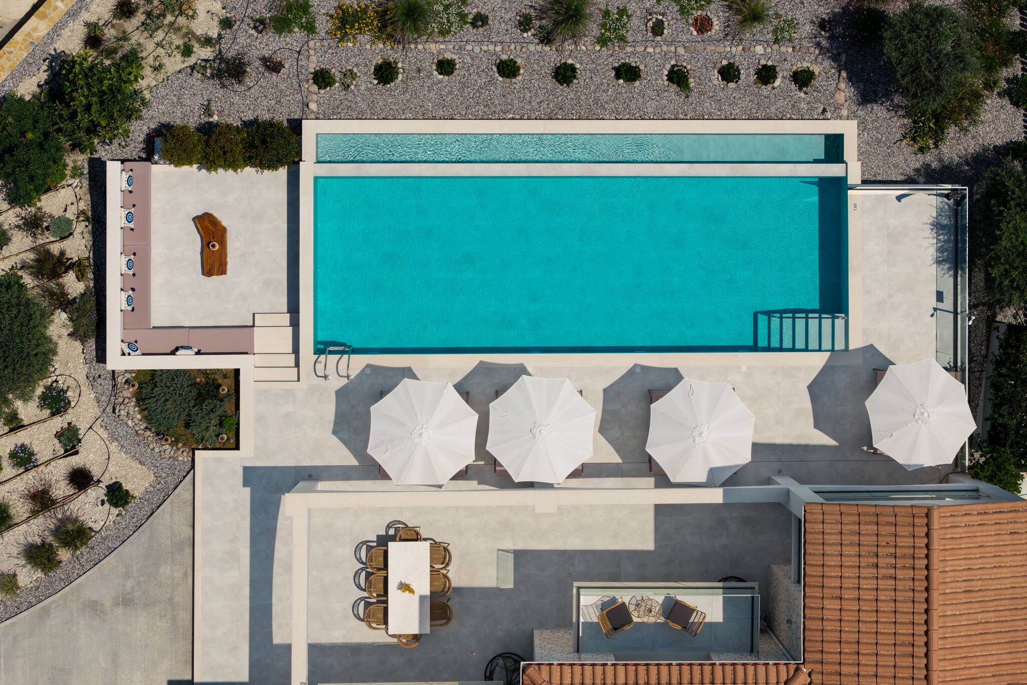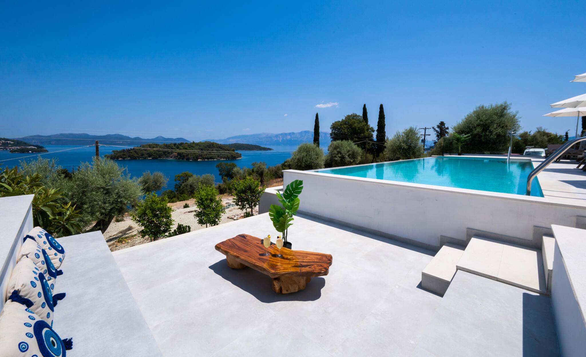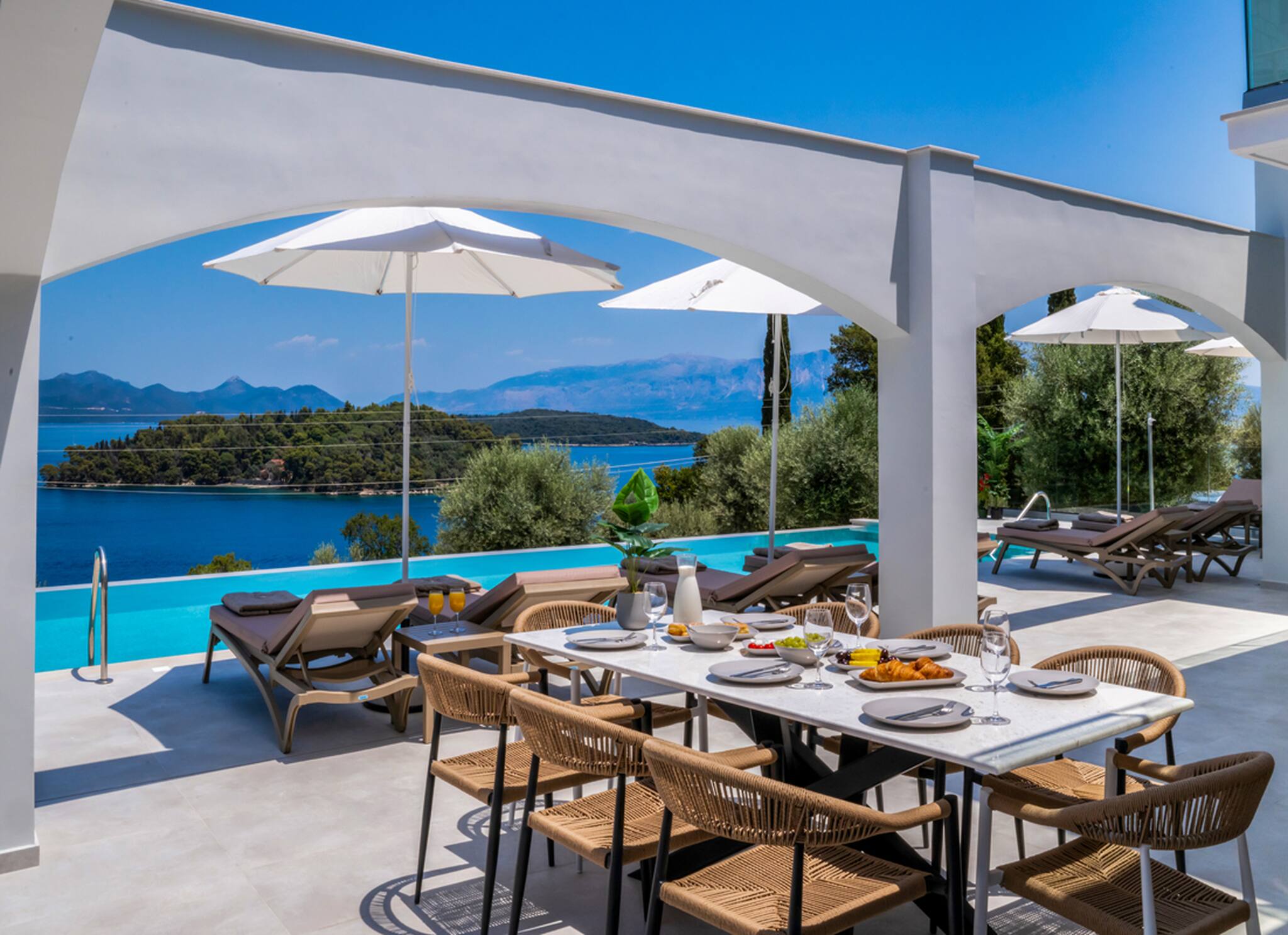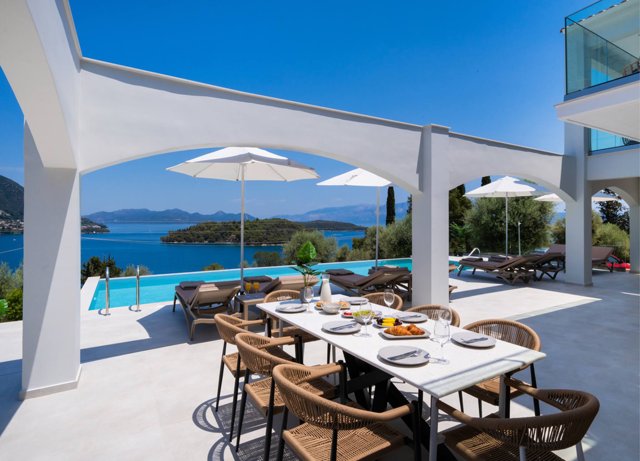 Villa Unique in Geni Lefkada boasts an outdoor barefoot luxury experience. The uniquely shaped private pool is furnished with sun loungers that will offer an irresistible temptation to lounge around all day soaking up the Greek summer sun or seeking shade for a Greek afternoon siesta.