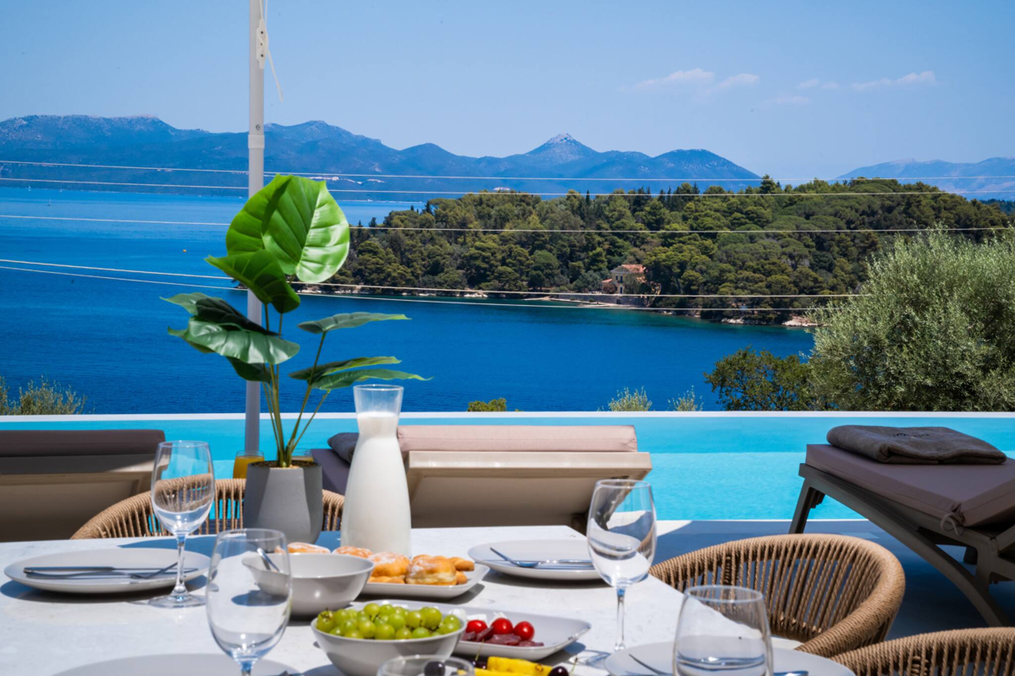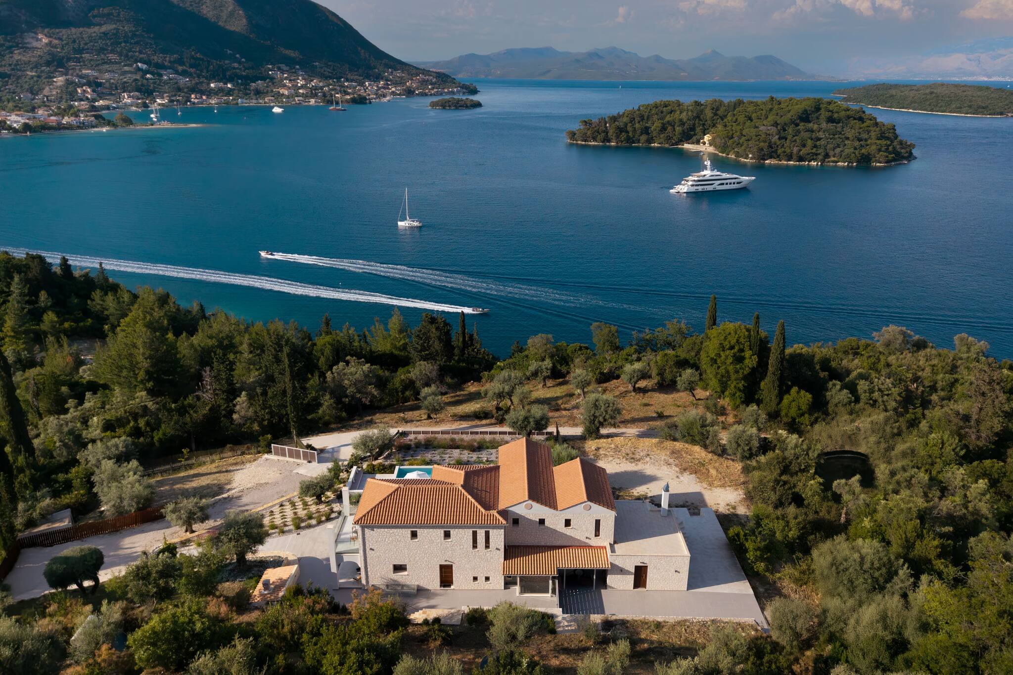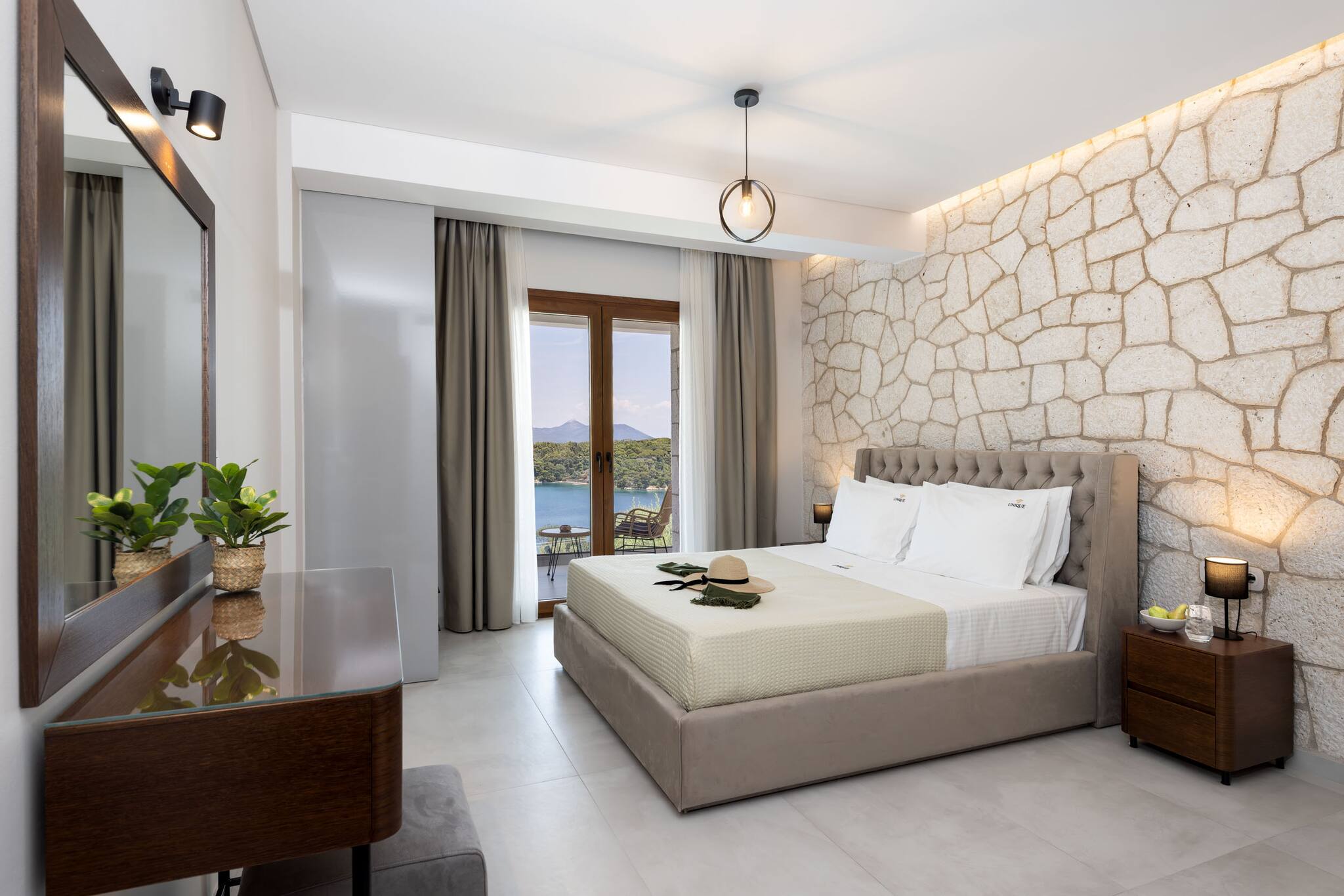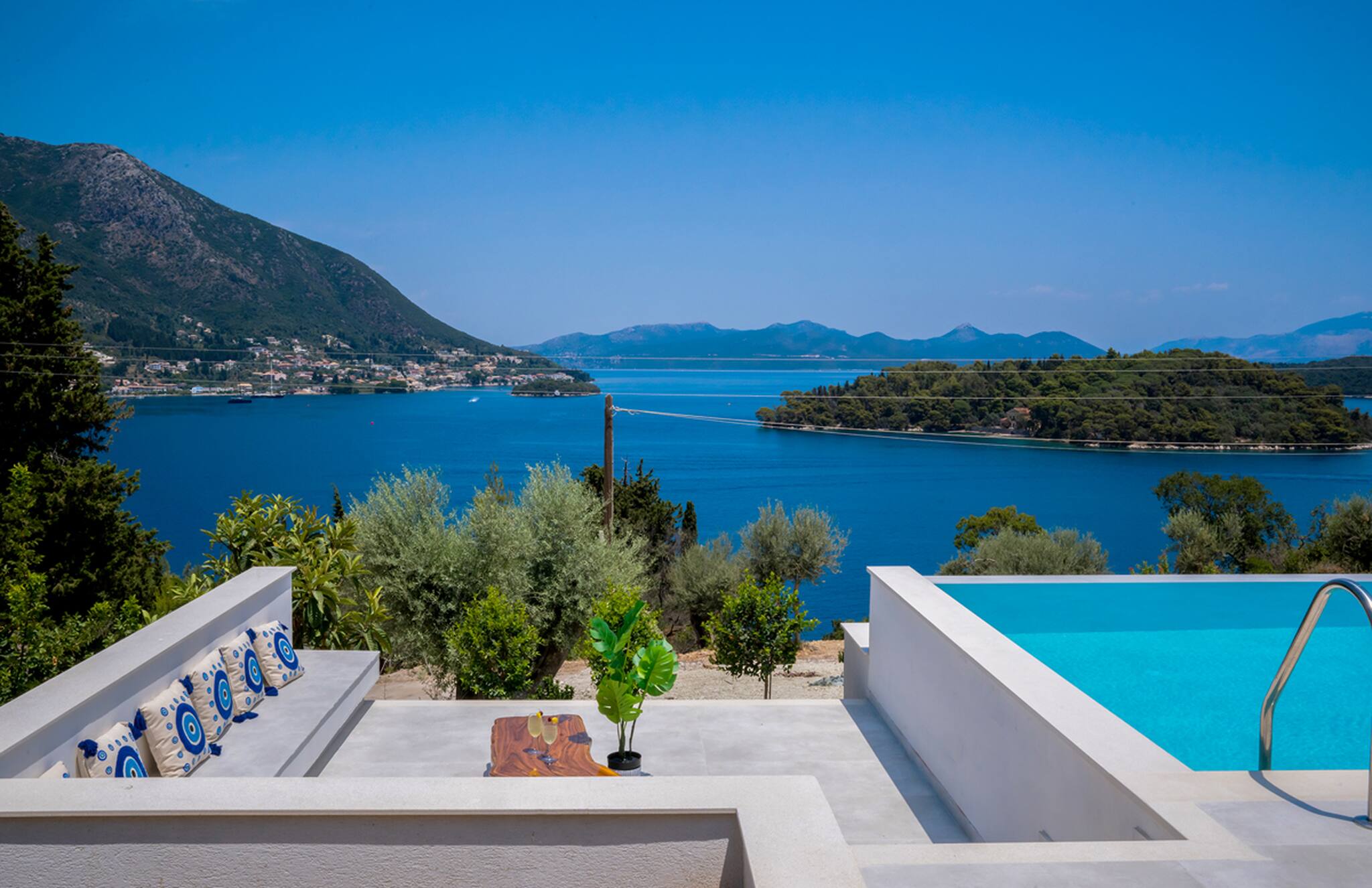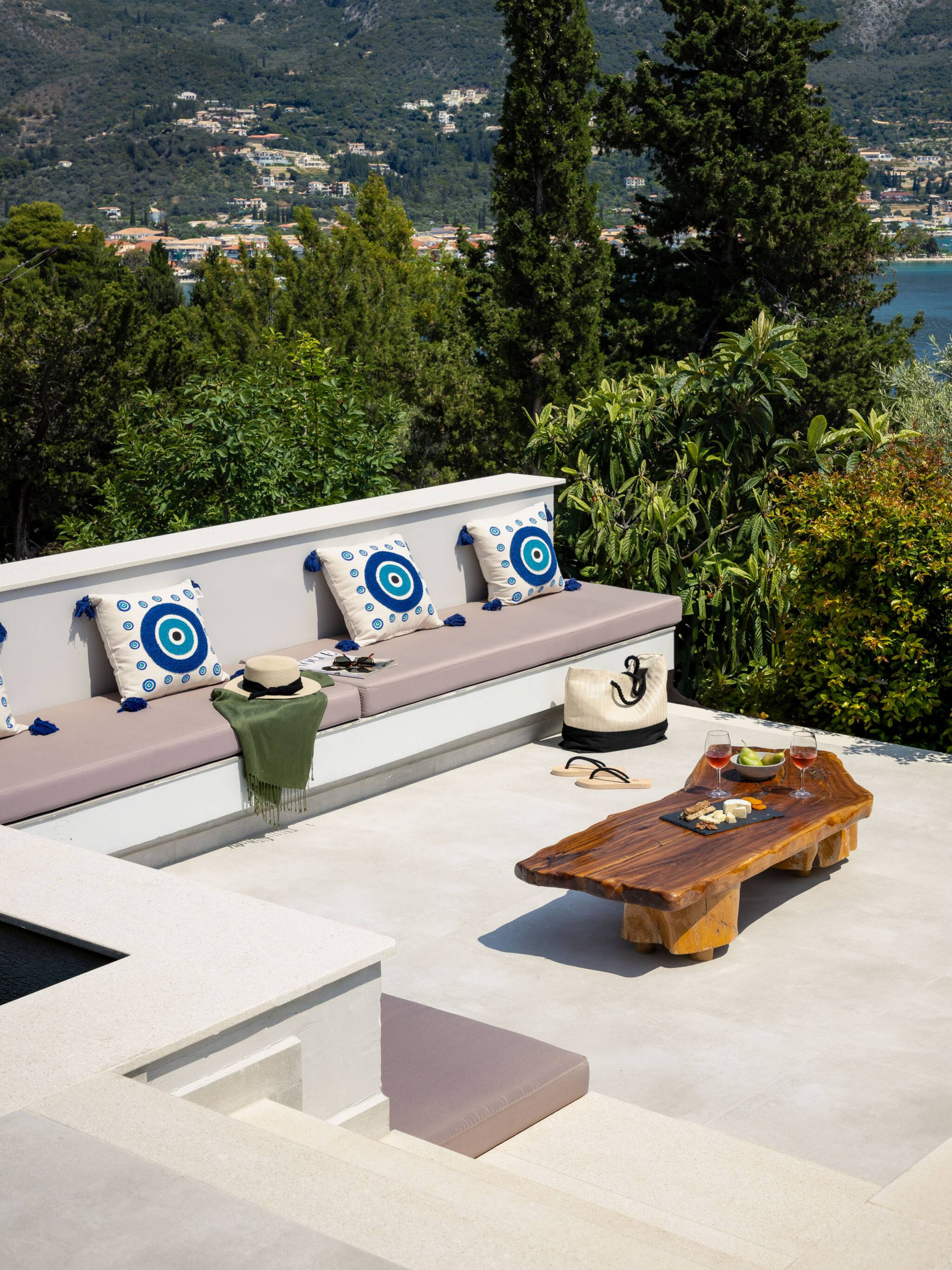 The fully equipped BBQ, conveniently positioned just outside the kitchen and the outdoor dining setting will add to your alfresco moments in the evening with magical views of the endless luxurious yachts slowly mooring into Geni Bay. The highlight surely is the traditionally built outdoor lounge setting for the warm summer nights overlooking the Ionian Archipelagos. Villa Unique is everything you would expect in comfort and luxury for your next Greek Getaway on the Ionian Island of Lefkada.