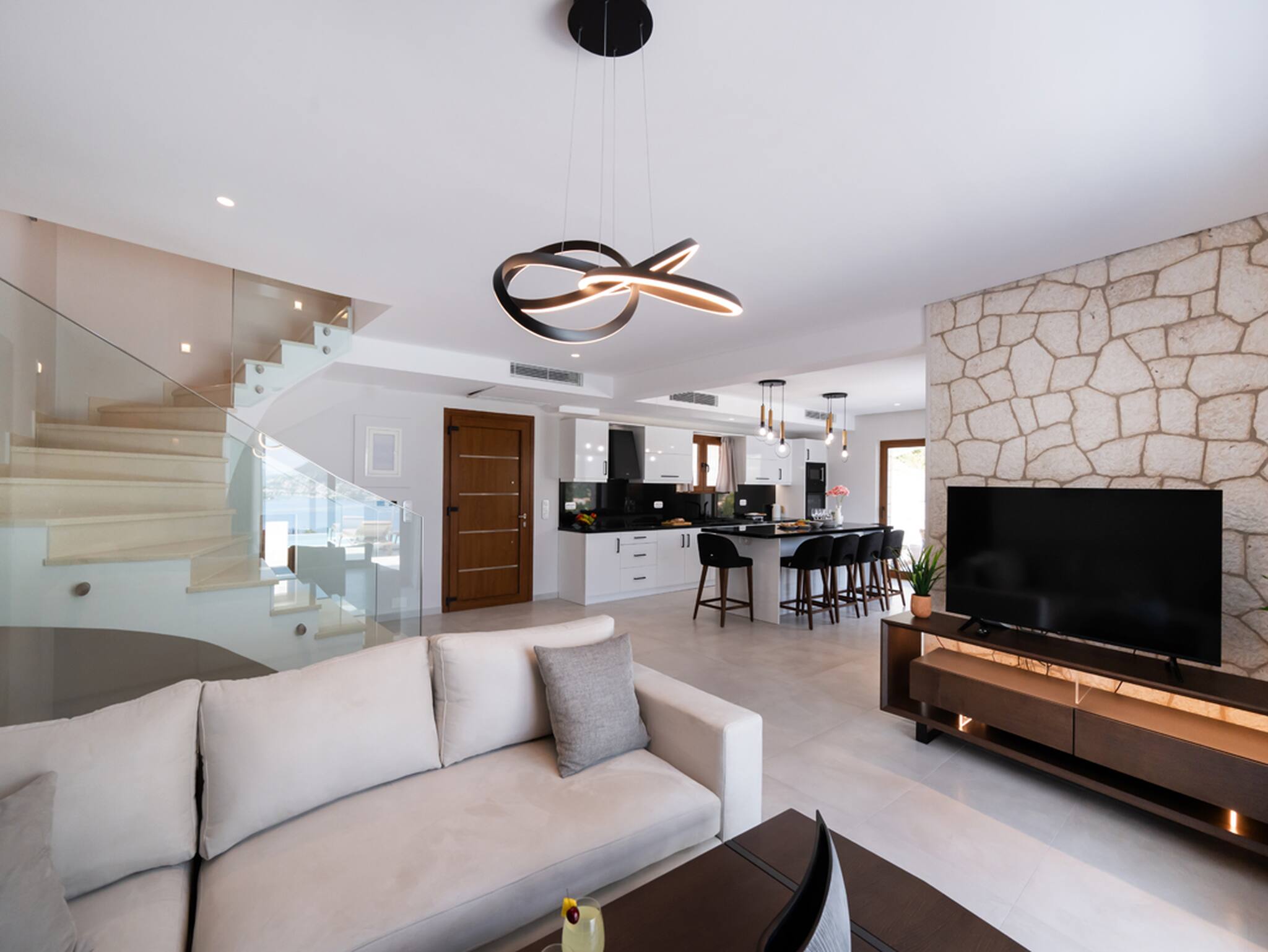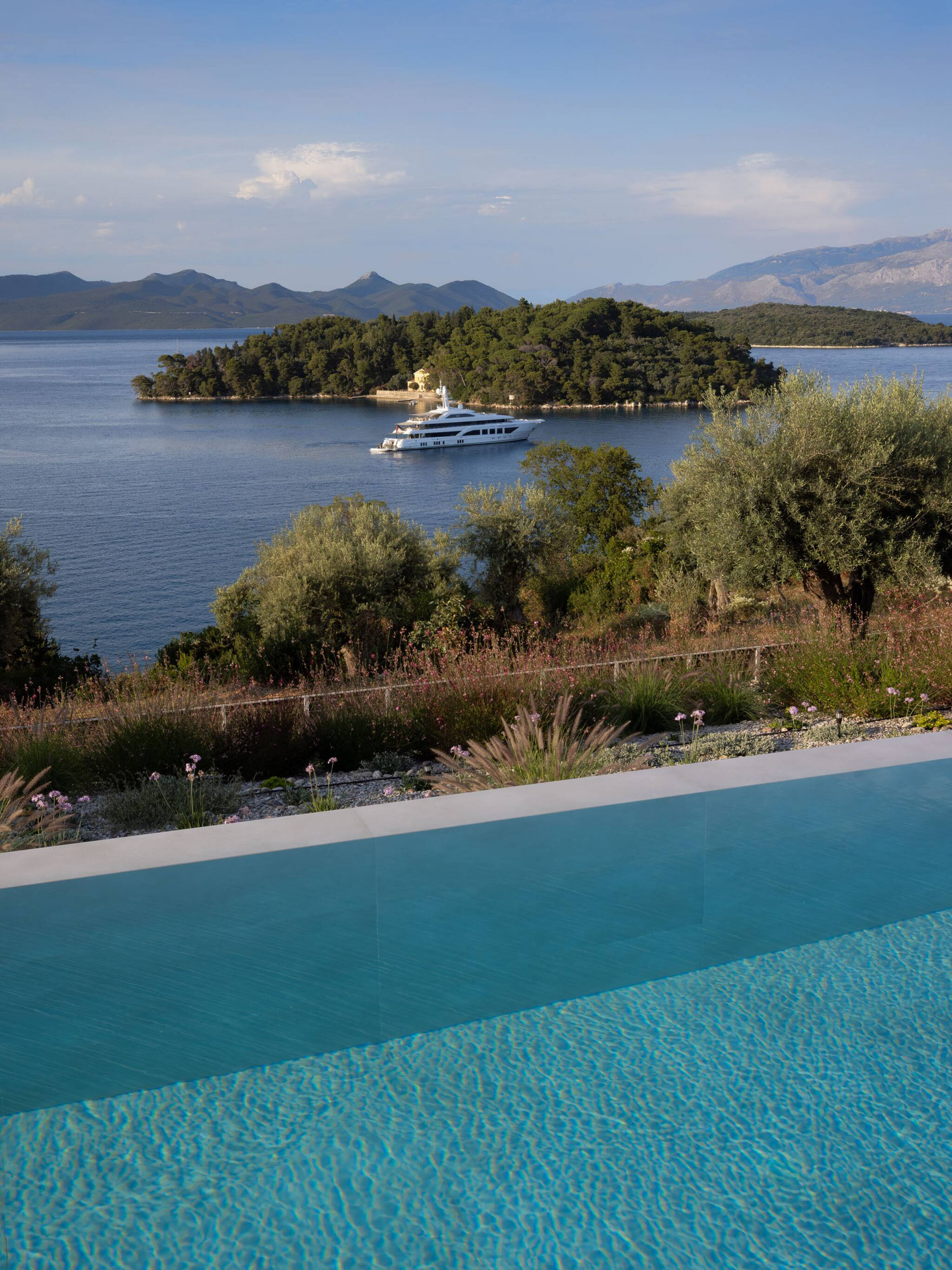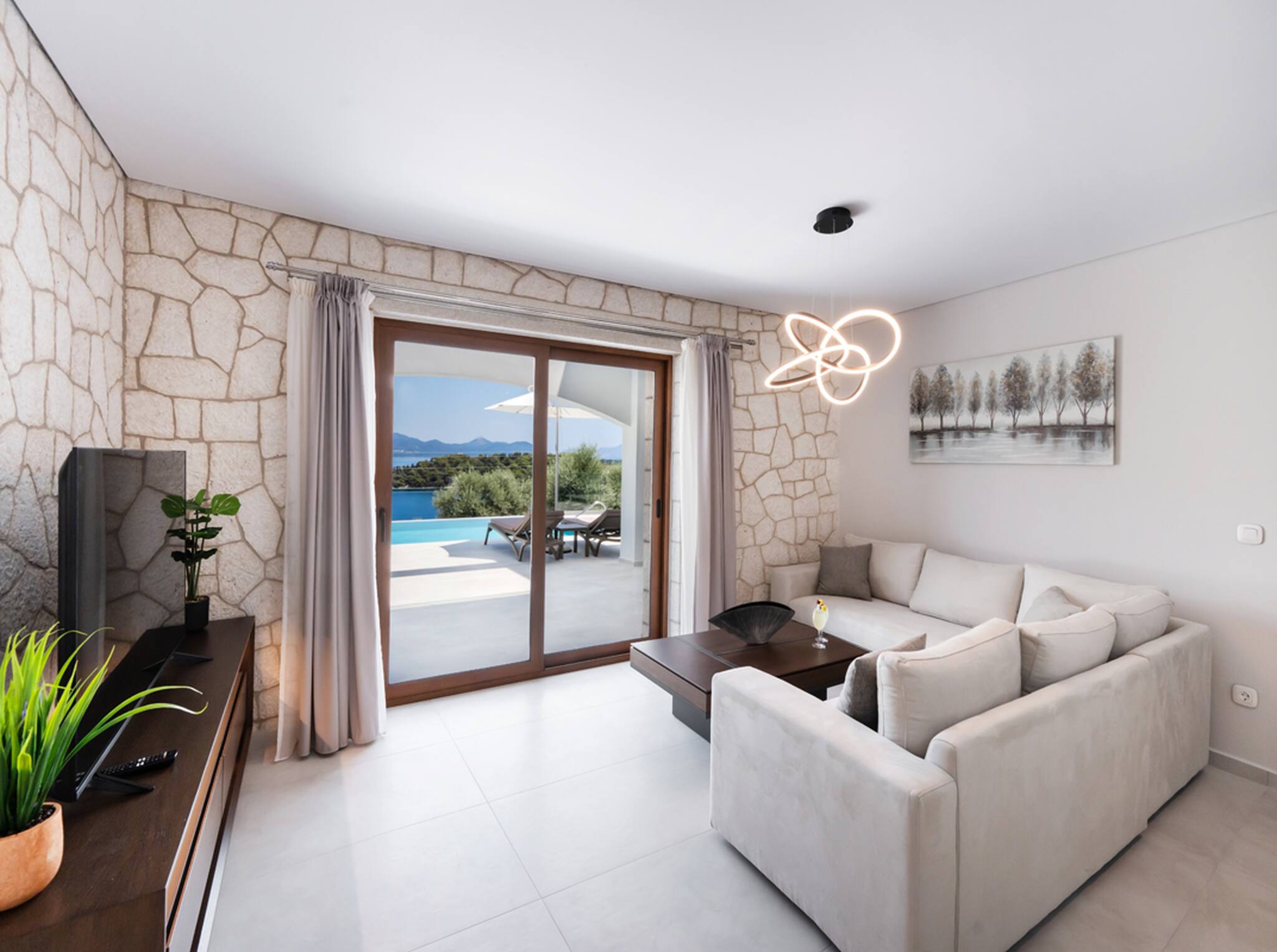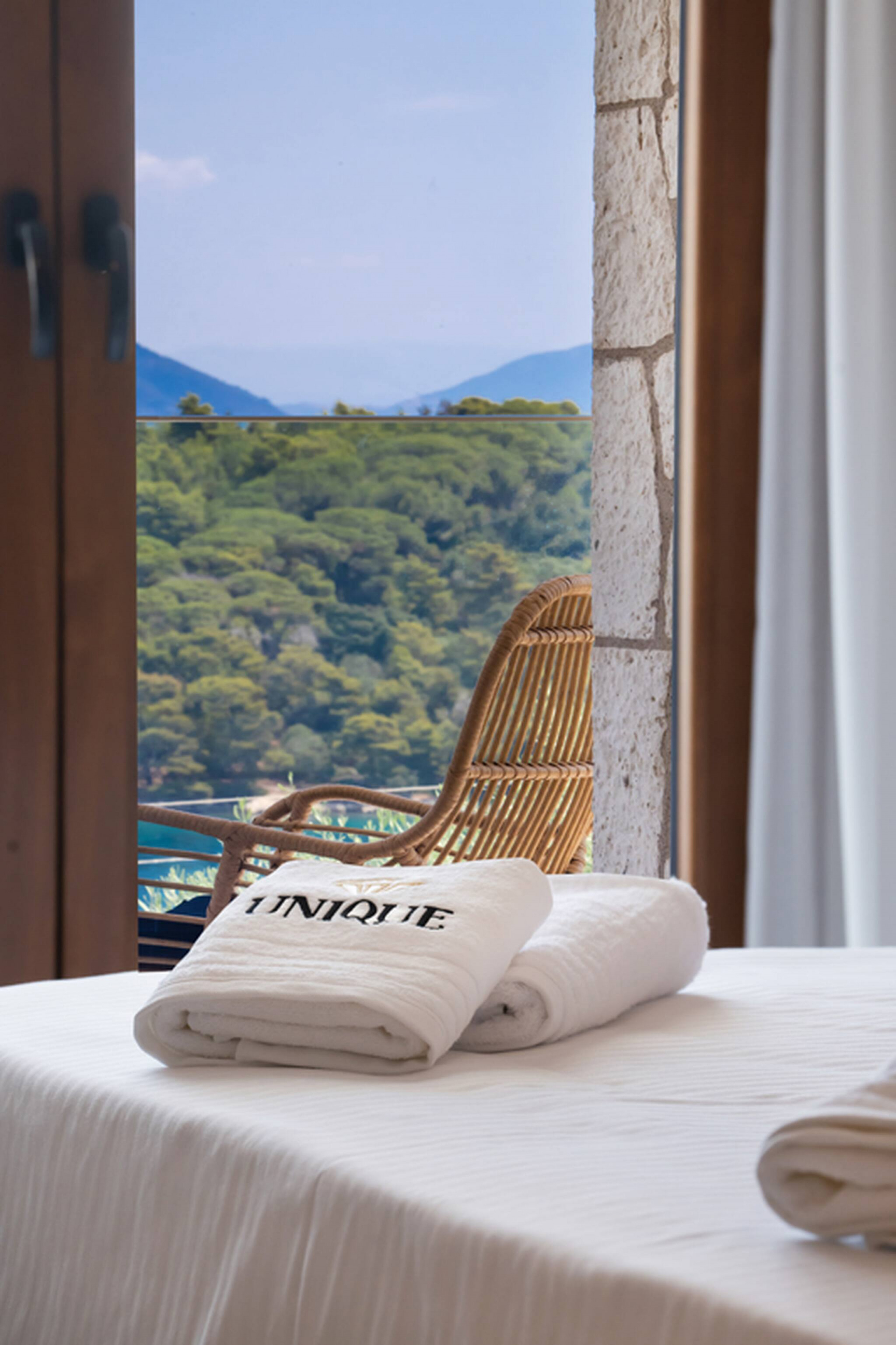 Located on the lush green mountainside and engulfed naturally amongst the olive groves of Geni Bay is our brand new, Villa Unique. This private property oozes calmness and its design blends naturally with its surrounding environment. Floor-to-ceiling glass doors flood the interiors with natural light creating a Greek Luxury Villa Holiday experience like no other.