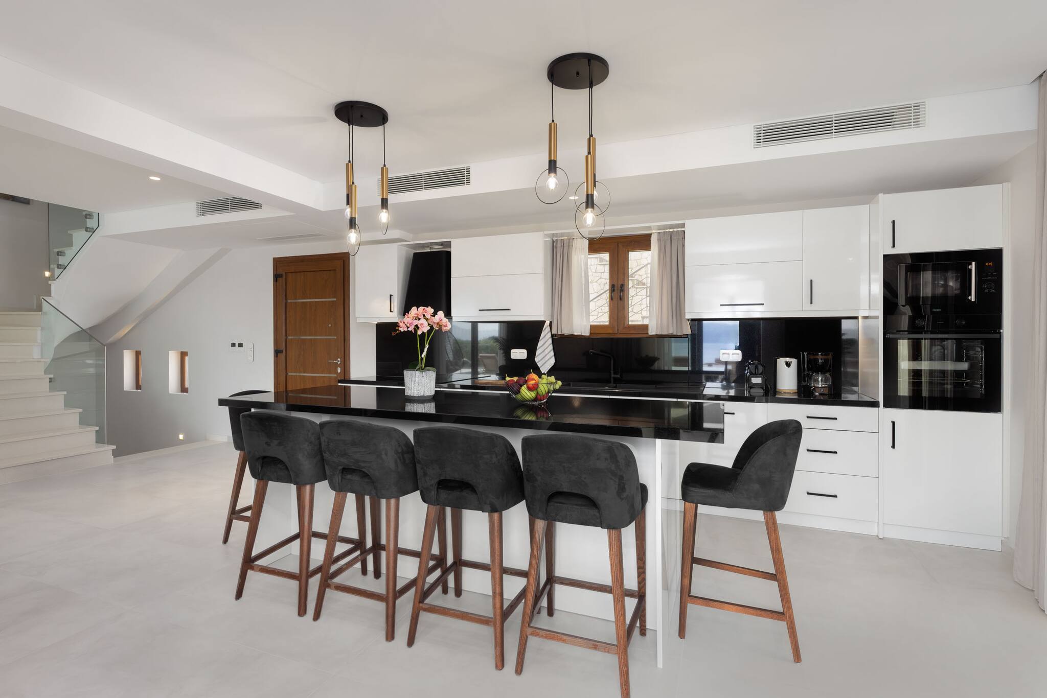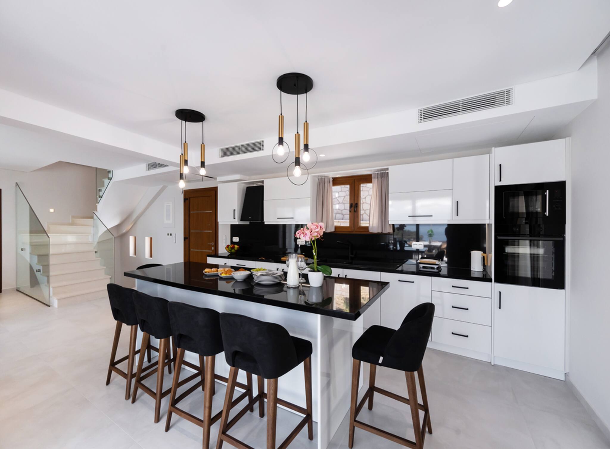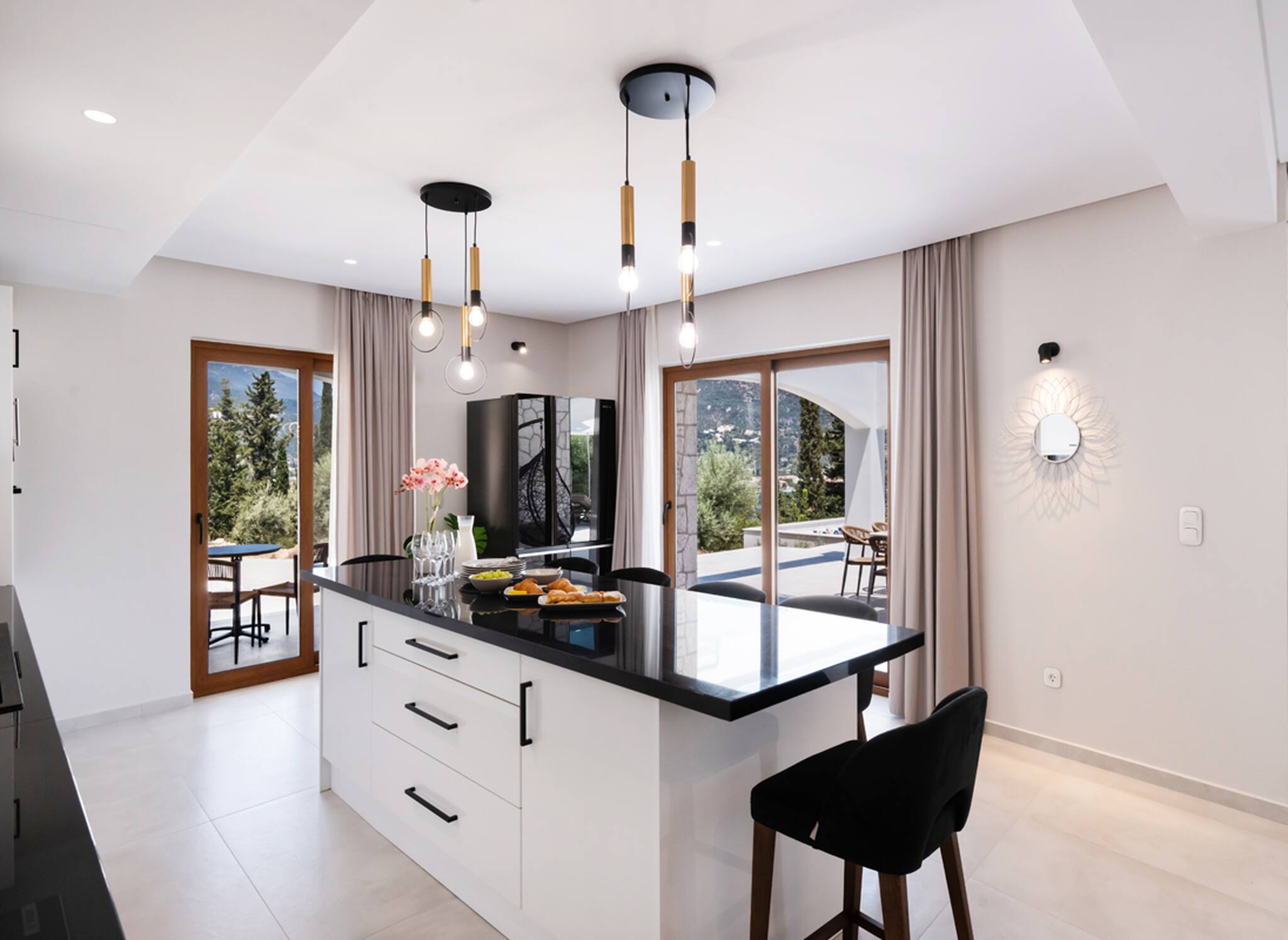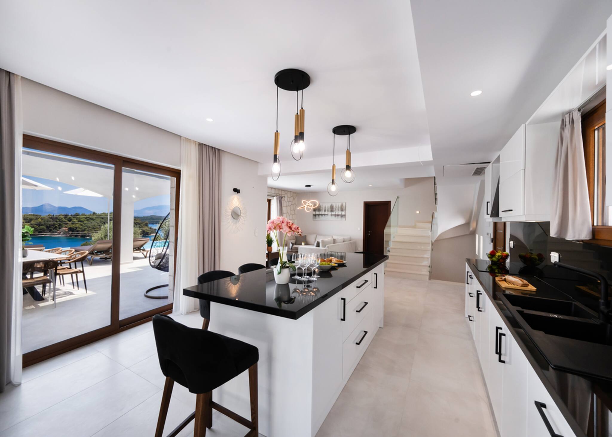 Located on the lush green mountainside and engulfed naturally amongst the olive groves of Geni Bay is our brand new, Villa Unique. This private property oozes calmness and its design blends naturally with its surrounding environment. Floor-to-ceiling glass doors flood the interiors with natural light creating a Greek Luxury Villa Holiday experience like no other.