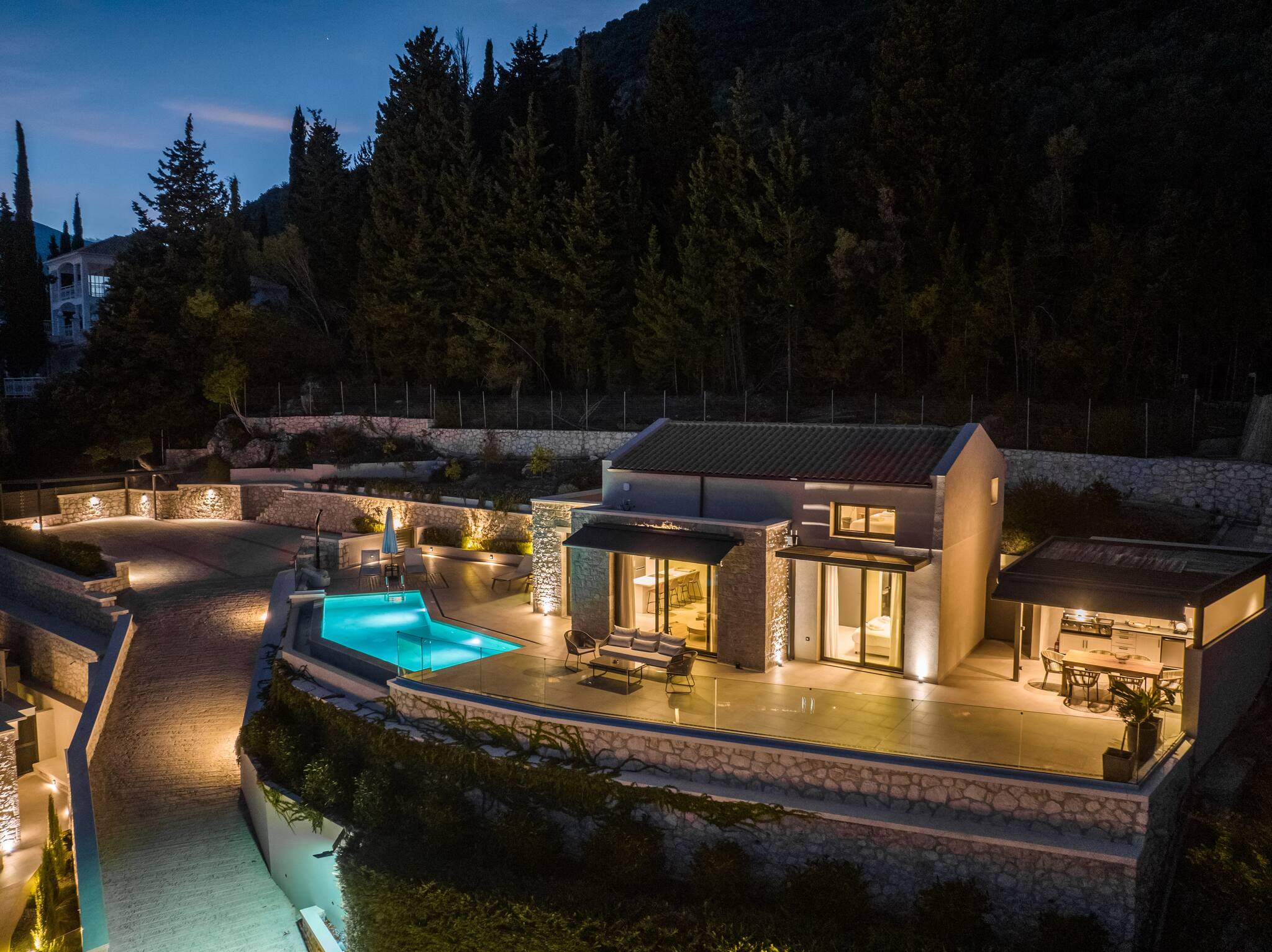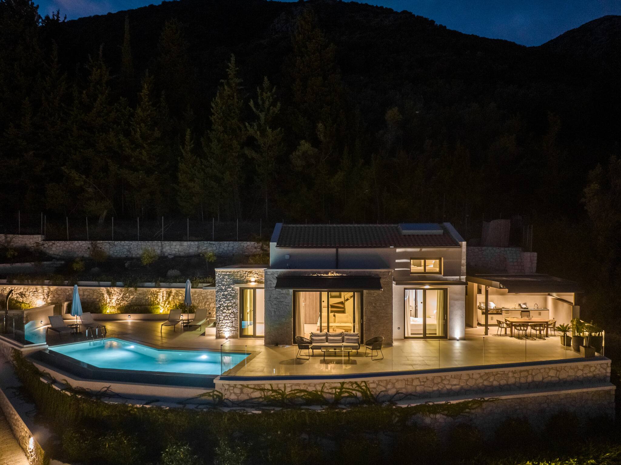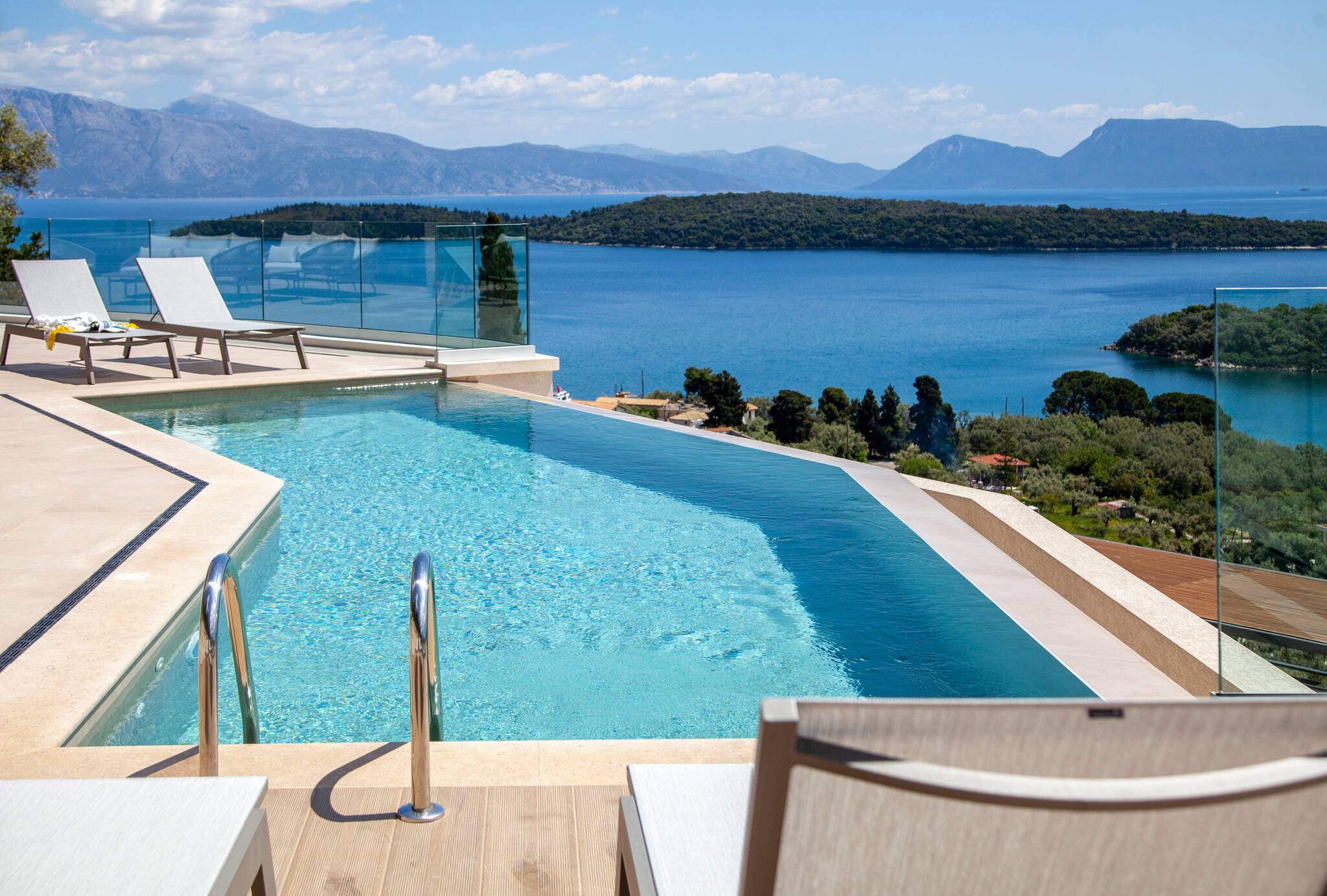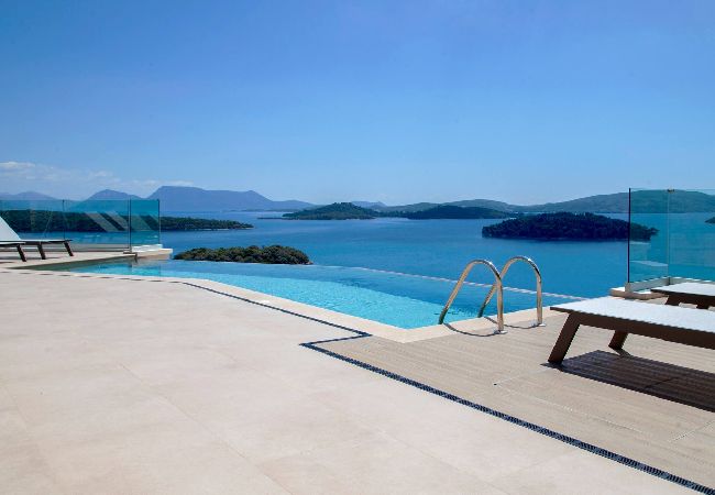 This unique place has a style all its Welcome to Villa Phaena, a luxurious hillside retreat in Nidri, Lefkada, Greece. Wake up to breathtaking sea views and indulge in the beauty of Scorpios and Meganisi islands. With large sliding glass doors opening to the outdoor pool and barbecue area, every moment at the infinity pool feels like a slice of heaven.