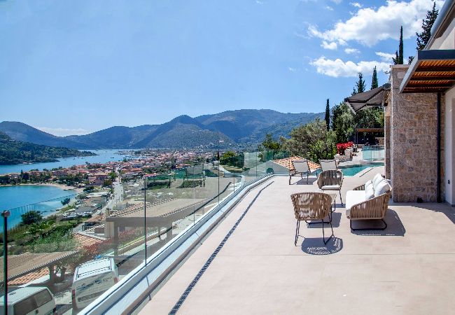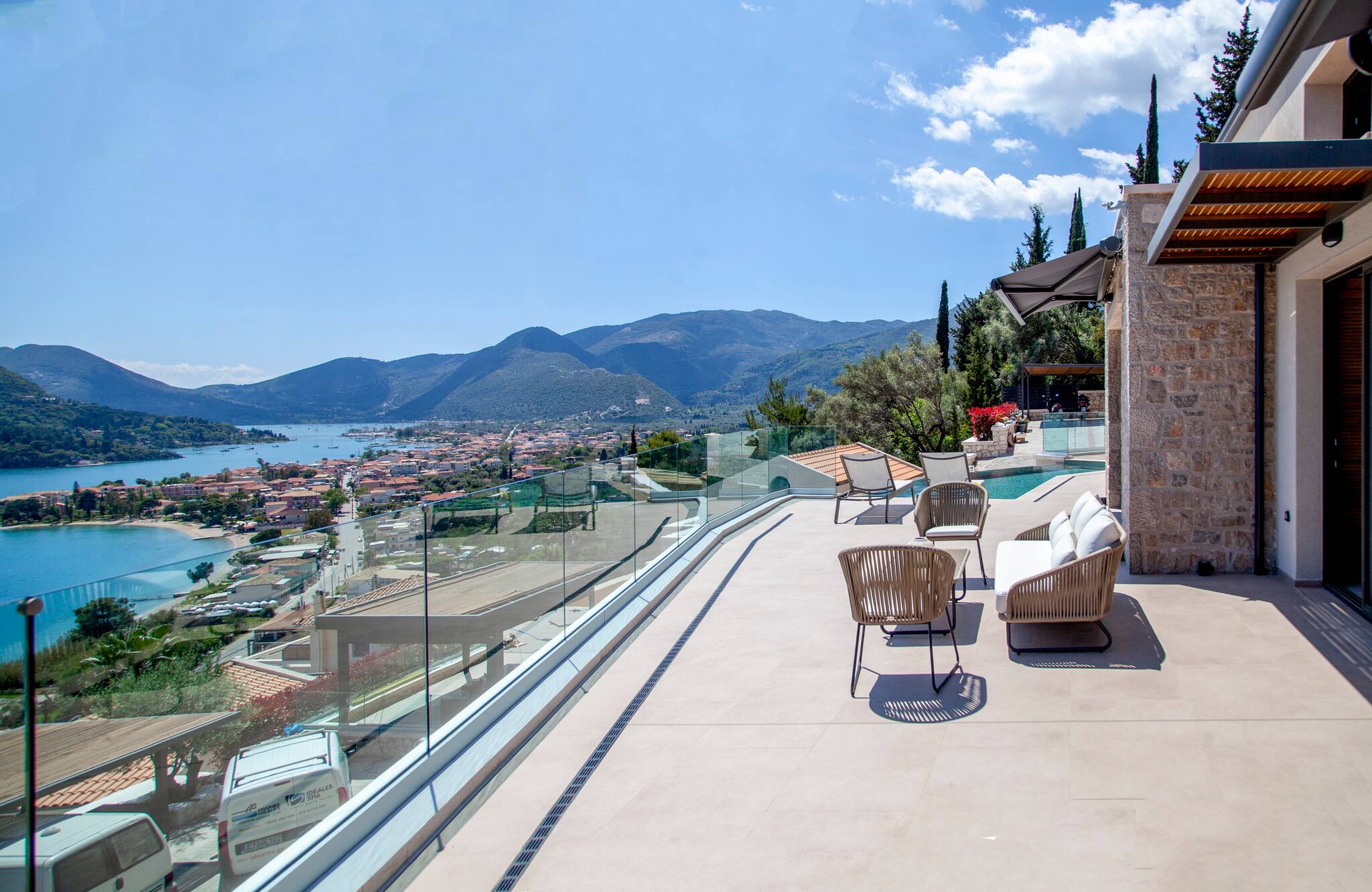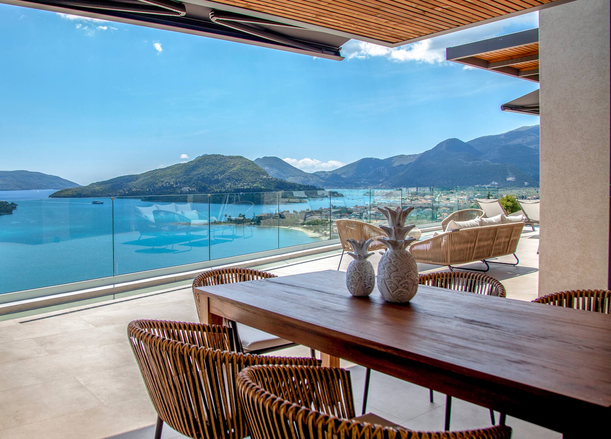 Villa Phaena is perched on the mountain side overlooking the bay of Nidri, with the added convenience of being just a short drive away from Passa Beach.