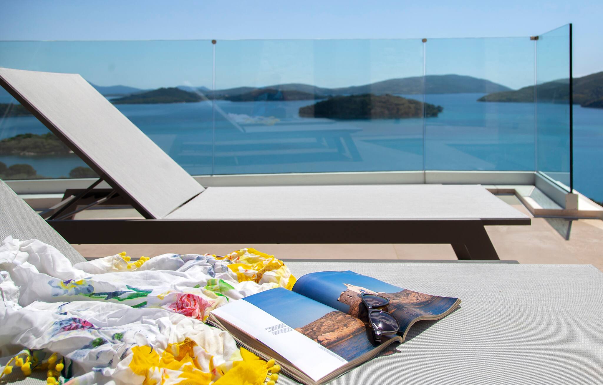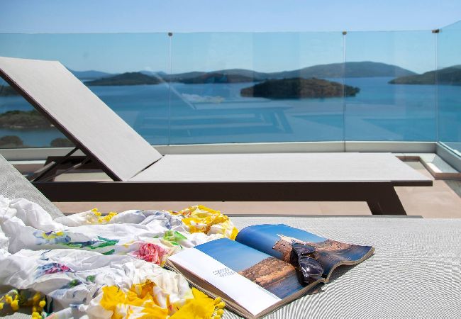Villa Phaena epitomizes luxury with its seamless integration of a sea-facing pool and barbecue area, offering a panoramic view that flawlessly complements its modern design. Step outside the living room to find the infinity pool, while the expansive patio invites you to relax on lounge chairs and sunbeds, soaking in the splendor.