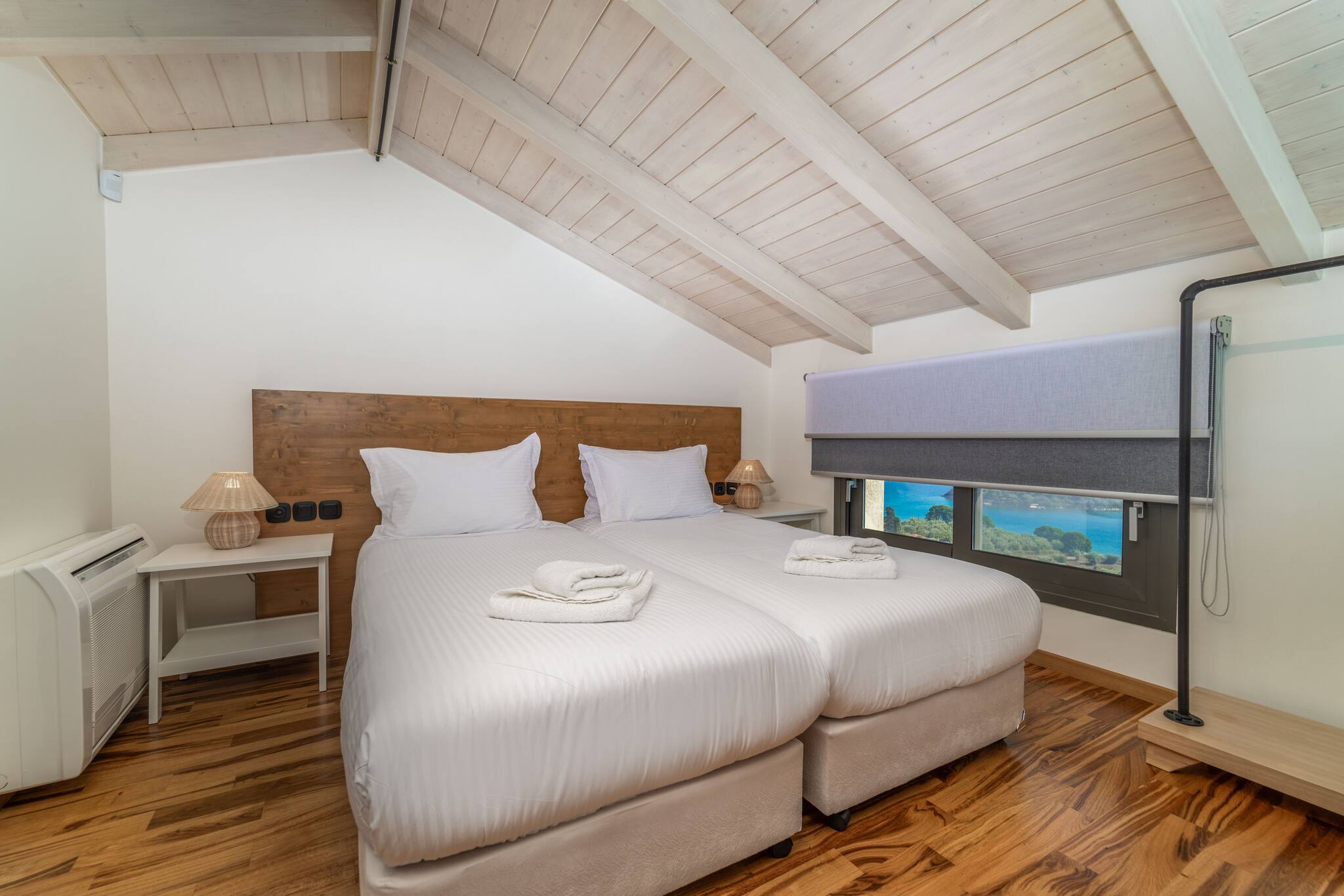 Looking again to your right from the entrance, you will see an internal staircase which leads to the upper floor. There, a serene and elegant twin bedroom awaits, accompanied by a tastefully designed ensuite bathroom, complete with a refreshing shower. Imagine waking up to the gentle allure of sea views, as the morning sunlight delicately illuminates the tranquil waters of the Ionian Sea. Discover a haven of understated luxury and immerse yourself in the captivating ambiance of Villa Orama.