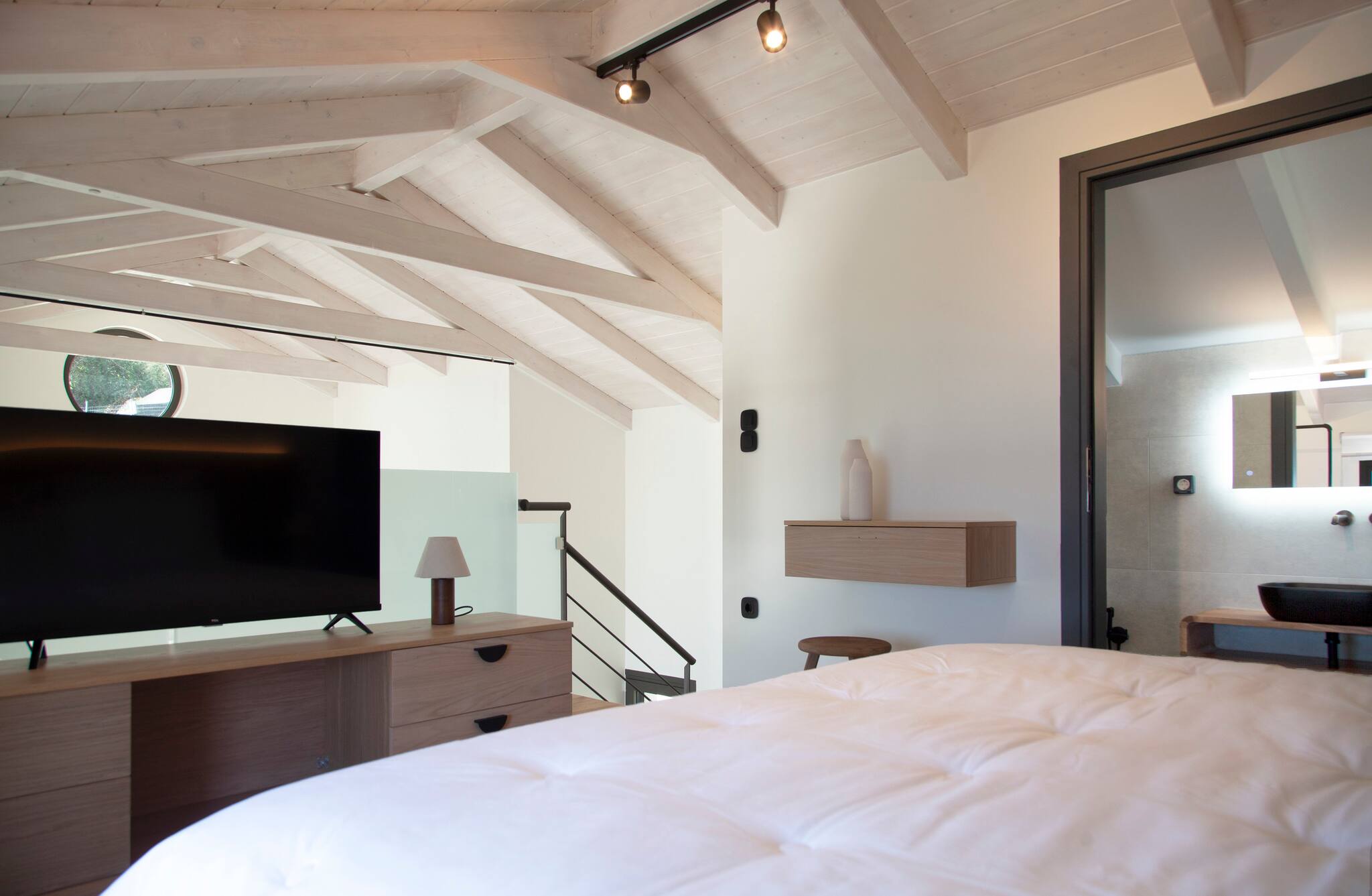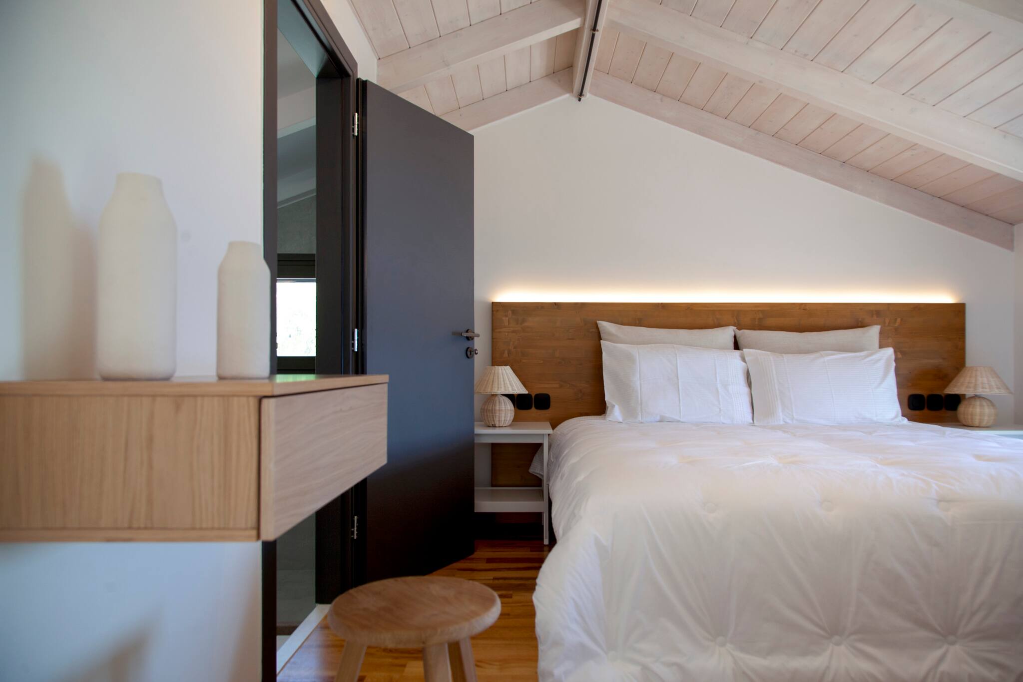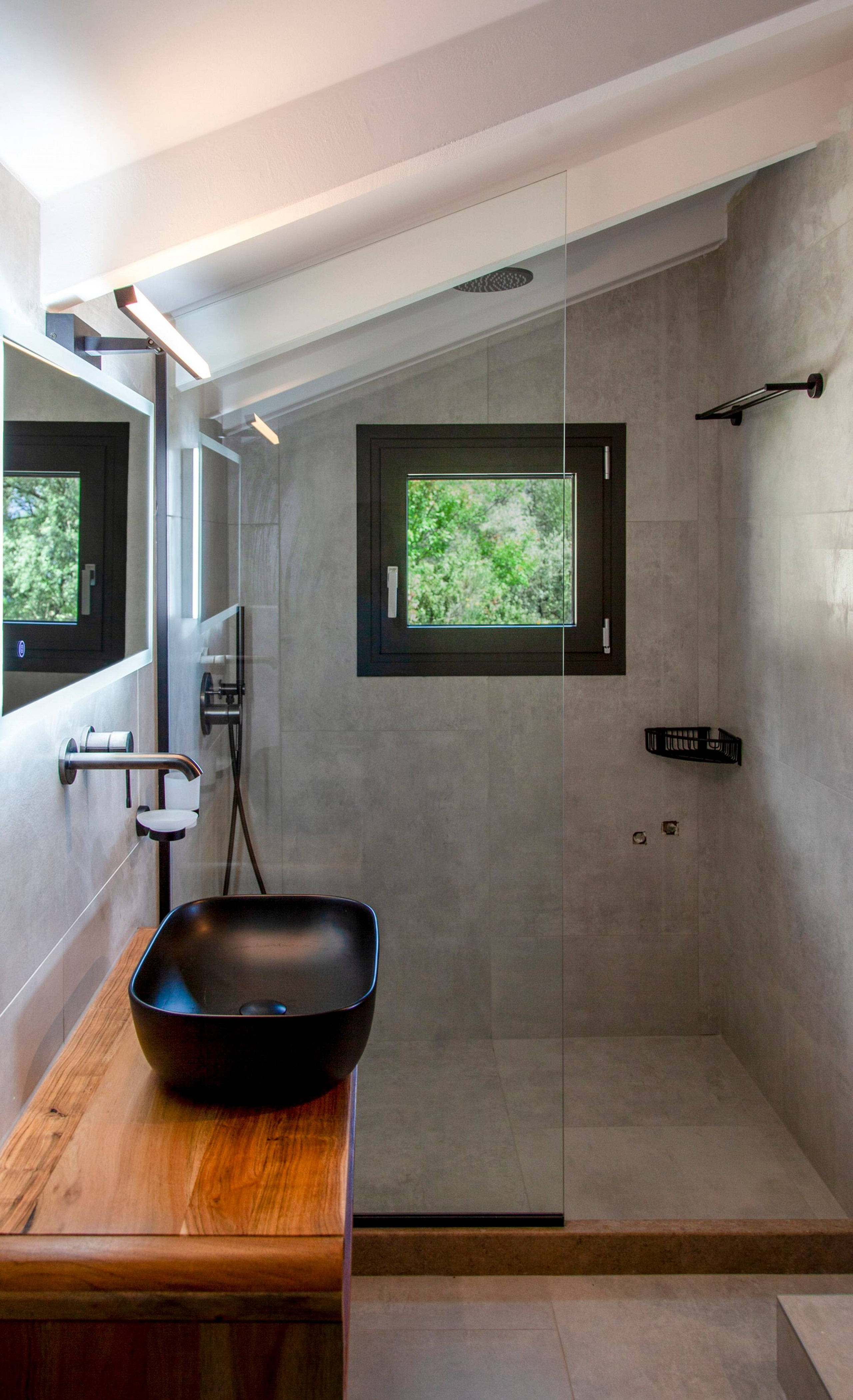Looking again to your right from the entrance, you will see an internal staircase which leads to the upper floor. There, a serene and elegant twin bedroom awaits, accompanied by a tastefully designed ensuite bathroom, complete with a refreshing shower. Imagine waking up to the gentle allure of sea views, as the morning sunlight delicately illuminates the tranquil waters of the Ionian Sea. Discover a haven of understated luxury and immerse yourself in the captivating ambiance of Villa Onar.