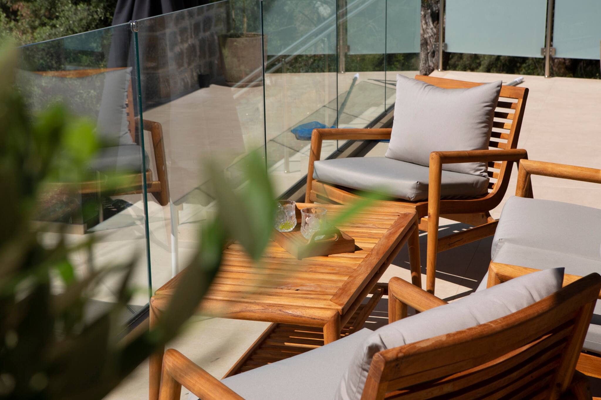 As you venture to the back, be greeted by a private balcony and pool area adorned with comfortable sunbeds. Here, you can bask in the splendor of the panoramic views that flawlessly complement the villa’s modern design. Immerse yourself in serenity, embracing the captivating surroundings while luxuriating in the refreshing waters of the pool. Villa Onar invites you to relish in the pinnacle of relaxation and sophistication, where every detail has been meticulously crafted to ensure an unforgettable stay.