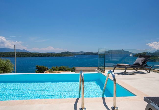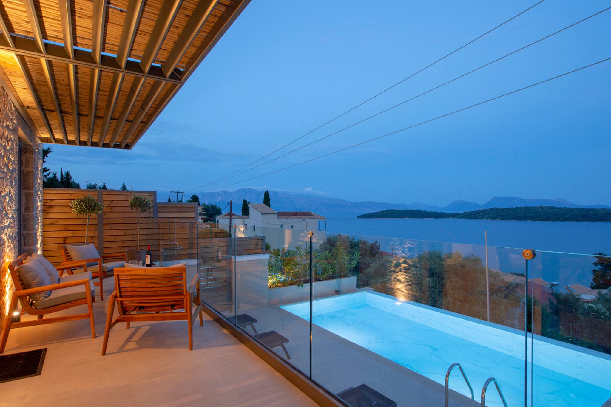 Villa Onar in Lefkada, is perched on the mountain side overlooking the bay of Perigiali and Nidri, with the luxury of being walking distance to Passa Beach.
