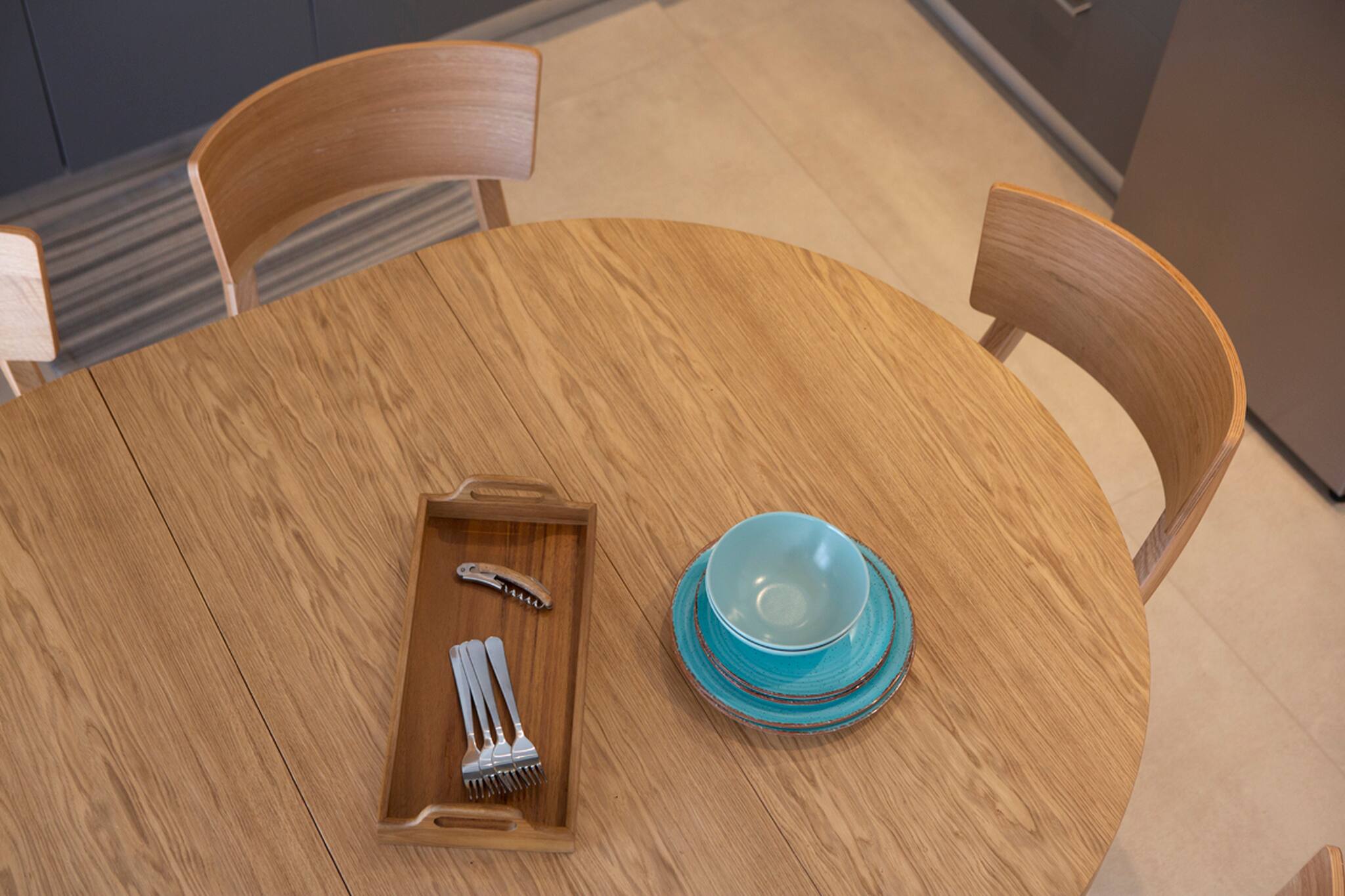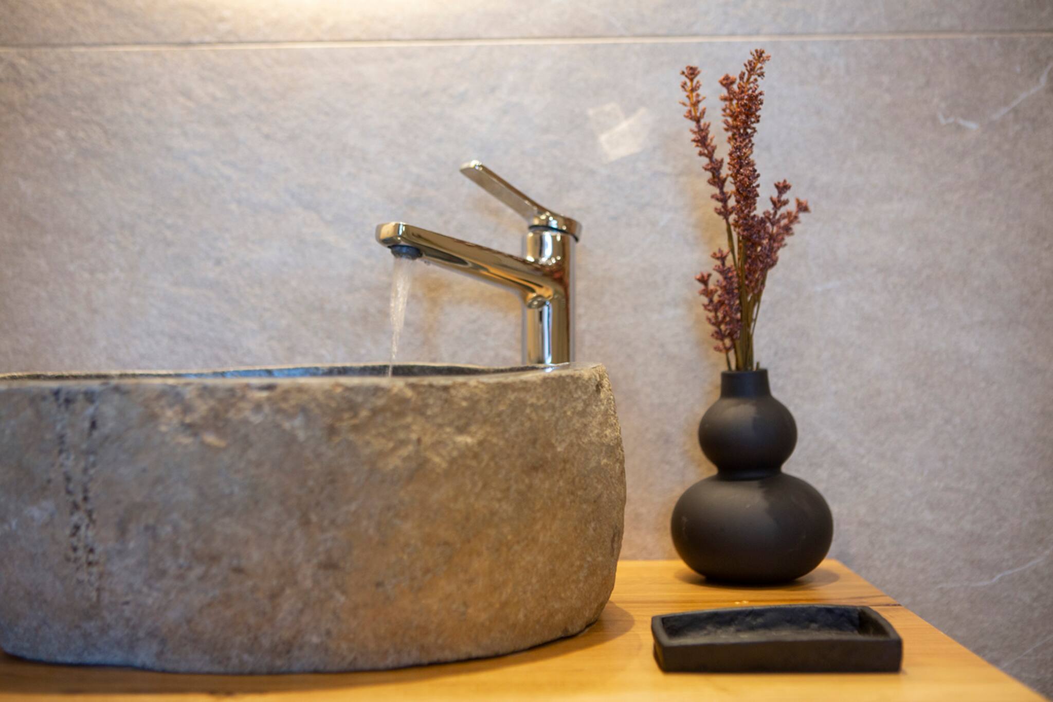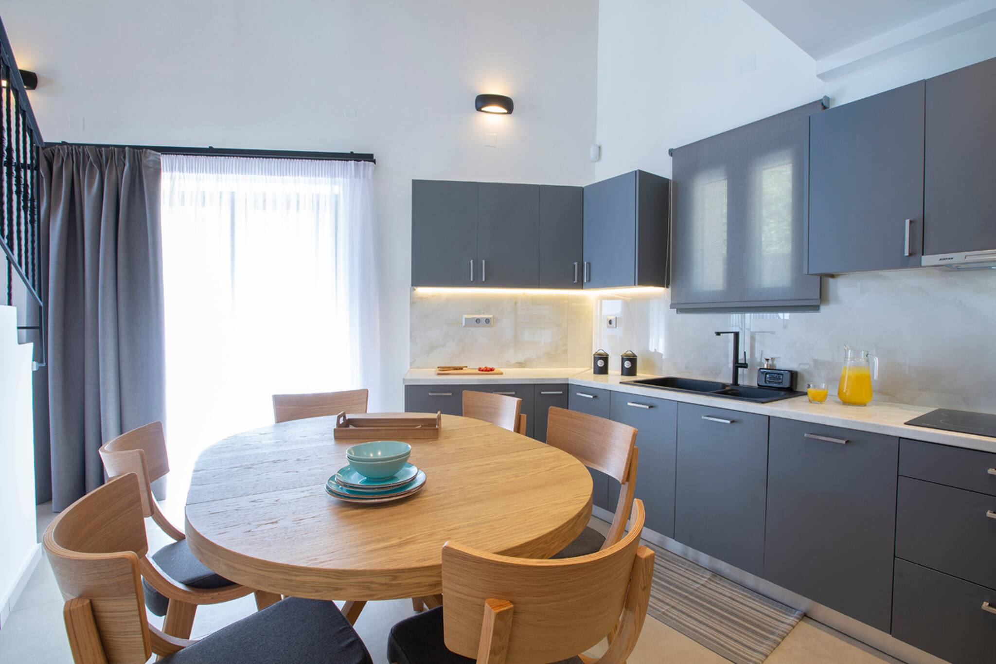 Step into Villa Phaena and be greeted by a stylish layout. To your right, a fully-equipped kitchen awaits, while the inviting living room beckons to your left. On the lower floor, discover a double bedroom with an ensuite bathroom, accessible through a door on the left.