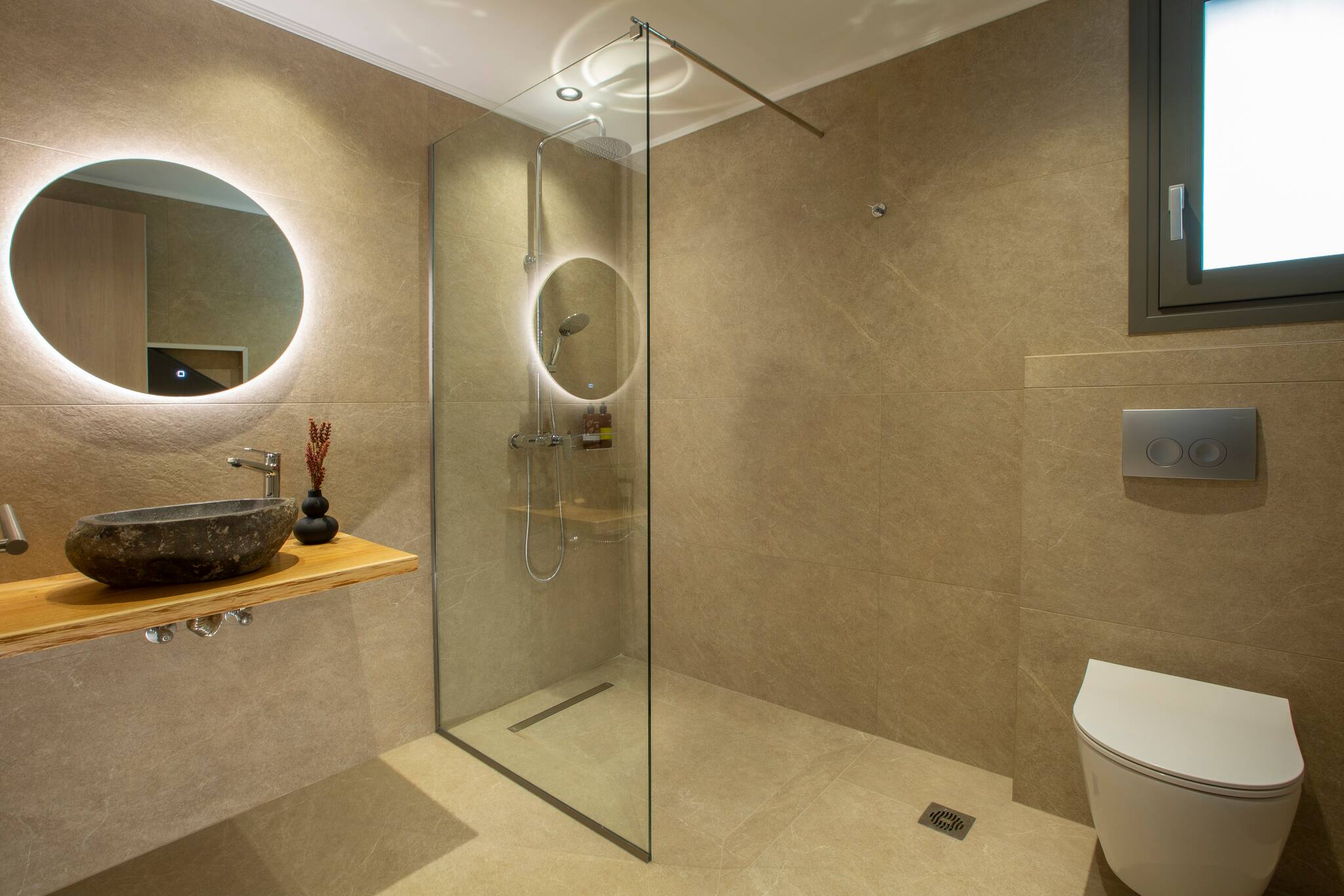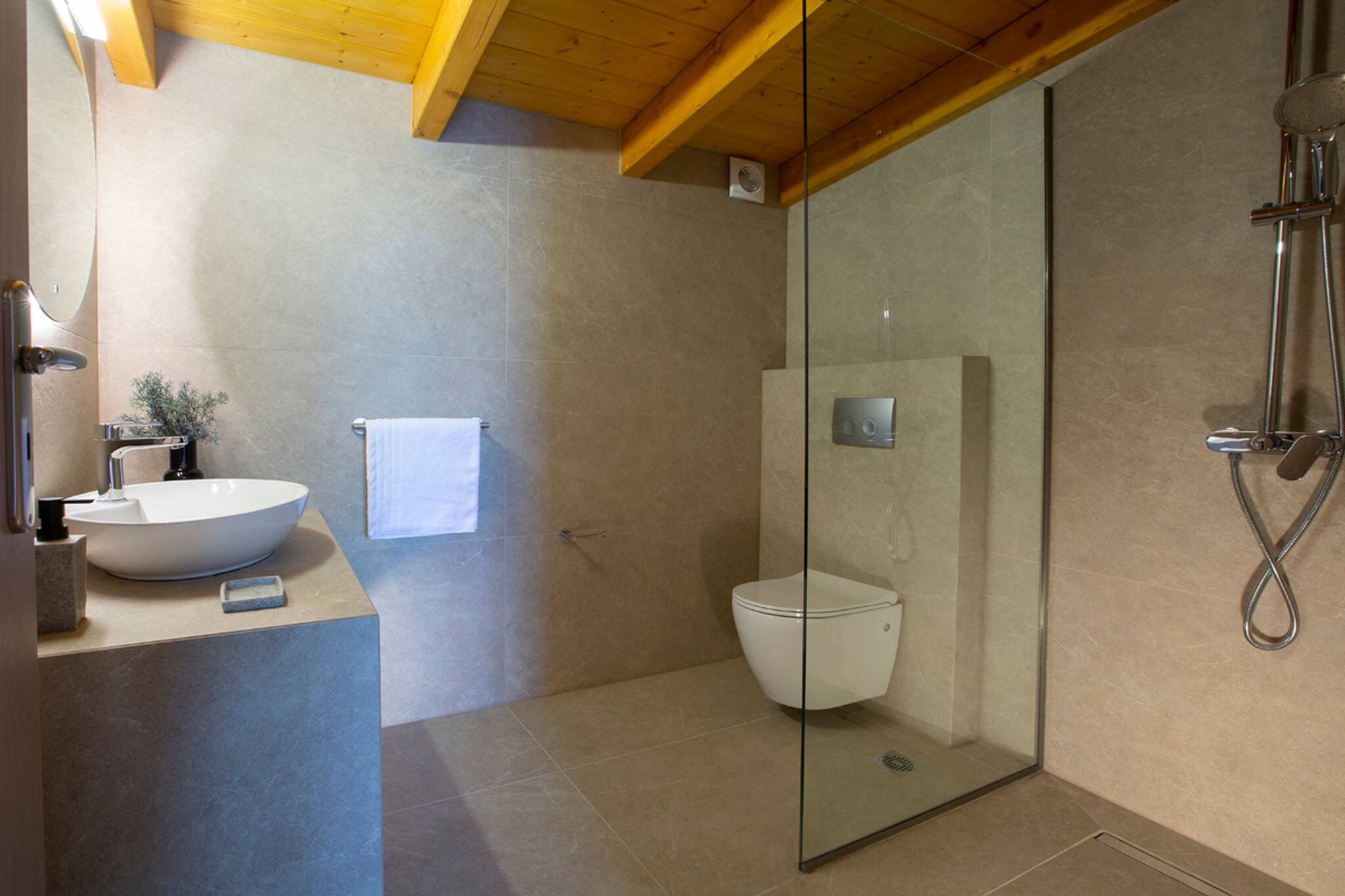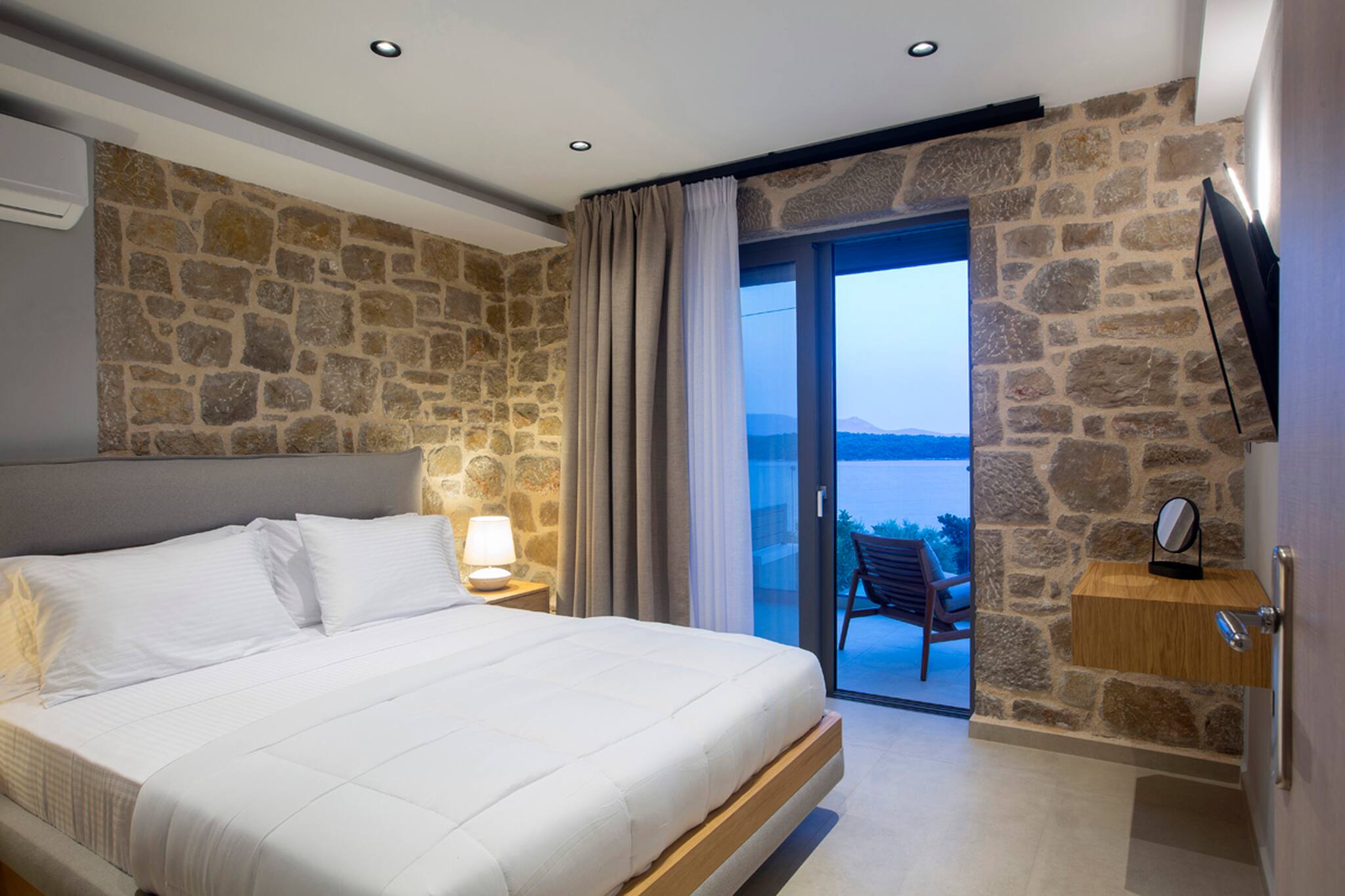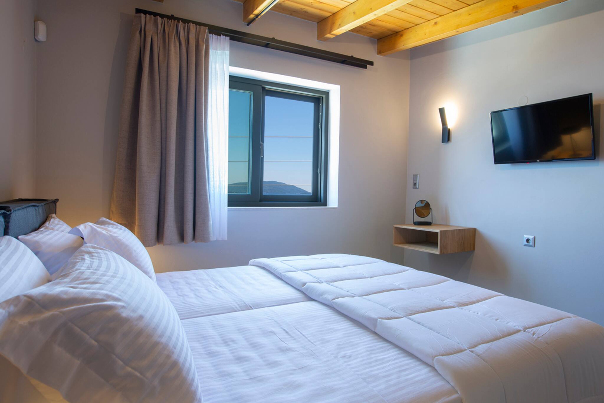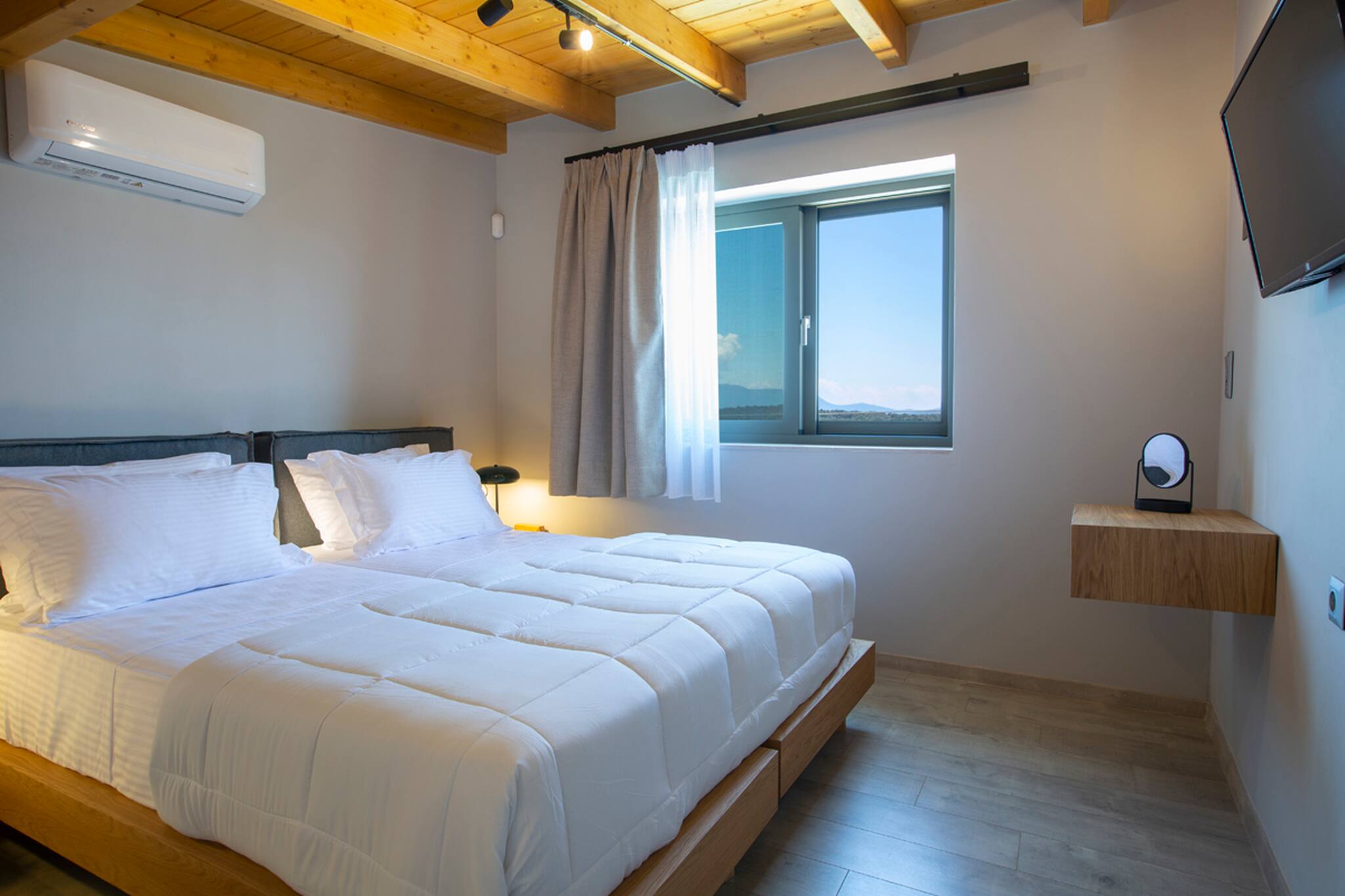 The villa was constructed with modern techniques and materials, and even under the beaming Greek summer sun the villa stays cool. All rooms are equipped with an air conditioner which can cool or heat the space to your preferred temperature in minutes.