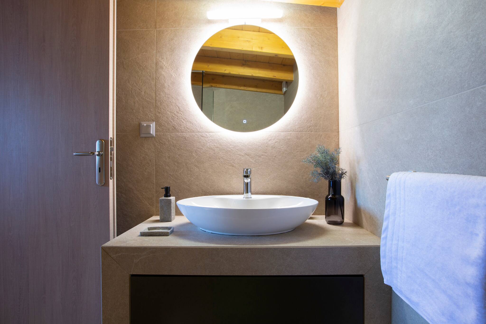 Looking again to your right from the entrance, you will see an internal staircase which leads to the upper floor. There, a serene and elegant twin bedroom awaits, accompanied by a tastefully designed ensuite bathroom, complete with a refreshing shower. Imagine waking up to the gentle allure of sea views, as the morning sunlight delicately illuminates the tranquil waters of the Ionian Sea. Discover a haven of understated luxury and immerse yourself in the captivating ambiance of Villa Onar.