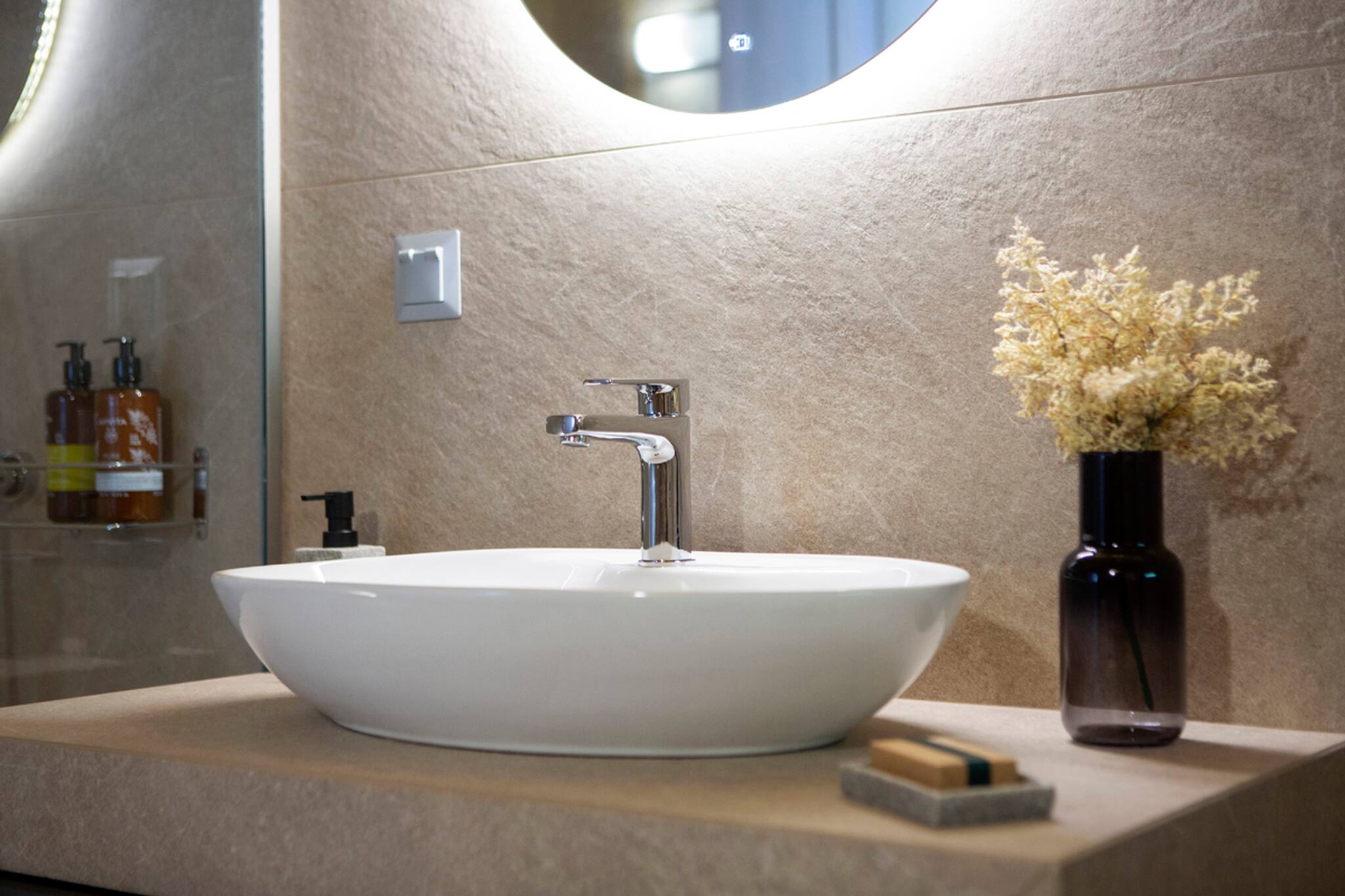 Looking again to your right from the entrance, you will see an internal staircase which leads to the upper floor. There, a serene and elegant twin bedroom awaits, accompanied by a tastefully designed ensuite bathroom, complete with a refreshing shower. Imagine waking up to the gentle allure of sea views, as the morning sunlight delicately illuminates the tranquil waters of the Ionian Sea. Discover a haven of understated luxury and immerse yourself in the captivating ambiance of Villa Orama.