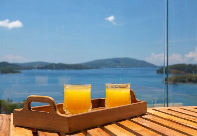 Villa Phaena is perched on the mountain side overlooking the bay of Nidri, with the added convenience of being just a short drive away from Passa Beach.