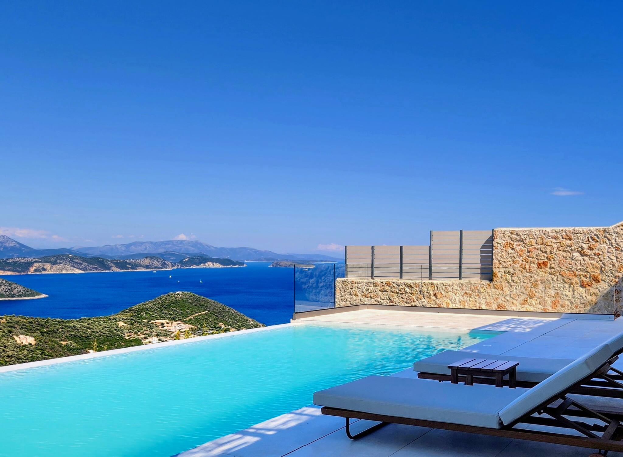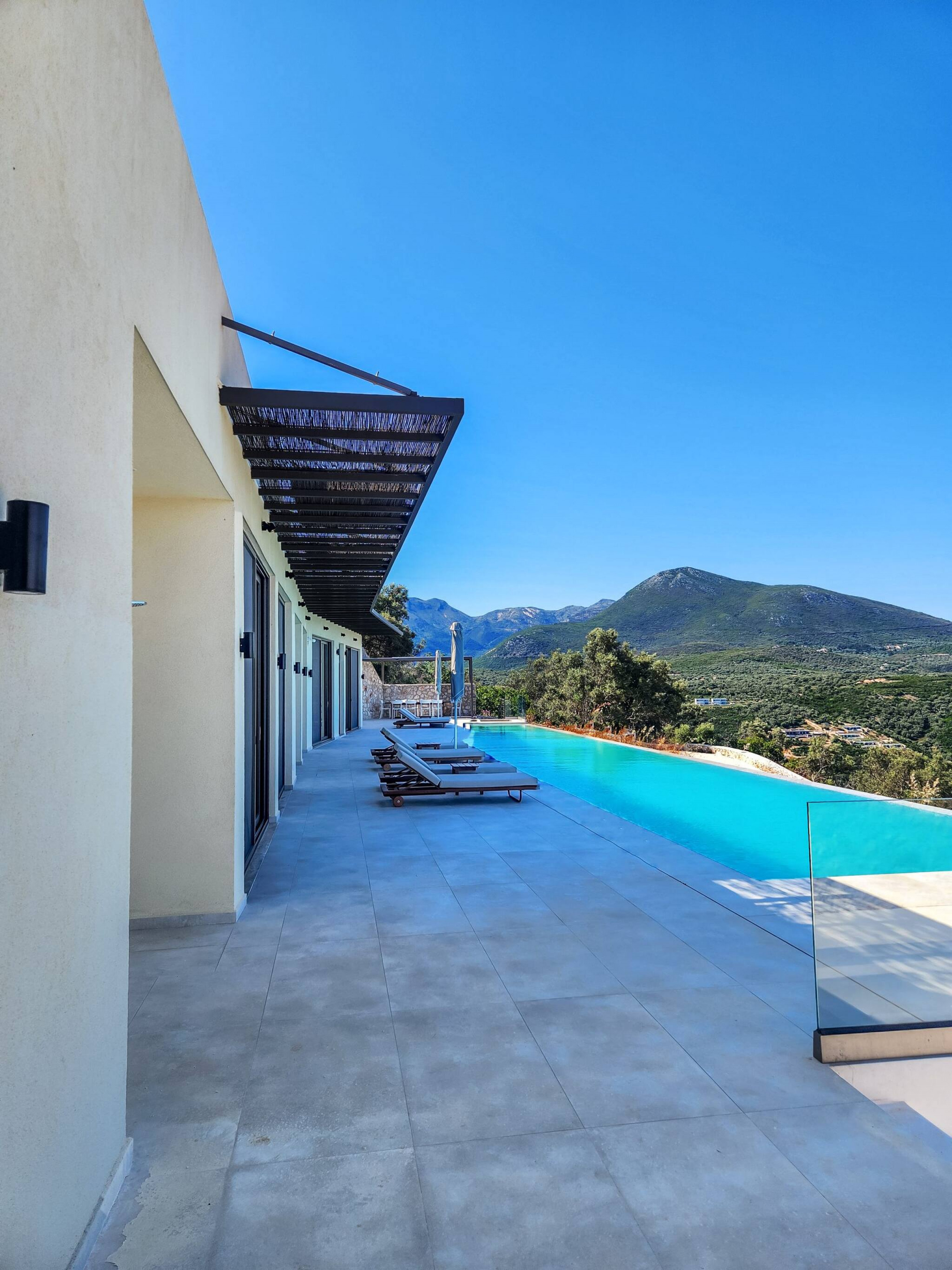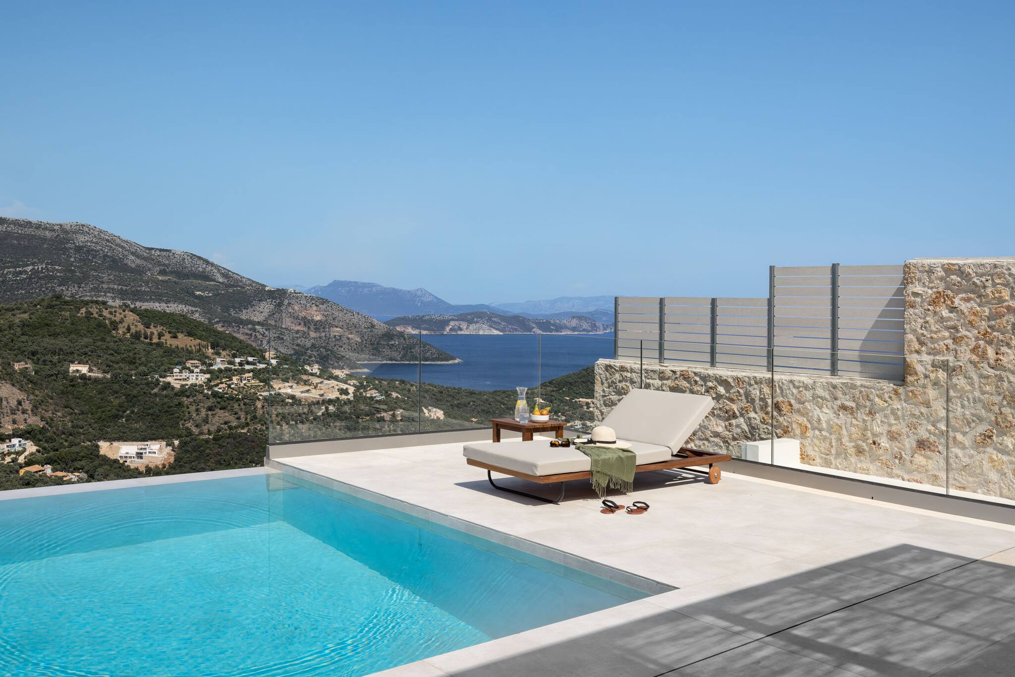 Villa Mulberry in Sivota, Lefkada offers an outdoor barefoot luxury experience like no other. The Villa offers the one of a kind feature of a 18 meter long swimming pool for ultimate relaxation. The very large private pool, surrounded by comfortable sun loungers, invites you to relax all day, basking in the warmth of the Greek summer sun while enjoying the endless seaviews.