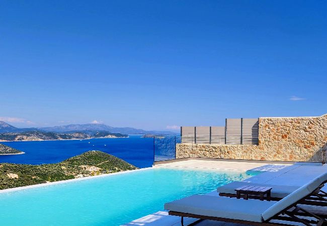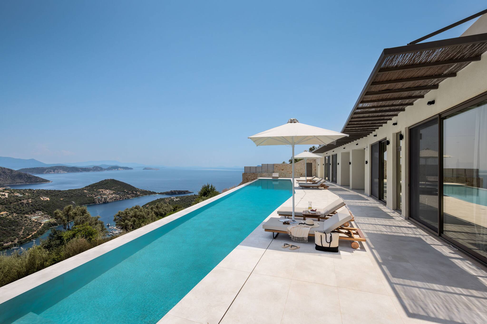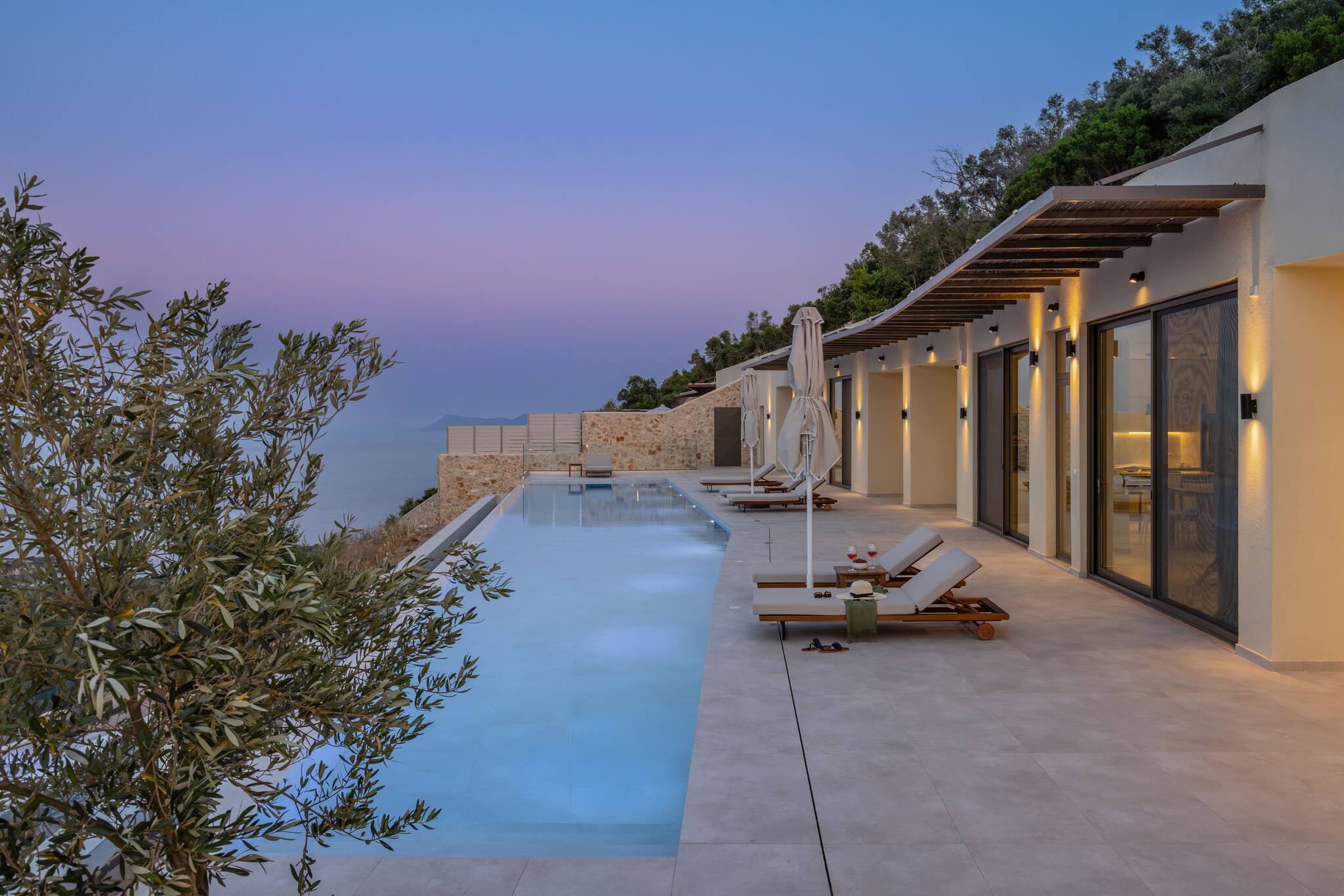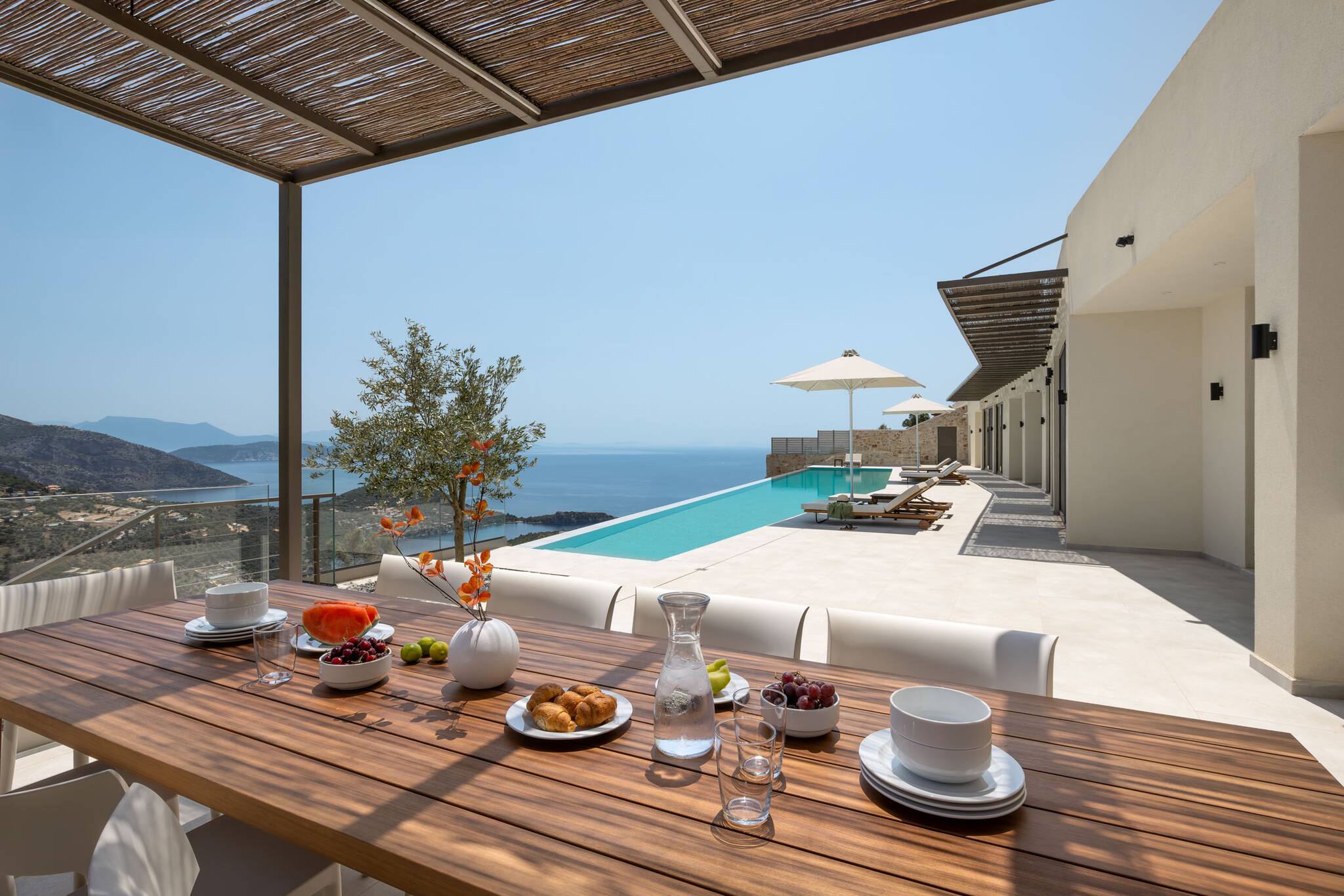 Villa Mulberry in Sivota, Lefkada offers an outdoor barefoot luxury experience like no other. The Villa offers the one of a kind feature of a 18 meter long swimming pool for ultimate relaxation. The very large private pool, surrounded by comfortable sun loungers, invites you to relax all day, basking in the warmth of the Greek summer sun while enjoying the endless seaviews.