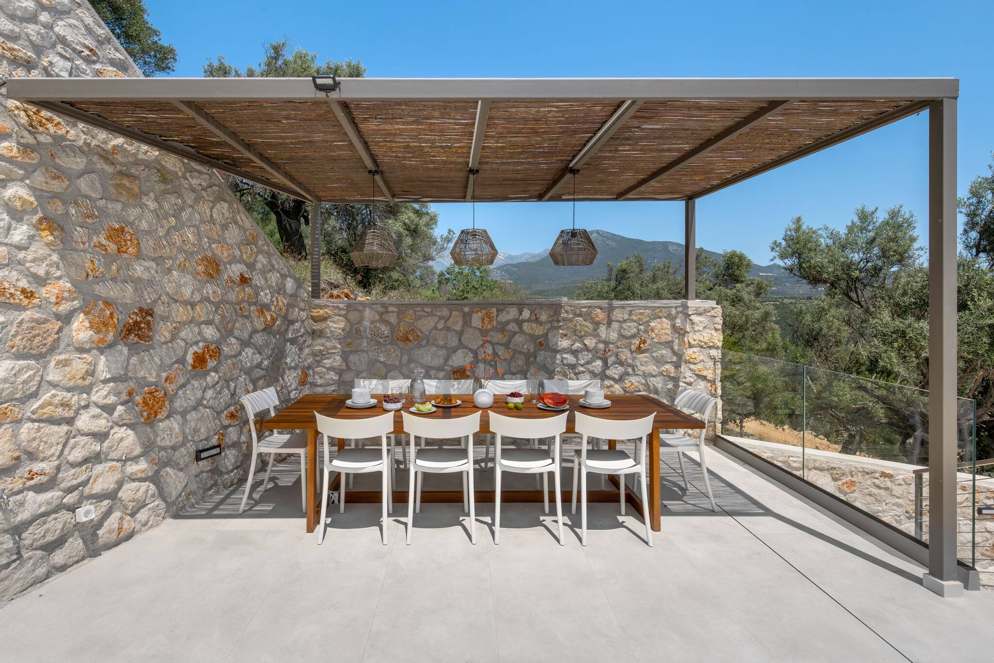 Engulfed by lush green olive groves on the mountainside; over-looking the picturesque yachters paradise of Sivota Bay, we proudly present, our brand-new Villa Mulberry.