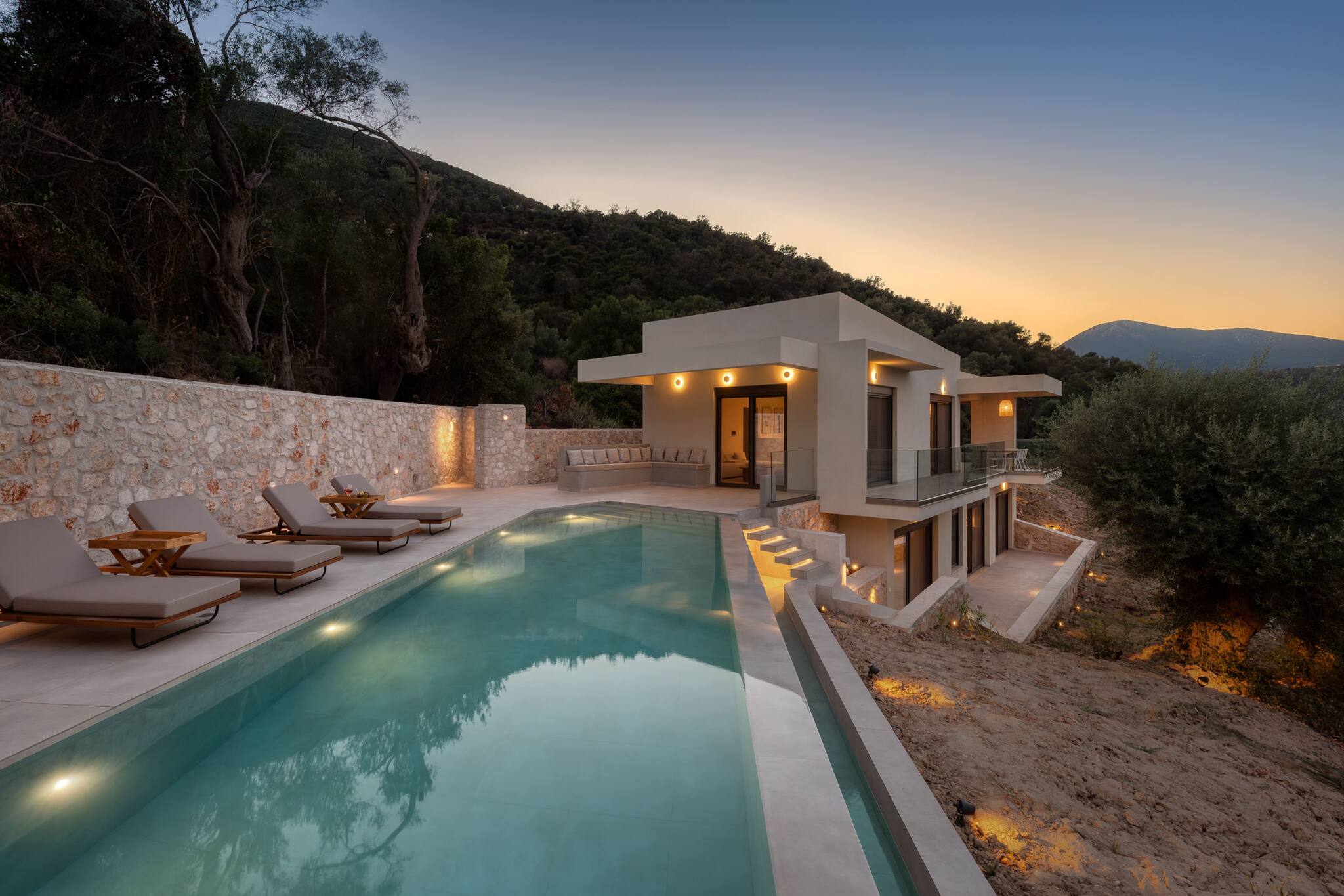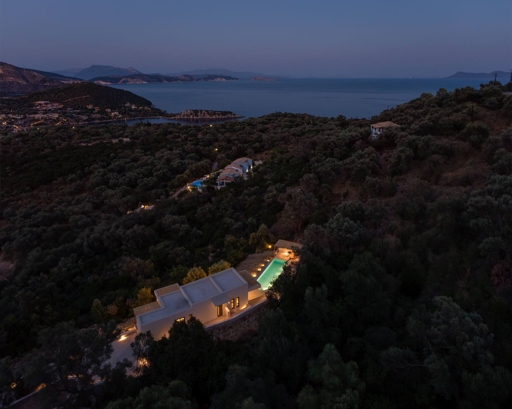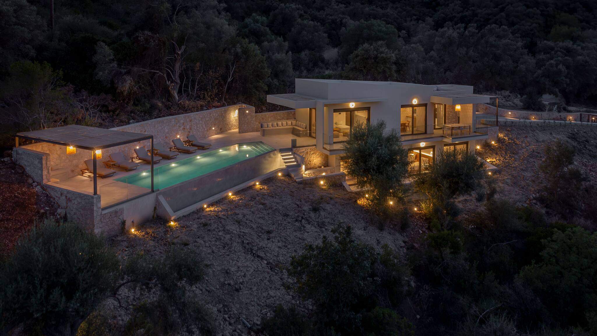 Located on the lush green mountainside and engulfed naturally amongst the olive groves of Sivota Bay is our brand new, Villa Eptanisa. This private property oozes calmness and its design blends naturally with its surrounding environment. The interior design of Villa Eptanisa is focused on the Japandi, which contributes to the overwhelming serenity and exclusivity of the location.