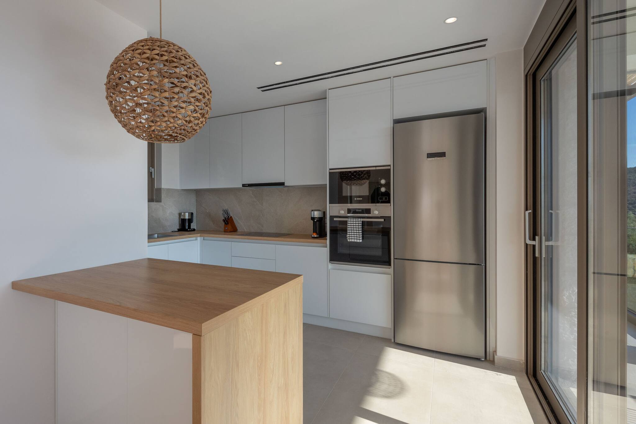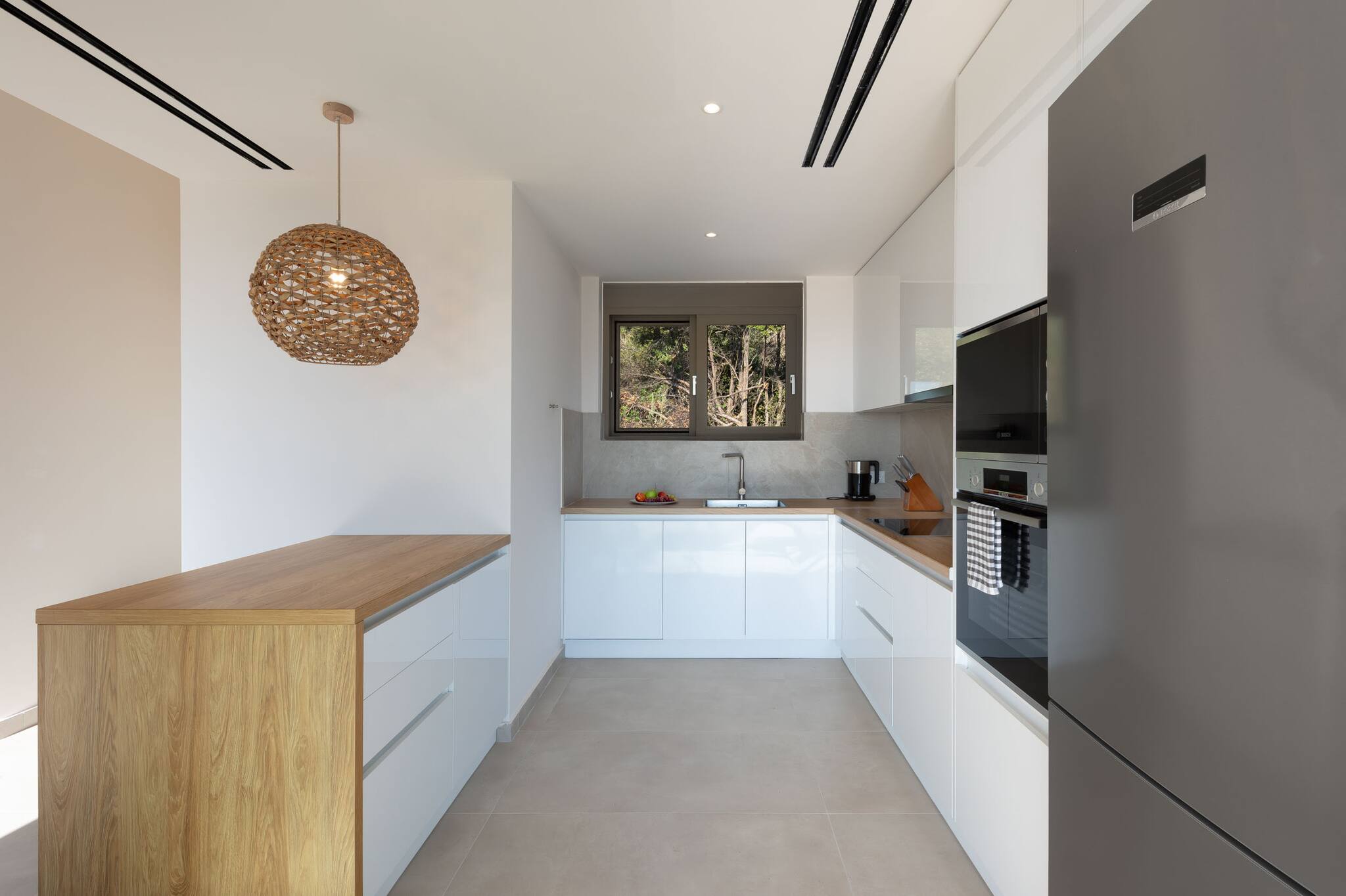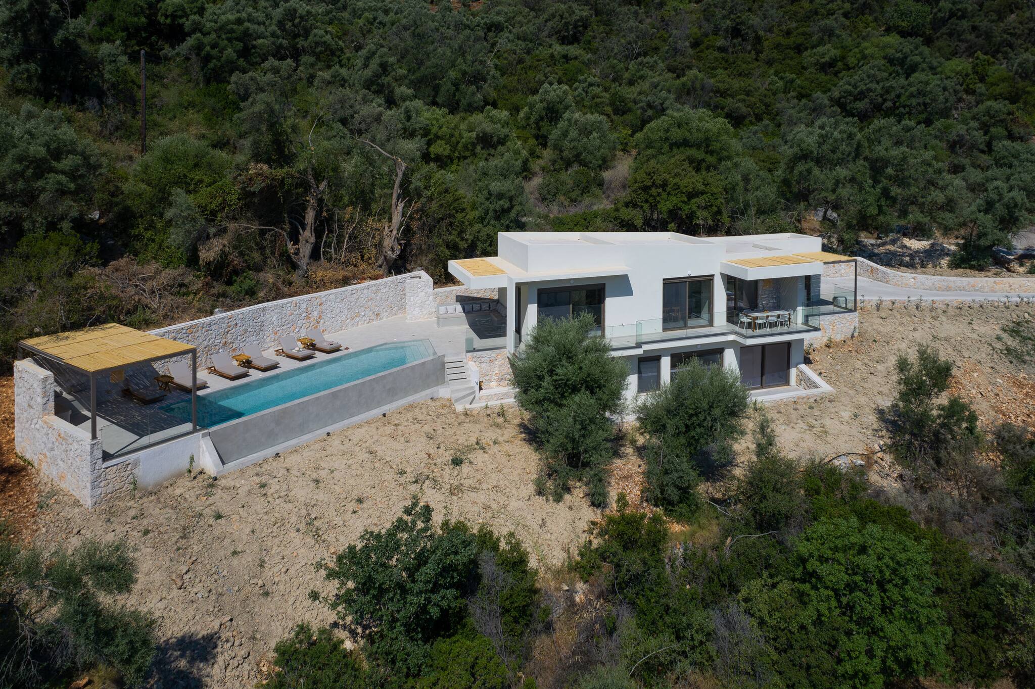 Located on the lush green mountainside and engulfed naturally amongst the olive groves of Sivota Bay is our brand new, Villa Eptanisa. This private property oozes calmness and its design blends naturally with its surrounding environment. The interior design of Villa Eptanisa is focused on the Japandi, which contributes to the overwhelming serenity and exclusivity of the location.