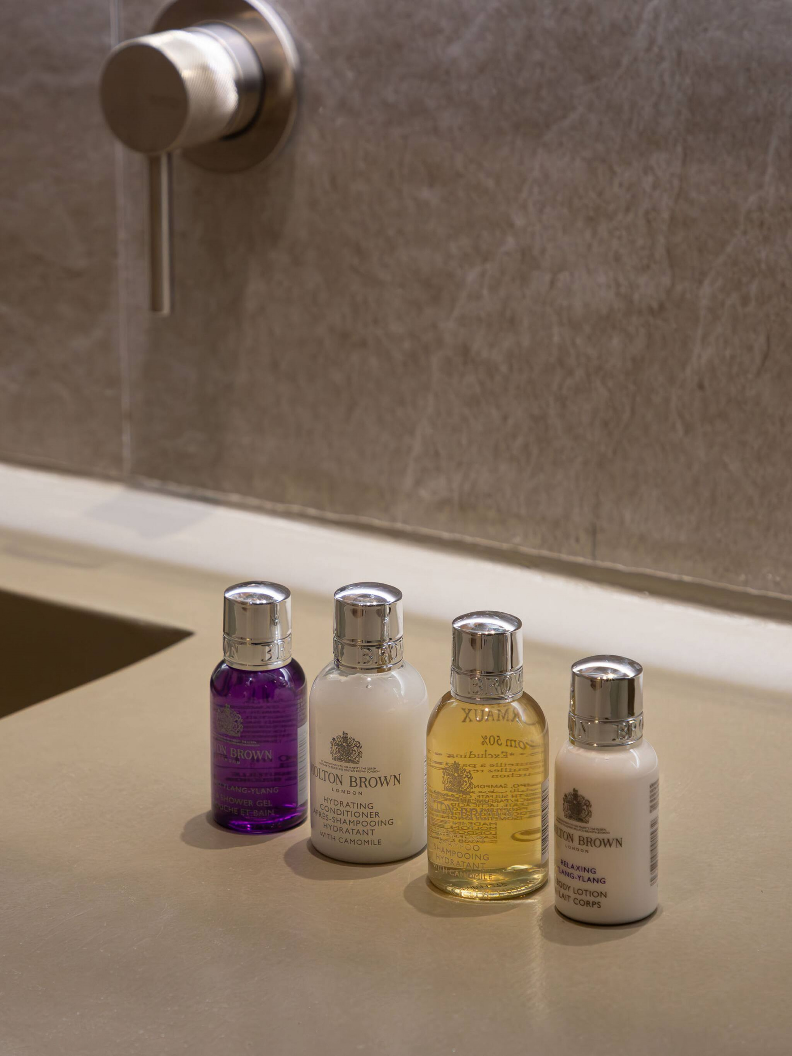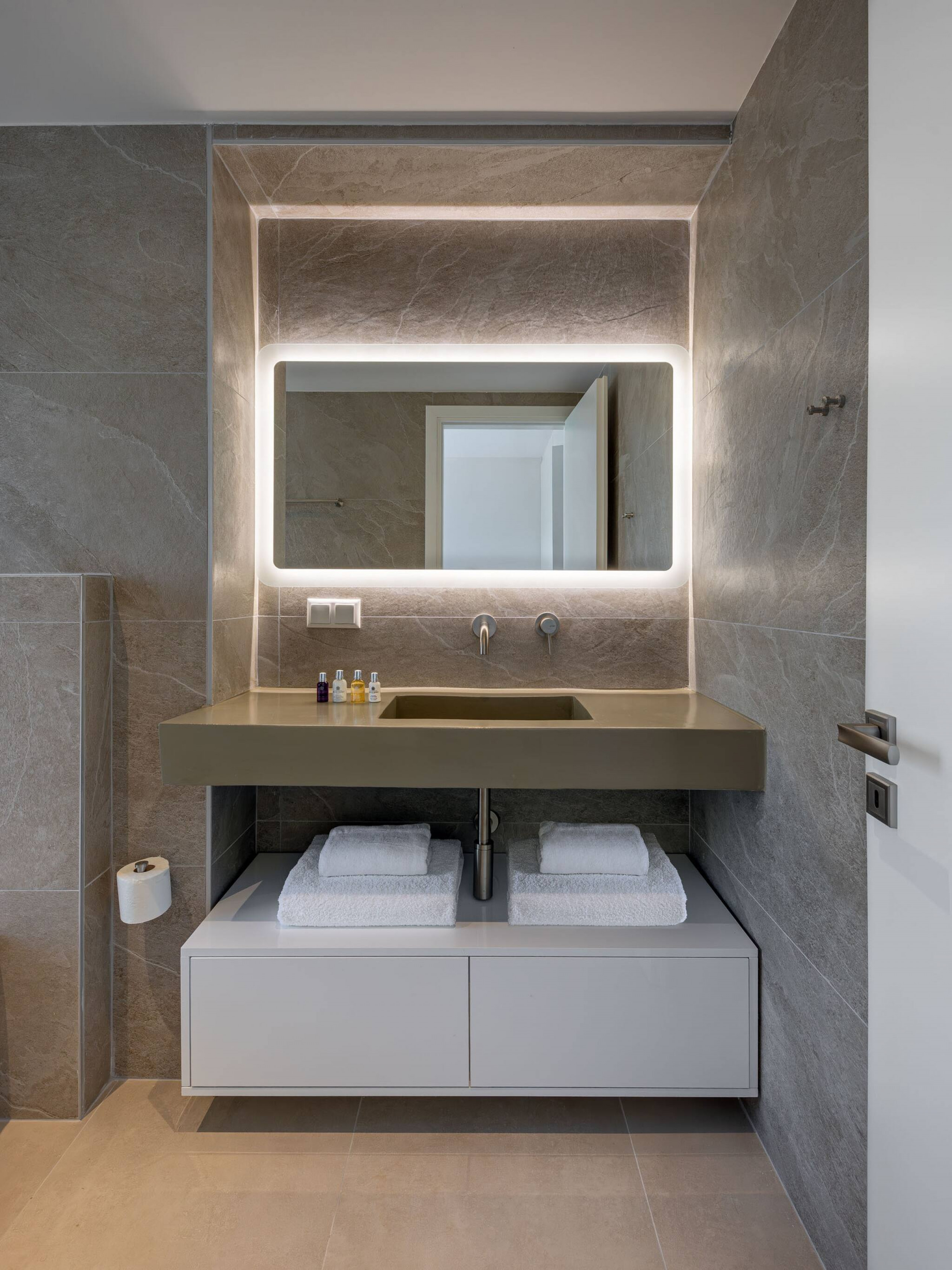 Via the internal staircase, you come to the lower ground level where the three bedrooms with ensuite bathrooms are located. Starting from the left of the hallway are two bedrooms, with the first furnished with a queen-sized bed and the second bedroom acting as the twin bedroom, preferably for children. The last of the three bedrooms to the right of the hallway acts as the master bedroom.