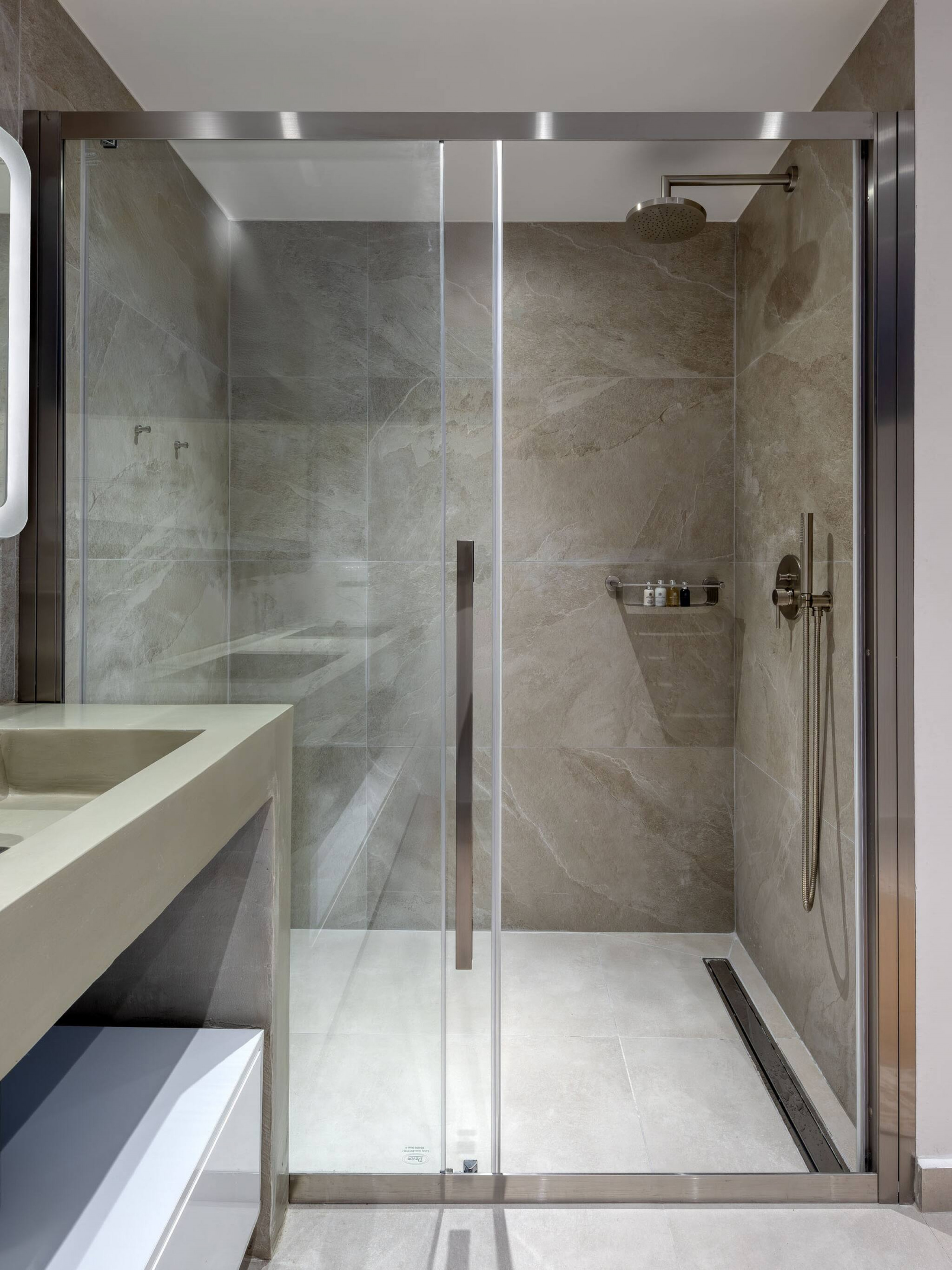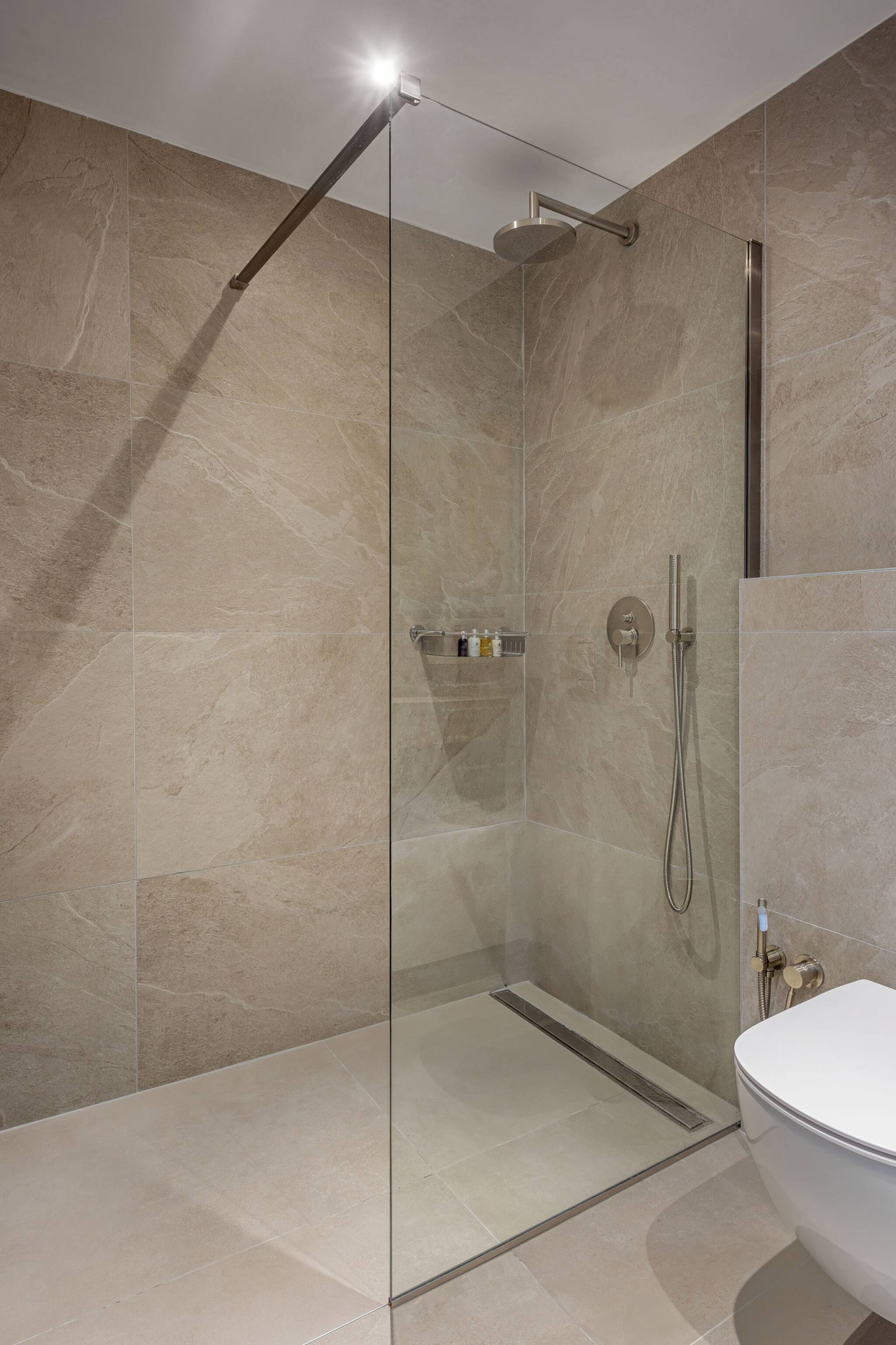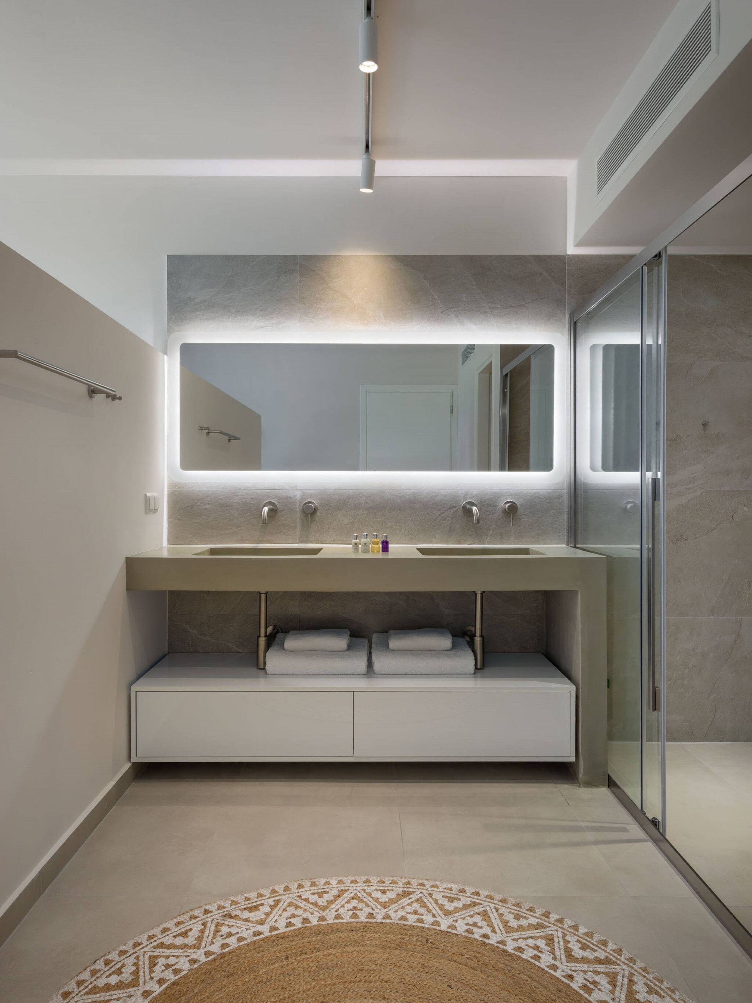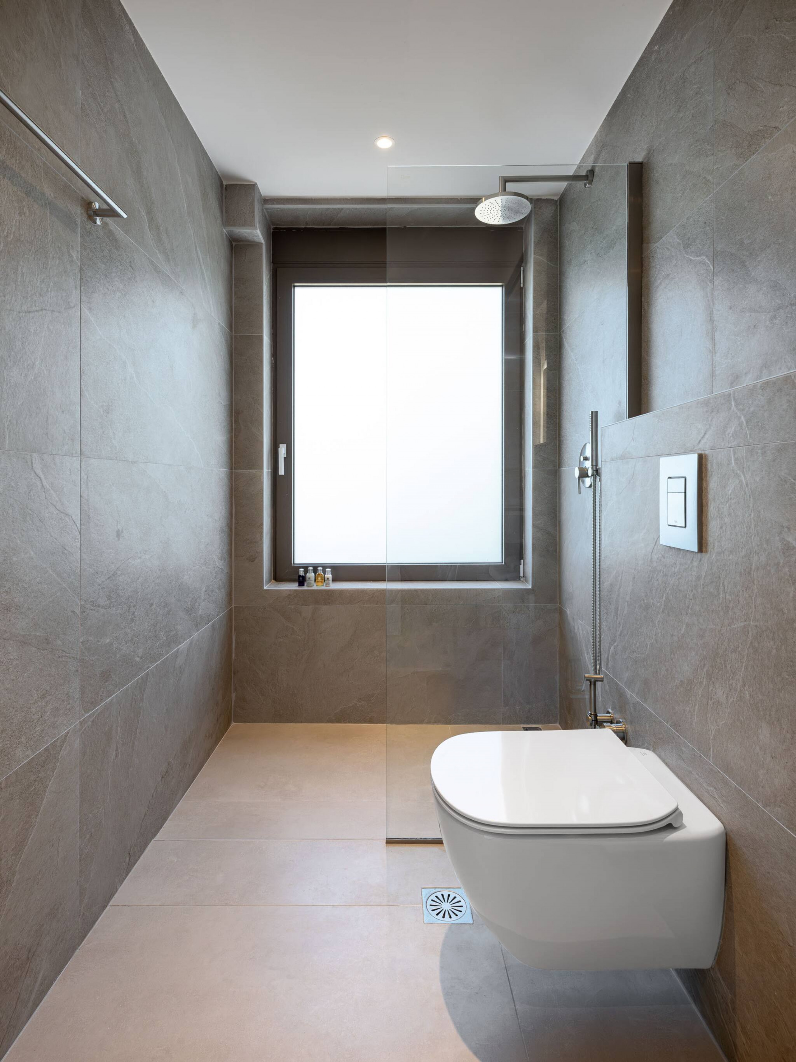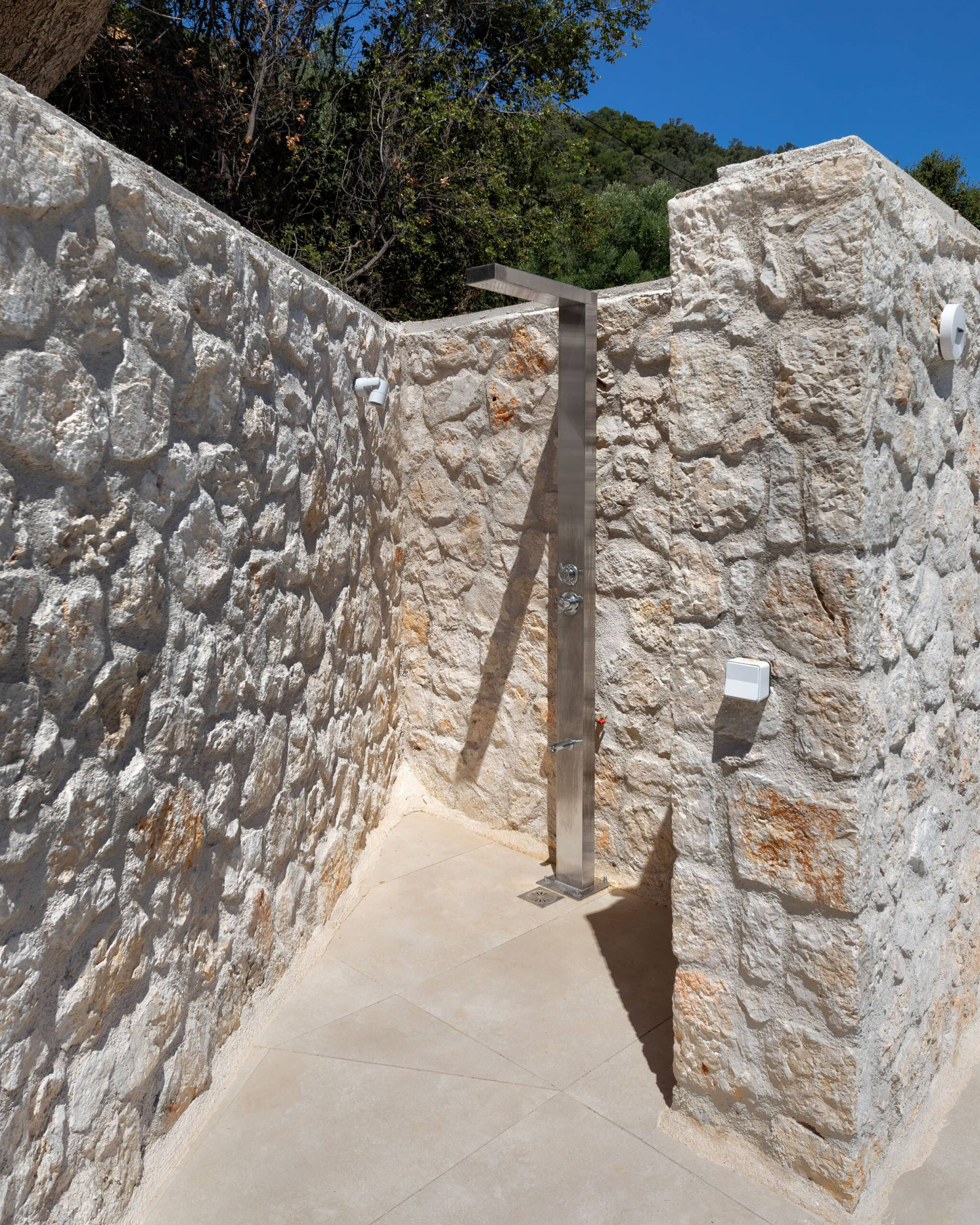 The master bedroom with its spacious space breathes comfort with its walk-in and open bathroom basin and shower. Every morning all three bedrooms are filled with the beauty of the Greek sunrise coming through the window sliding doors across the crystal blue waters of the Ionian Archipelagos.