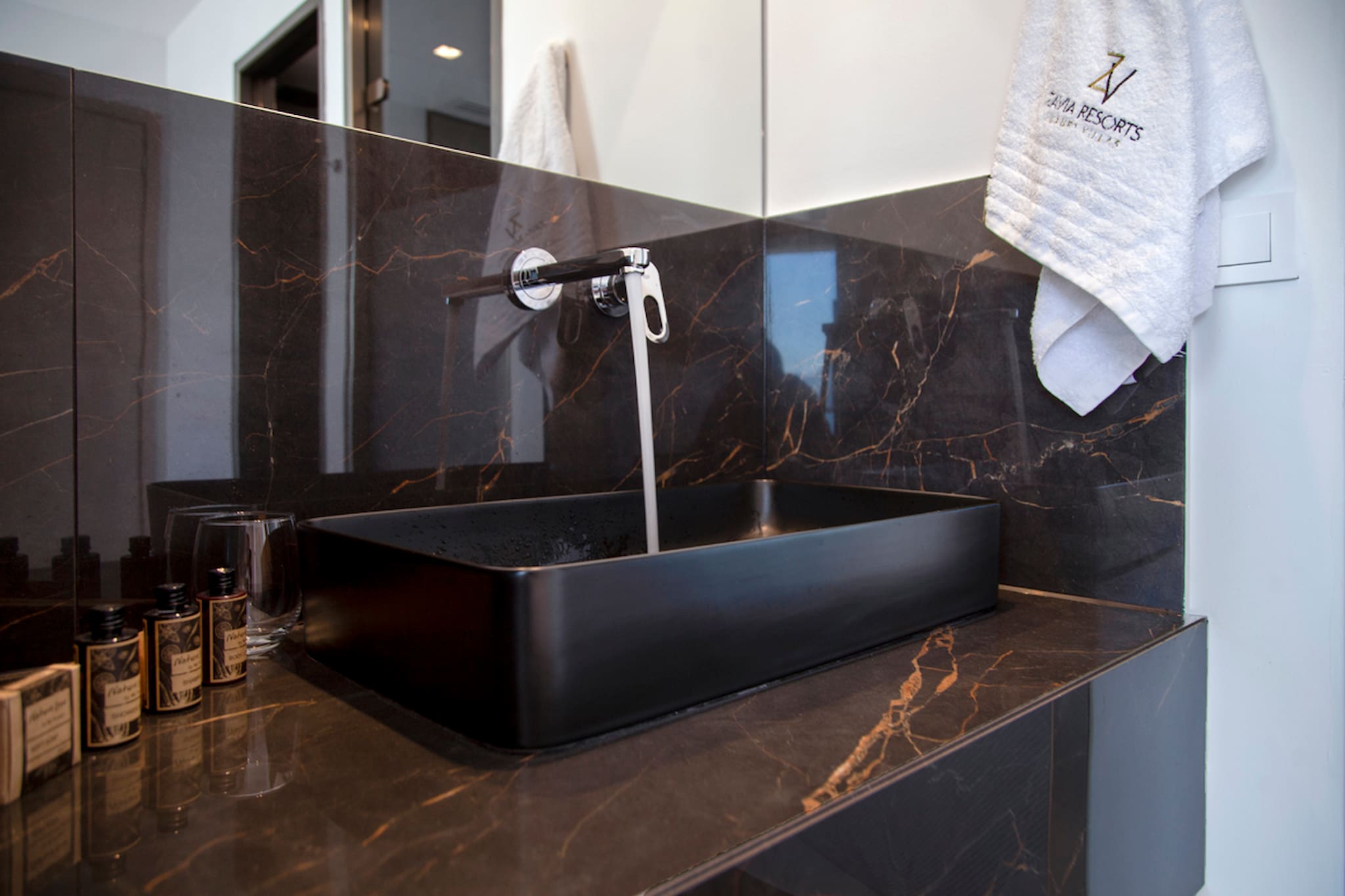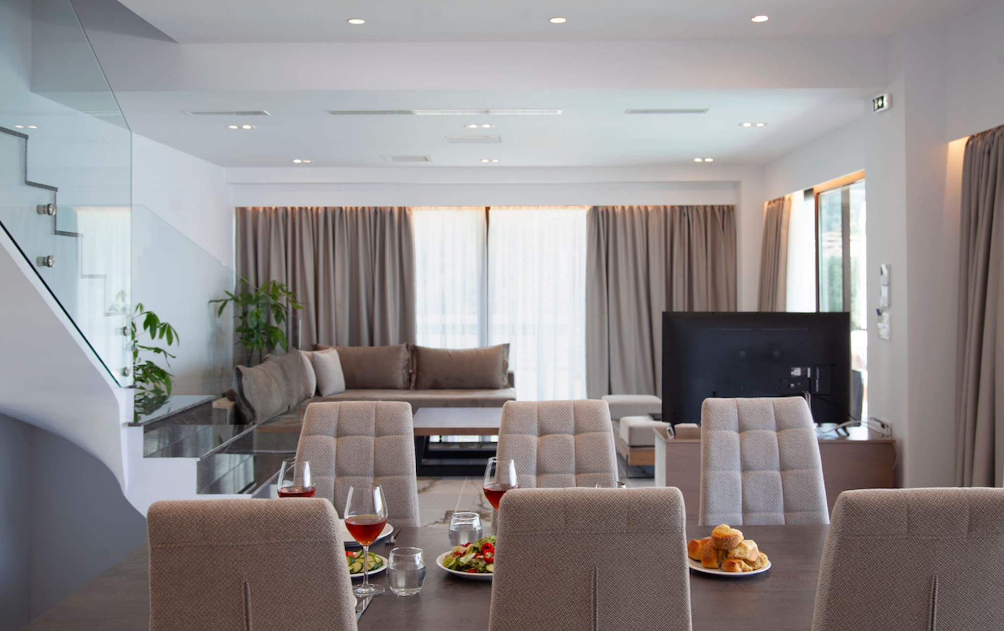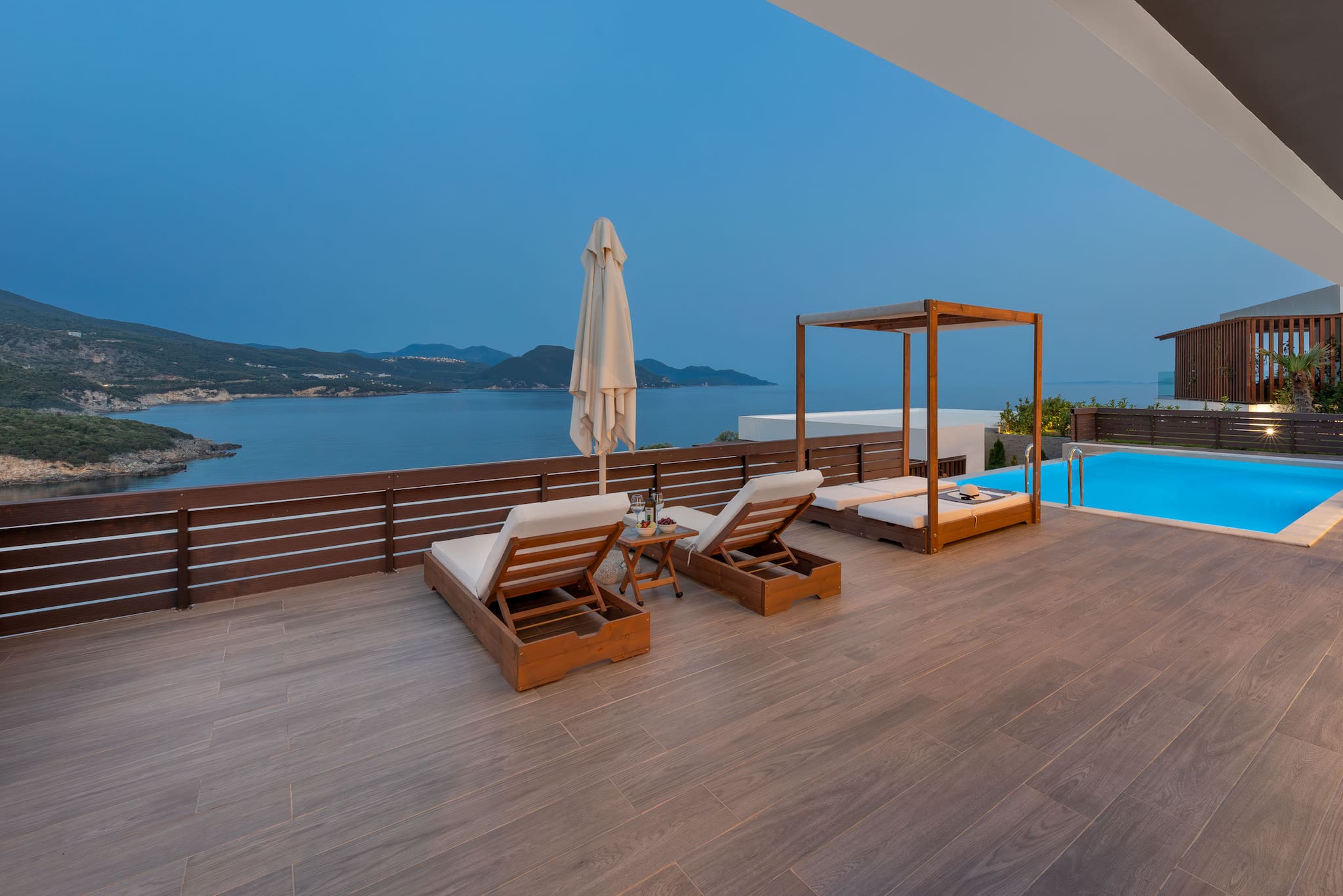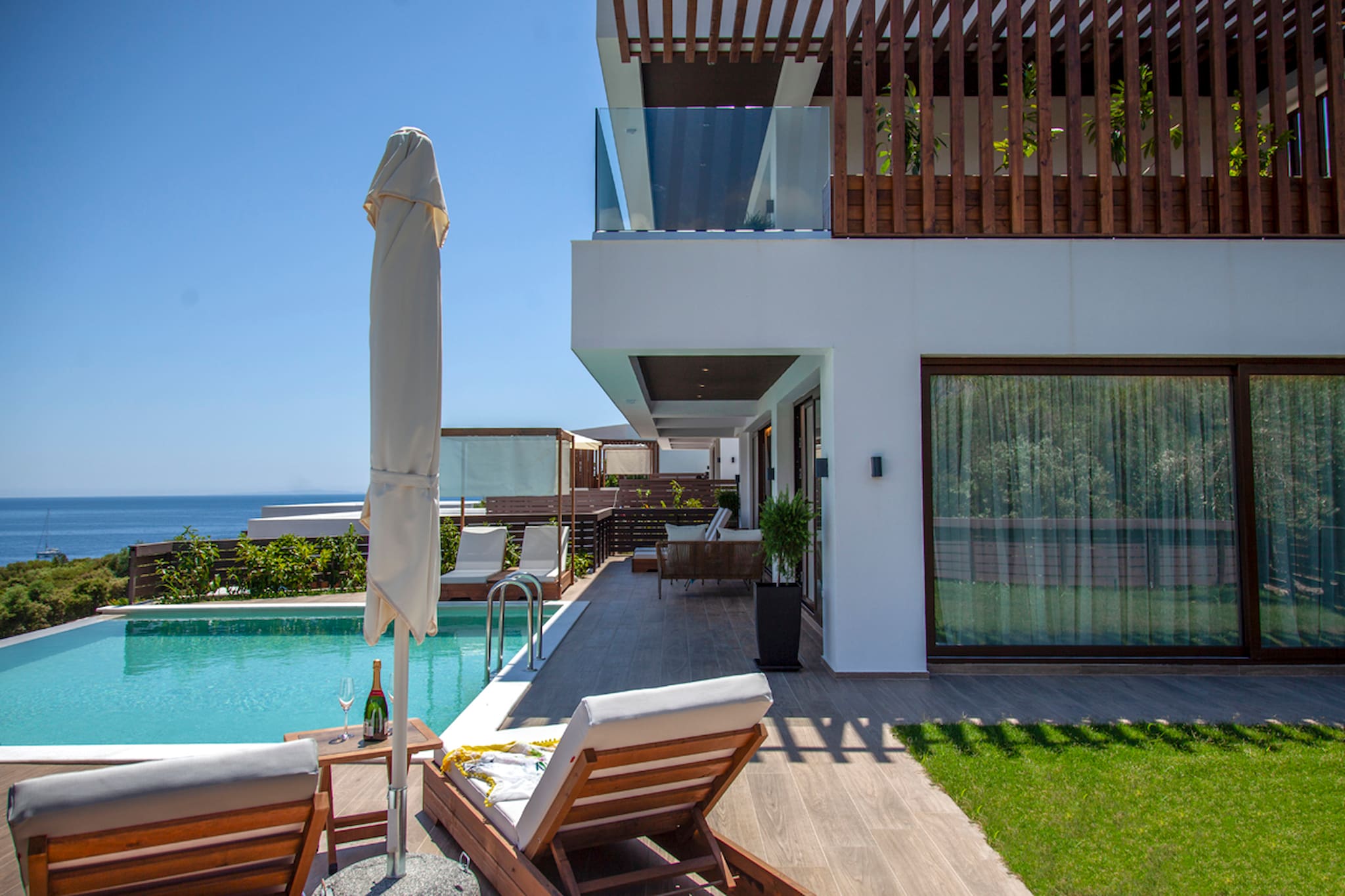 Alfresco living at Villa Dyo is all about the private pool area but the standout being the private access to the sea anytime of the day you desire. The highest in comfort and quality has been chosen for every moment during the day with sun cushions to soak up the Greek sun and an outdoor lounge setting covered by a pergola to open a bottle of wine and watch the yachts sailing by Zavia Resort.