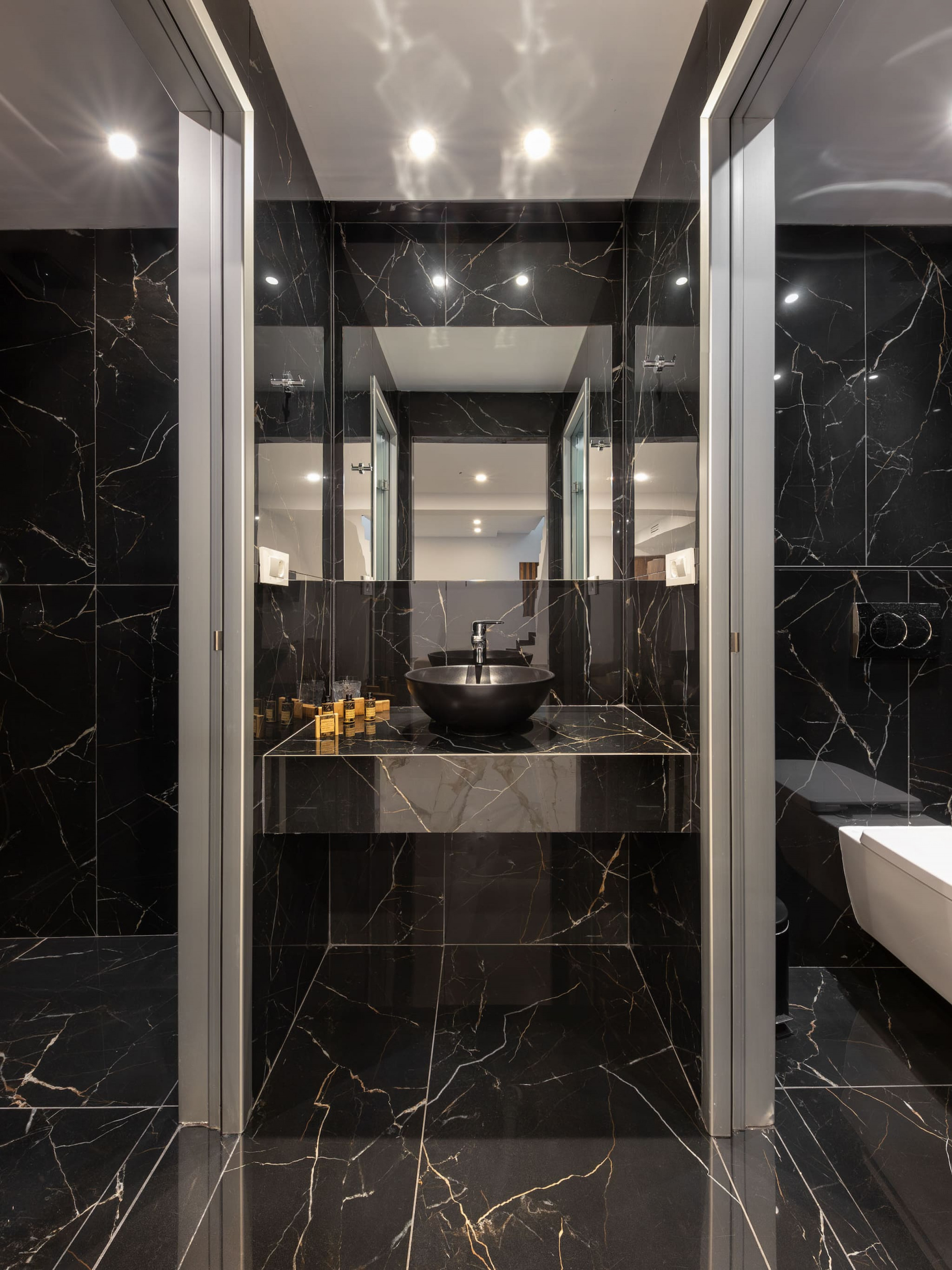 The third bedroom of Villa Dyo is on the lower level accessed via internal staircase through the lounge area. The lower level is ideal for children to give them the luxury of their bathroom and independent lounge room adjoined to the bedroom.