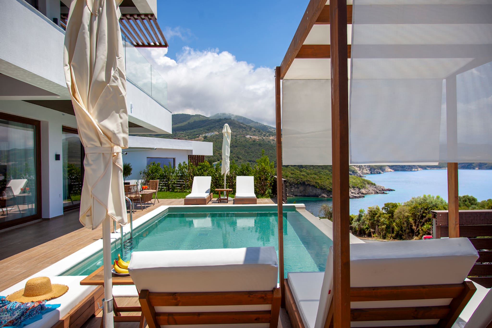 Villa Bita is perched up on the mountain side of the picturesque fishing village of Sivota in the region of mainland Epirus. It is part of our Exclusive Zavia Seafront Resort giving our guests the extra service of Daily in-House Breakfast and Cocktails throughout the day. Every detail has been designed for the comfort of guests and every piece of furniture breathes luxury. The perfect seafront villa for your next holiday to the mainland Epirus coast of Greece.