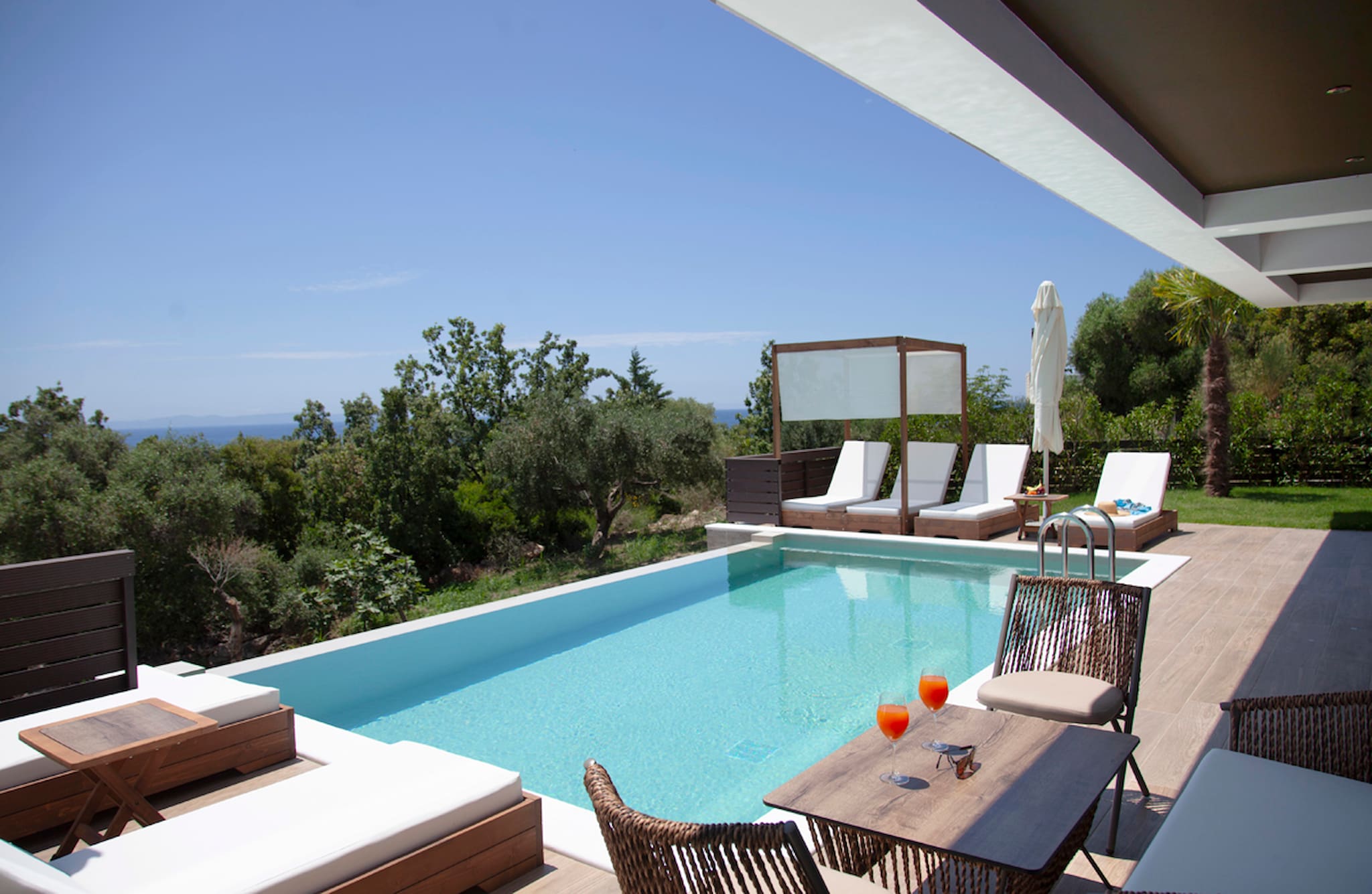 Alfresco living at Villa Bita is all about the private pool area but the standout being the private access to the sea anytime of the day you desire. The highest in comfort and quality has been chosen for every moment during the day with sun cushions to soak up the Greek sun and an outdoor lounge setting covered by a pergola to open a bottle of wine and watch the yachts sailing by Zavia Resort.
