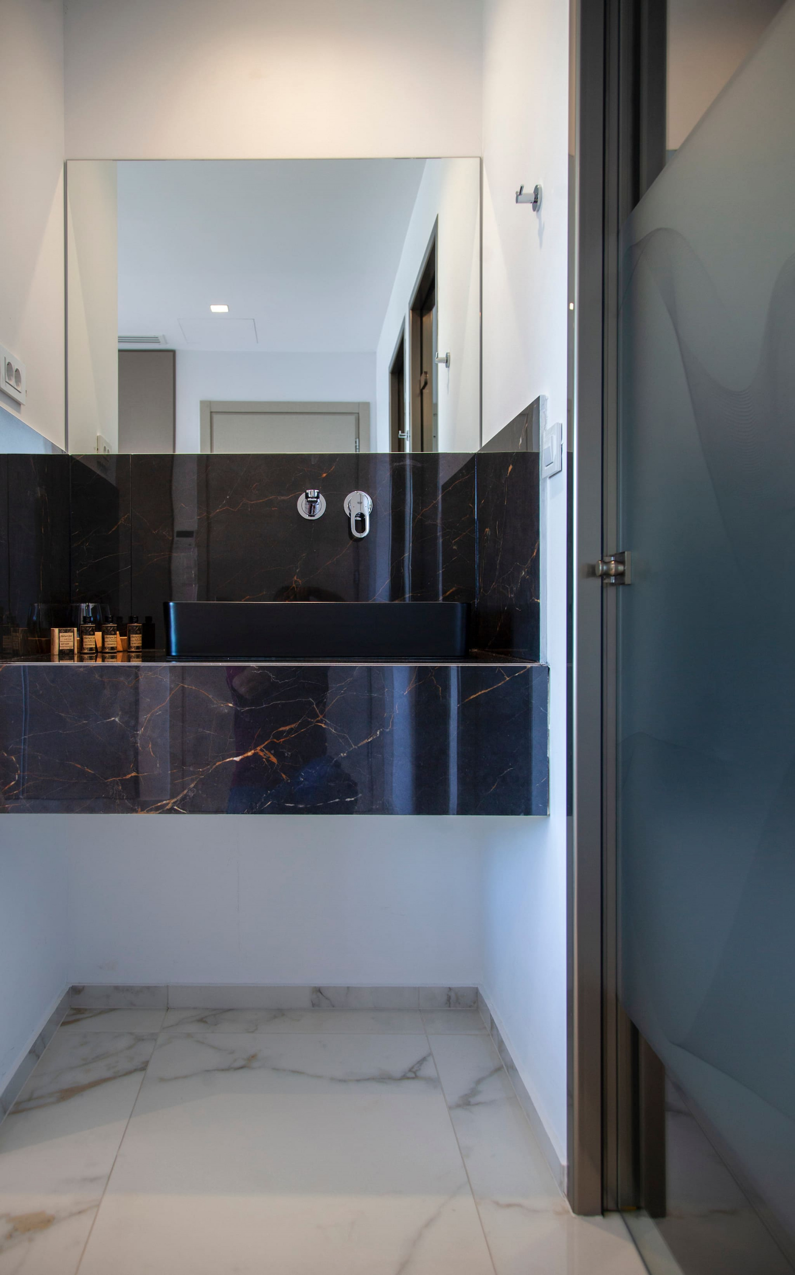 Upon entering Villa Bita, you come into a large living space that is filled with natural sunlight with its window panel doors that give you direct access to the outdoor private pool area. The ground level consists of a kitchen, dining space and large lounge setting with a sleek contemporary design. The lounge also coverts into a large comfortable double sofa bed. The first of the two bedrooms is also located on the ground level giving direct access to the outdoor area of Villa Bita. Additionally, there is a bathroom on this level.