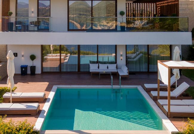 Villa Alpha in Sivota Epirus on west coast mainland of Greece is perched on the mountain side overlooking the Ionian Sea.