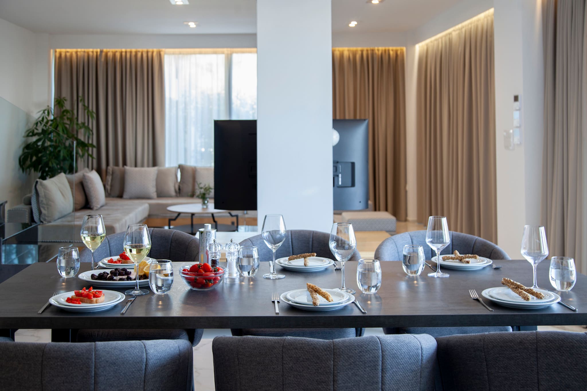 Alfresco living at Villa Tessera is all about the private pool area but the standout being the private access to the sea anytime of the day you desire. The highest in comfort and quality has been chosen for every moment during the day with sun cushions to soak up the Greek sun and an outdoor lounge setting covered by a pergola to open a bottle of wine and watch the yachts sailing by Zavia Resort.