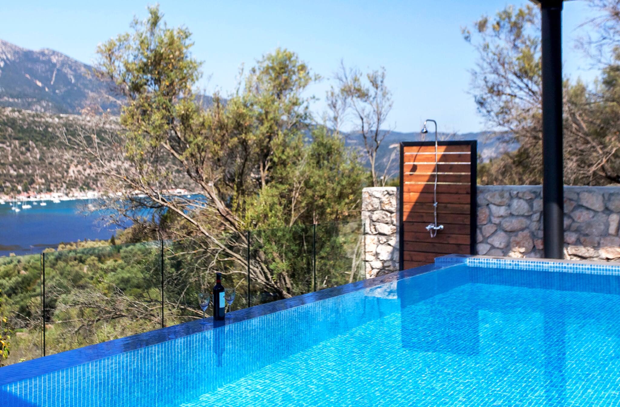 Our brand new Villa Luca in Dessimi Lefkada is the perfect base for a family looking for a Lefkada Villa Holiday! Its position could not be any more perfect. Perched on an olive grove hillside above Vlicho Bay, Villa Loulou is only a short walk to the beach of Dessimi and short drive into the town of Nidri.