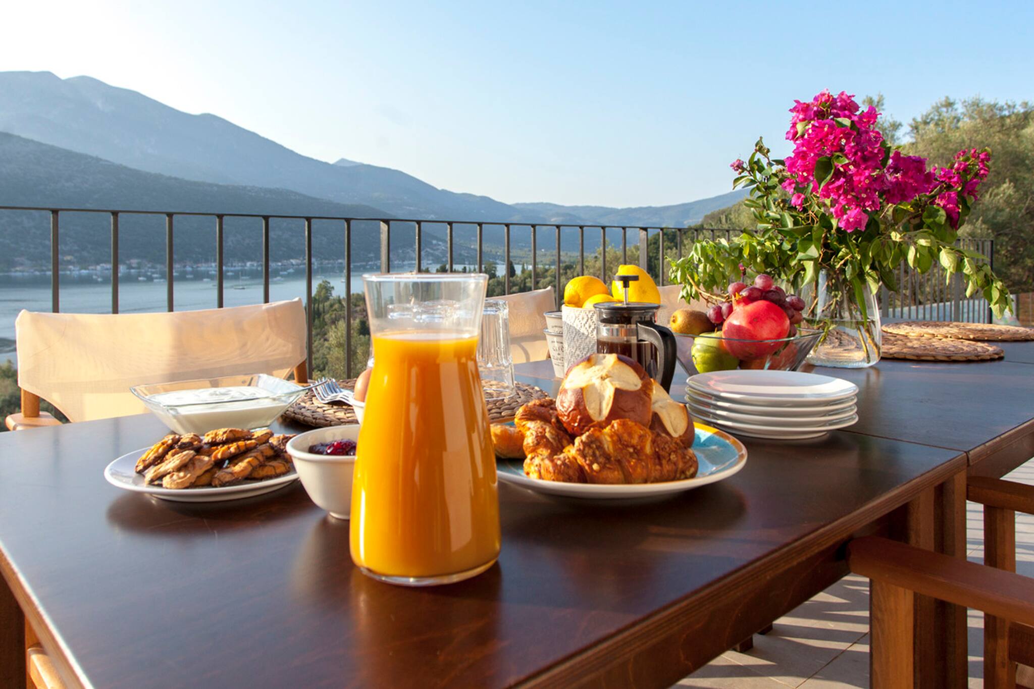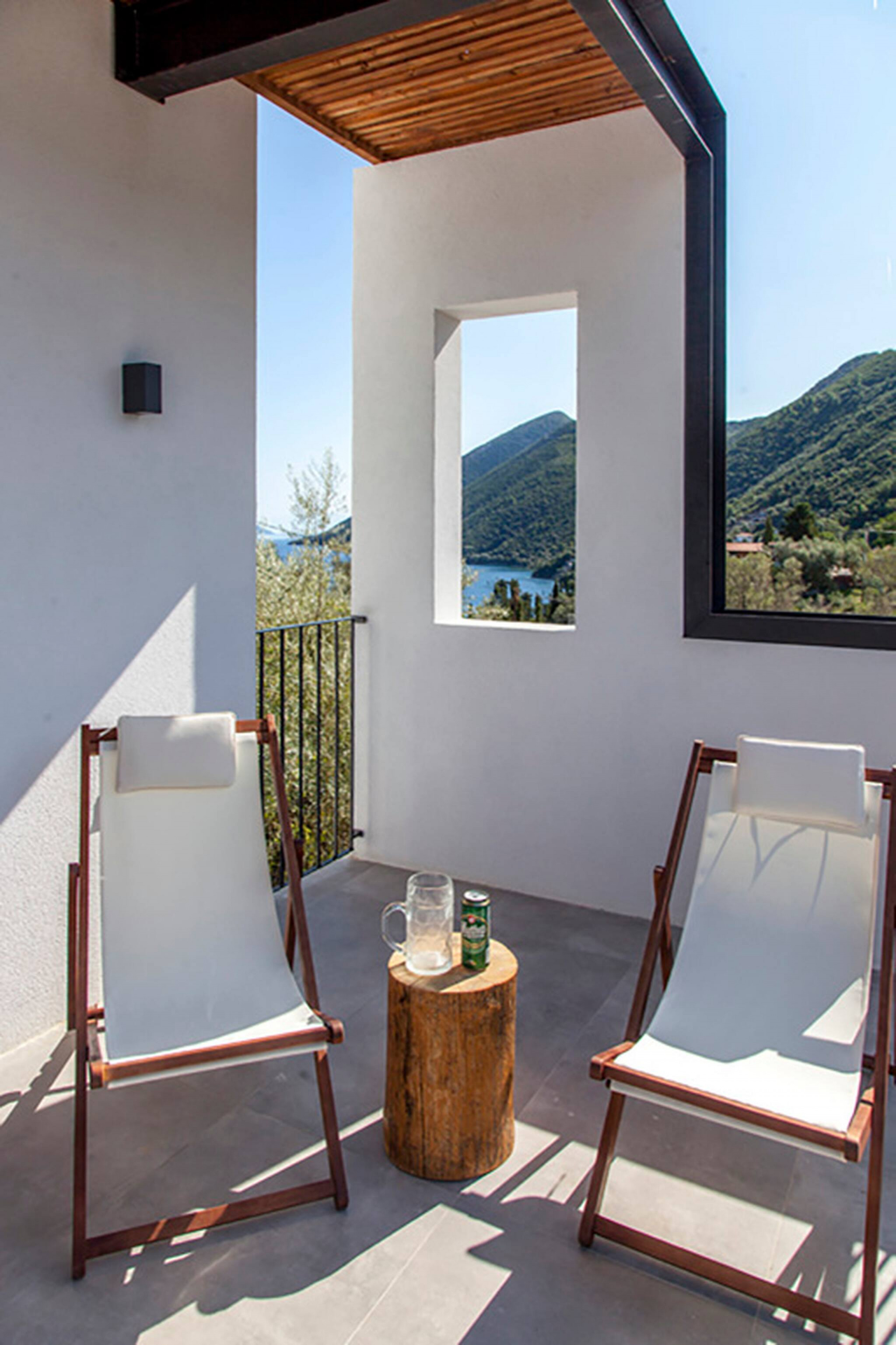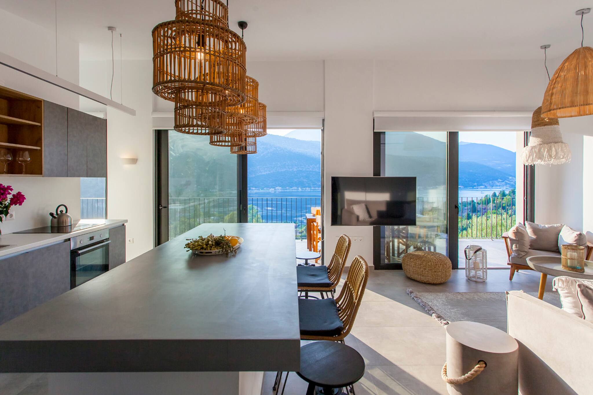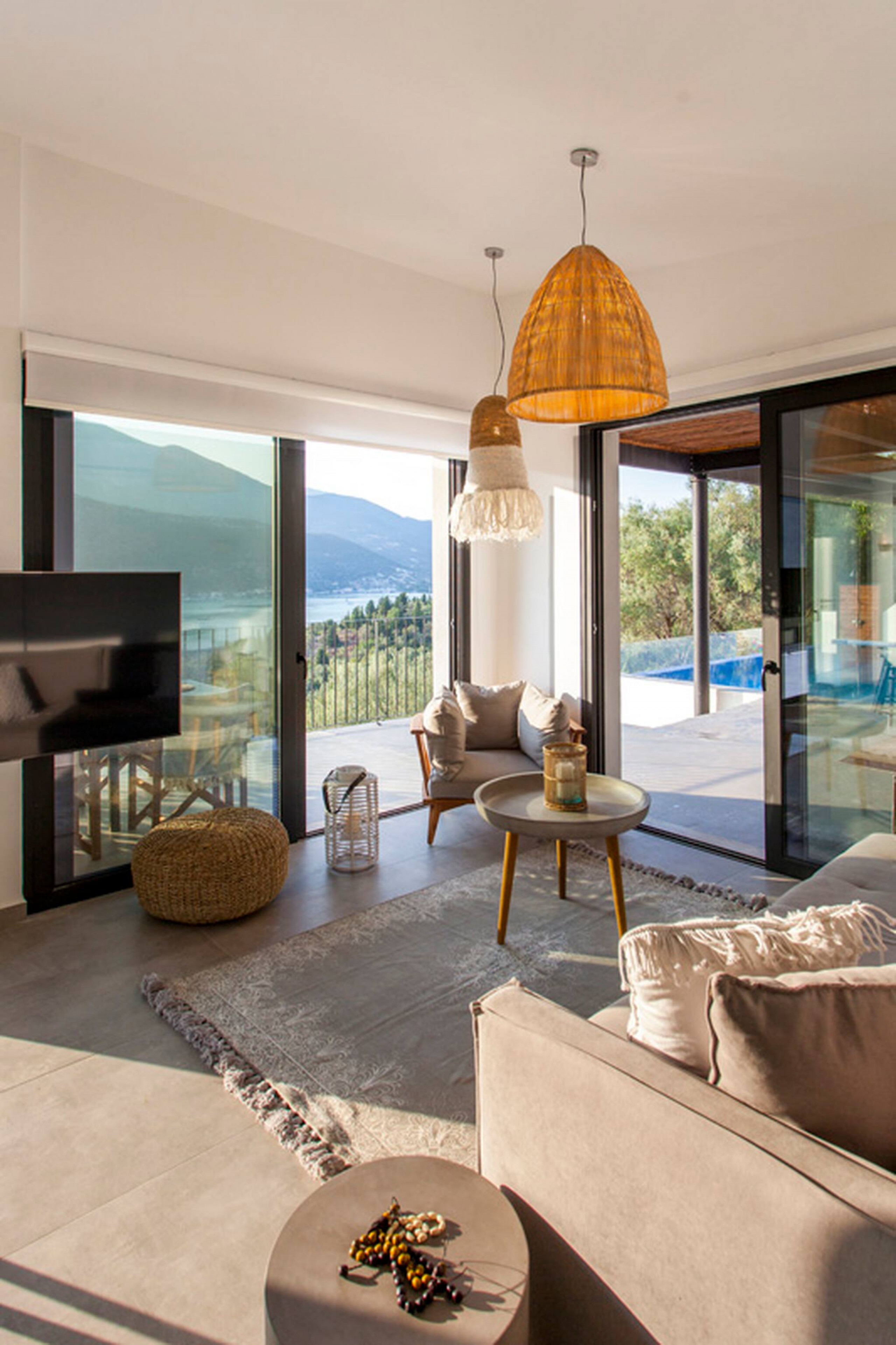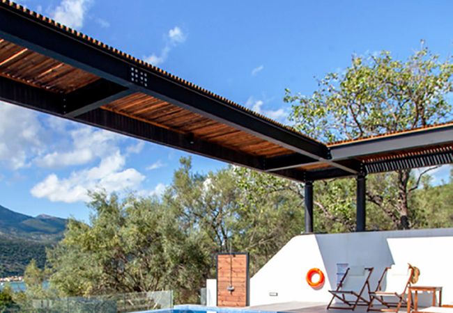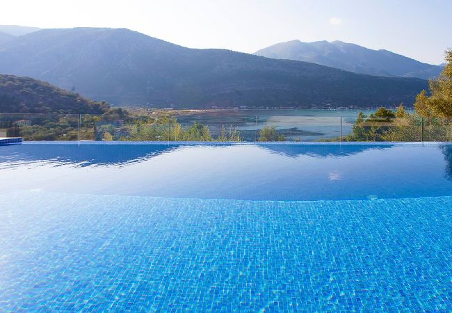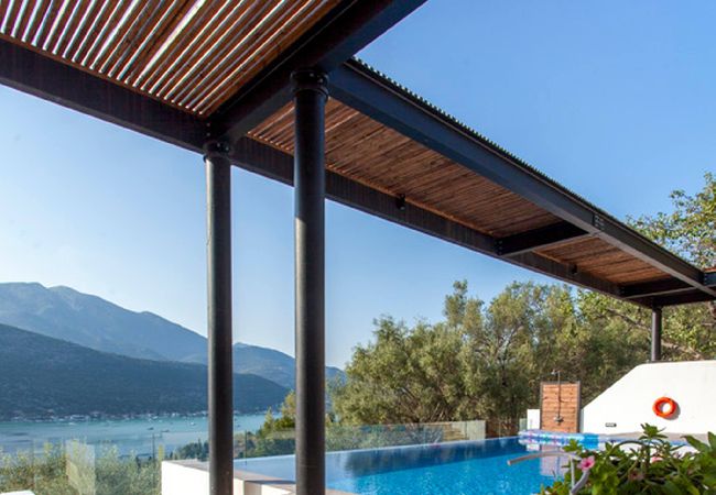 Villa Theia in Lefkada, is perched on the mountain side overlooking the bay of Vlicho and walking distance to the beach of Desimi.