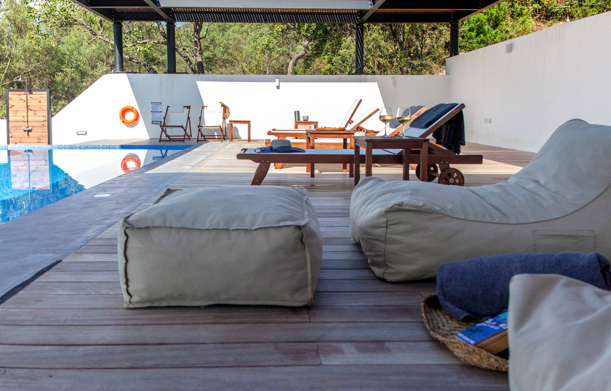 The standout feature of the outdoor area are the large metal columns and wooden beams of the pergola, creating a unique and stylish design which with the movement of the sun creates shade to give you those little corners to lay back and read your latest novel. You will enjoy many evening meals next to the pool area with your family and loved ones.