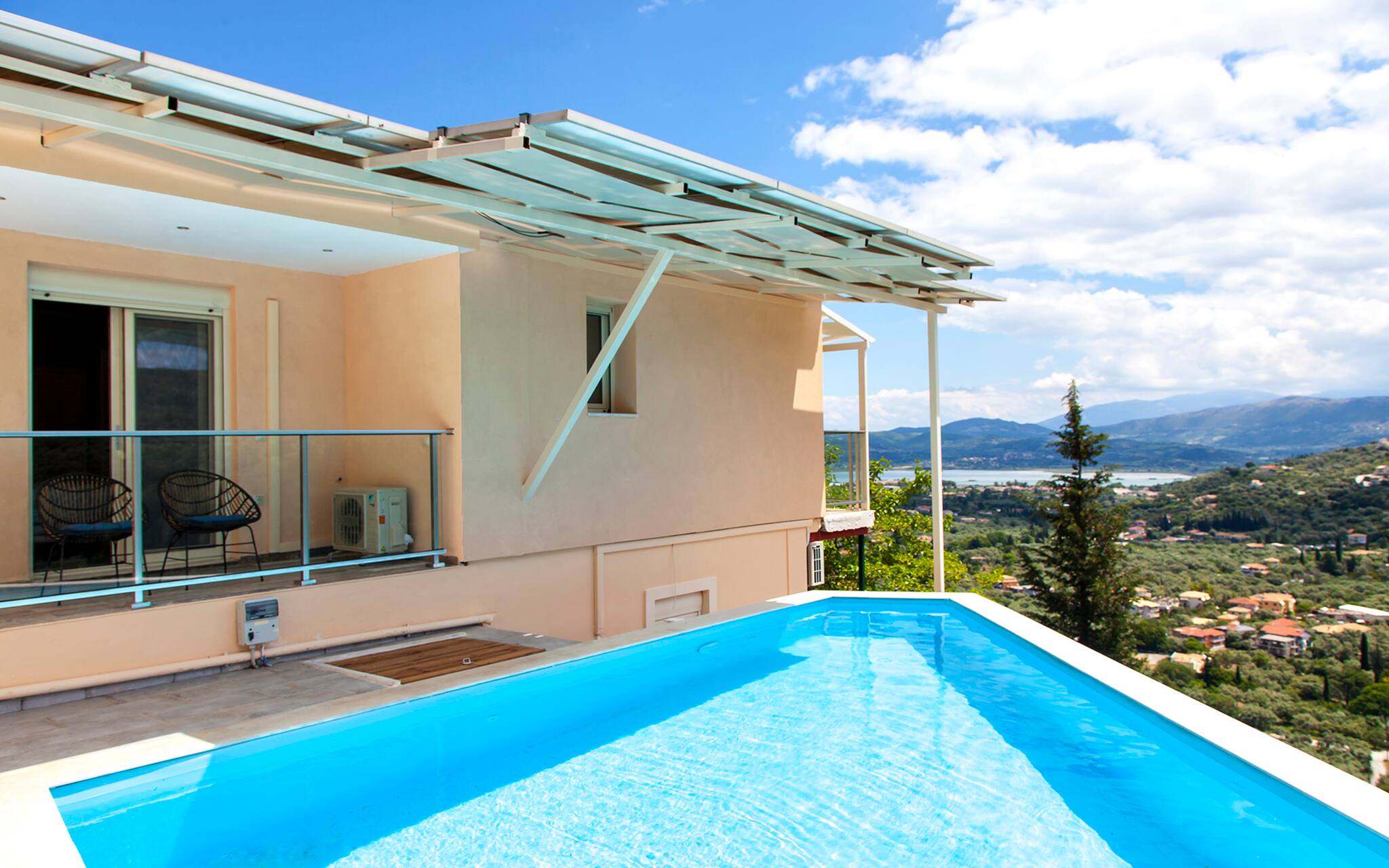 Alba Luxury Home. For an unforgettable holiday experience in Lefkada, for you and your family, look no further than Alba Luxury Home; it is the ideal destination. Located 5 minutes from the heart of Lefkada central with spectacular views. Completely private and surrounded by a lush landscape that will amaze.Alba Luxury Home is a brand new villa with a modern design. You will be amazed by the outdoor space. Whilst sitting in your private pool, you can admire the endless view during the day. It is the perfect destination for your dream holidays.