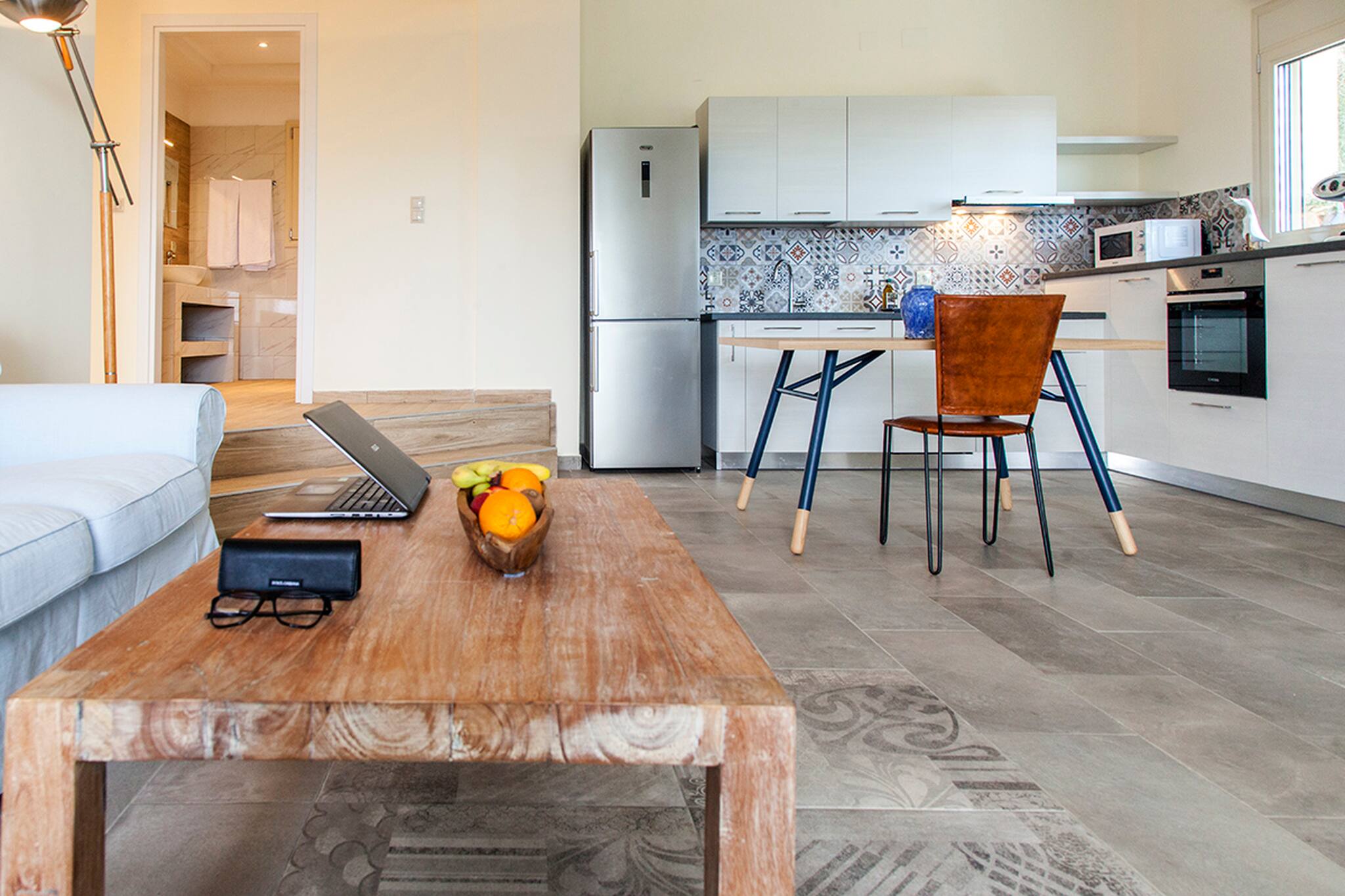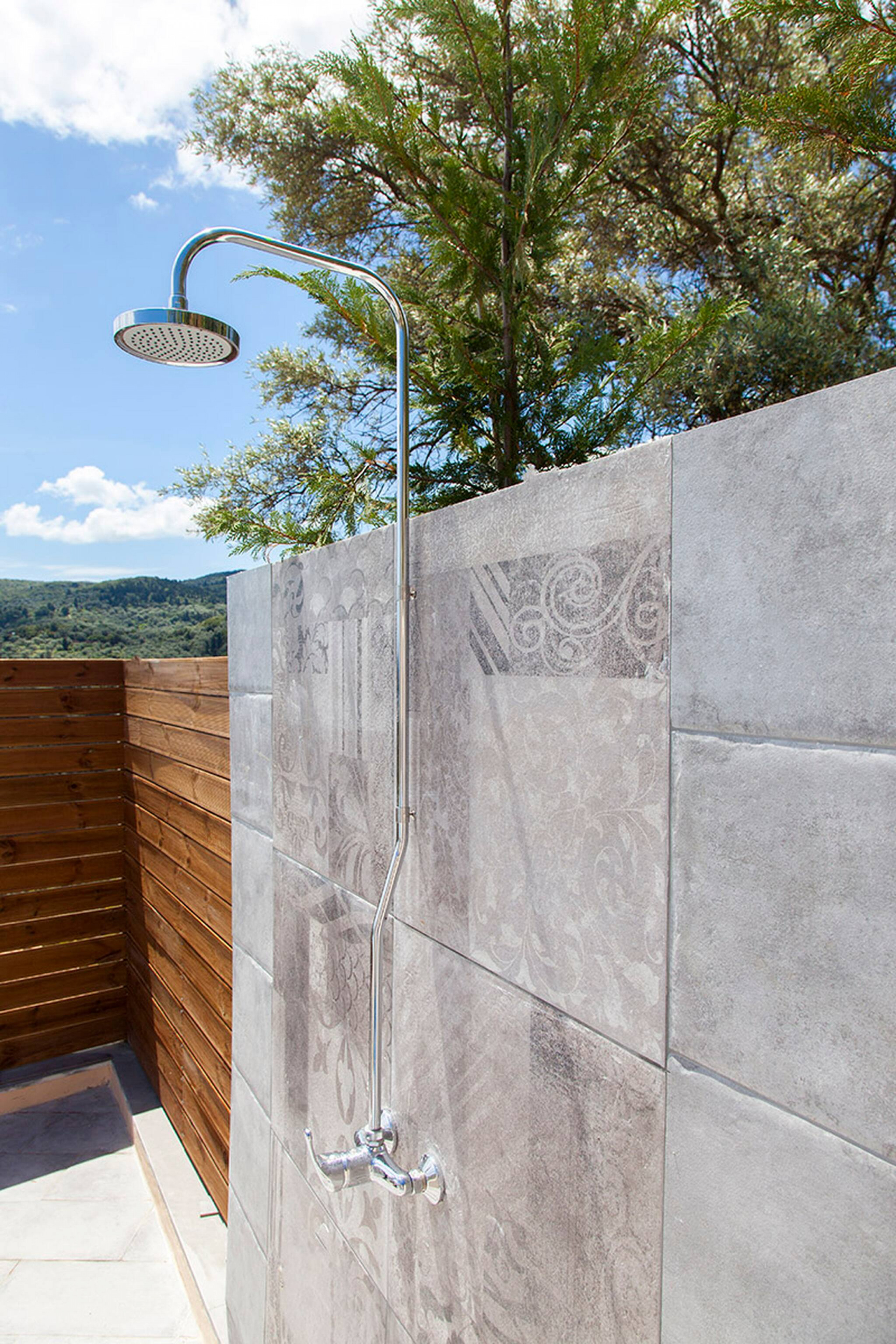 Upon entering Alba Luxury Home you will find yourself in its spacious living room which is accompanied by a fully equipped kitchen. As you continue you will discover the 3 double bedrooms each with its own bathroom. From the last bedroom, you have direct access to Alba Luxury Home’s outdoor area located directly in front of the pool.