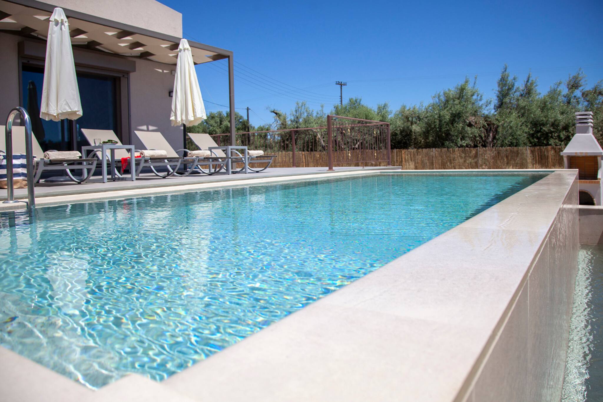 Private pool, sun loungers, sun cushions, outdoor dining area, fully equipped BBQ, children’s playground, private parking