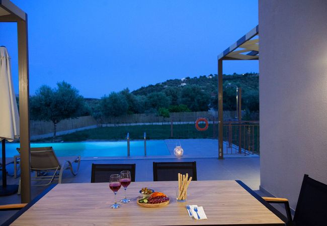 Alba Luxury Home. For an unforgettable holiday experience in Lefkada, for you and your family, look no further than Alba Luxury Home; it is the ideal destination. Located 5 minutes from the heart of Lefkada central with spectacular views. Completely private and surrounded by a lush landscape that will amaze.Alba Luxury Home is a brand new villa with a modern design. You will be amazed by the outdoor space. Whilst sitting in your private pool, you can admire the endless view during the day. It is the perfect destination for your dream holidays.