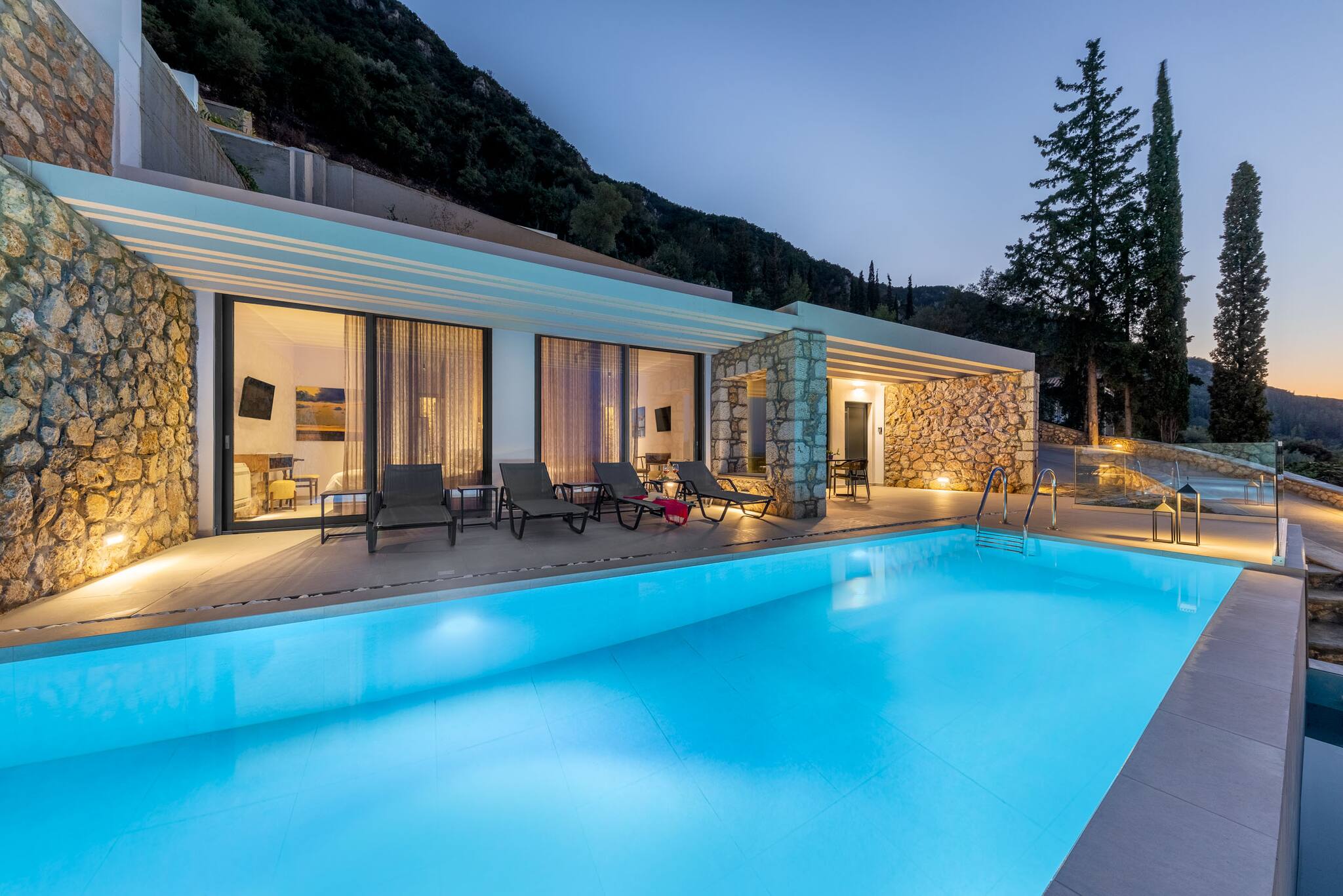 Whether you are out by the private pool, sitting in the shady gazebo sipping an iced beverage, or dining alfresco with the Ionian Sunset, you will find yourself mesmerized by the chromatic depth of colour, from the deep azure Ionian Sea and the intense green of Lekfada’s flourishing flora.