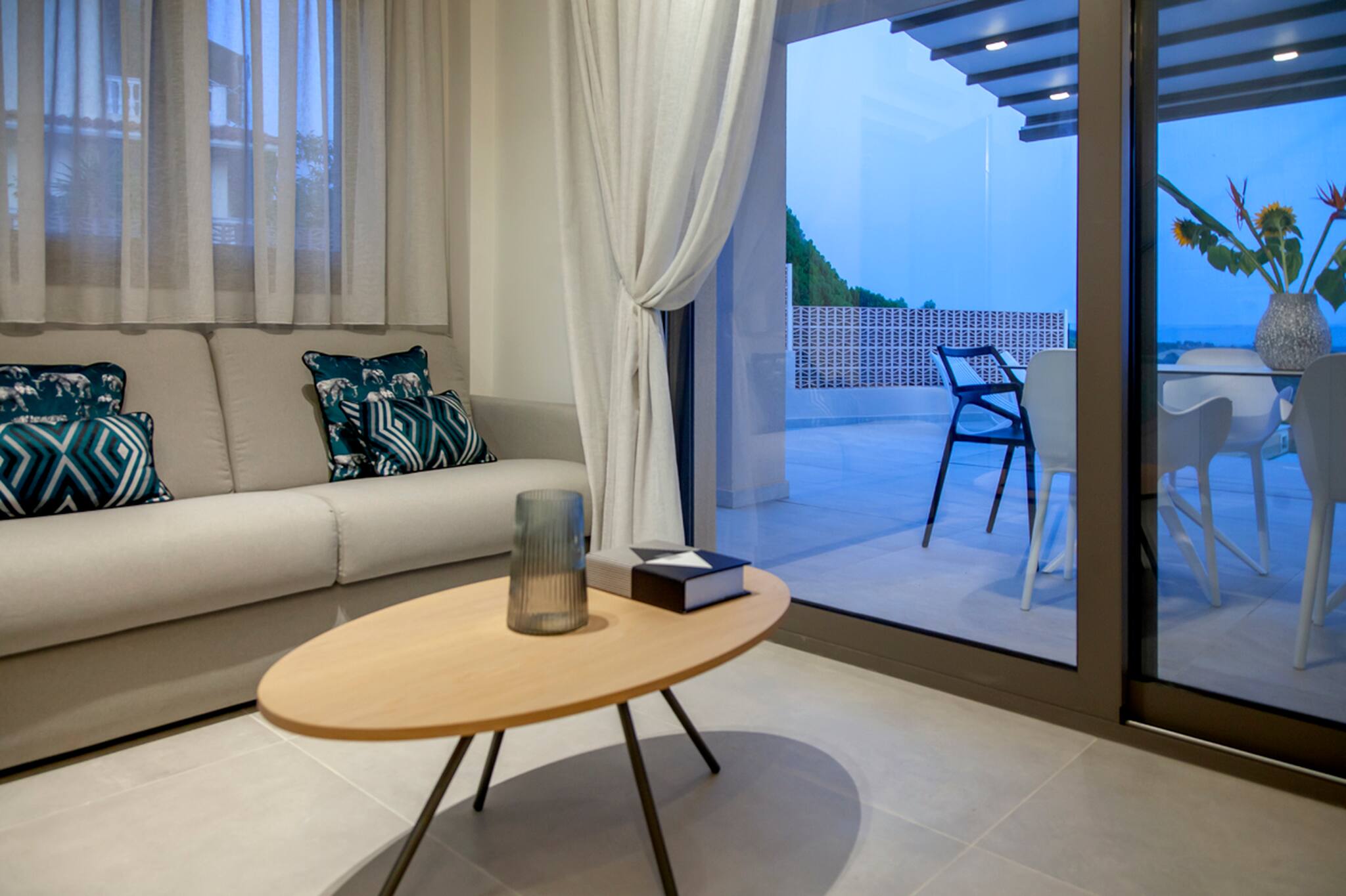 Villa Andromeda in Preveza boasts an outdoor area comprising of endless options for both adults and children. There are several seating options to soak up the Greek sun or have an afternoon siesta under the shade of a pergola covering the outdoor dining setting. The outdoor designer furniture received awards in the most prestigious design competitions in the world, besides being state-of-the-art, are also environmentally friendly and contributing to create a better world.