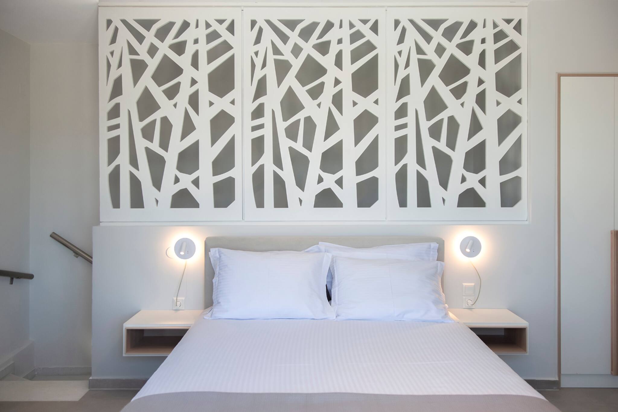 Sunbreaks as a traditional resource in Mediterranean architecture are used to create ventilated walls and shaded partitions in outdoor space, they separate environments and create a sense of intimacy.